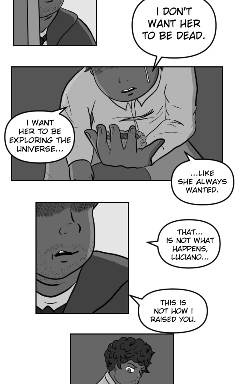 After the death of his friend, Luciano Ojaverde breaks her final gift to him in a grief-fueled rage. When Luciano then finds himself in outer space, he's met with the fact that it's filled with life.
