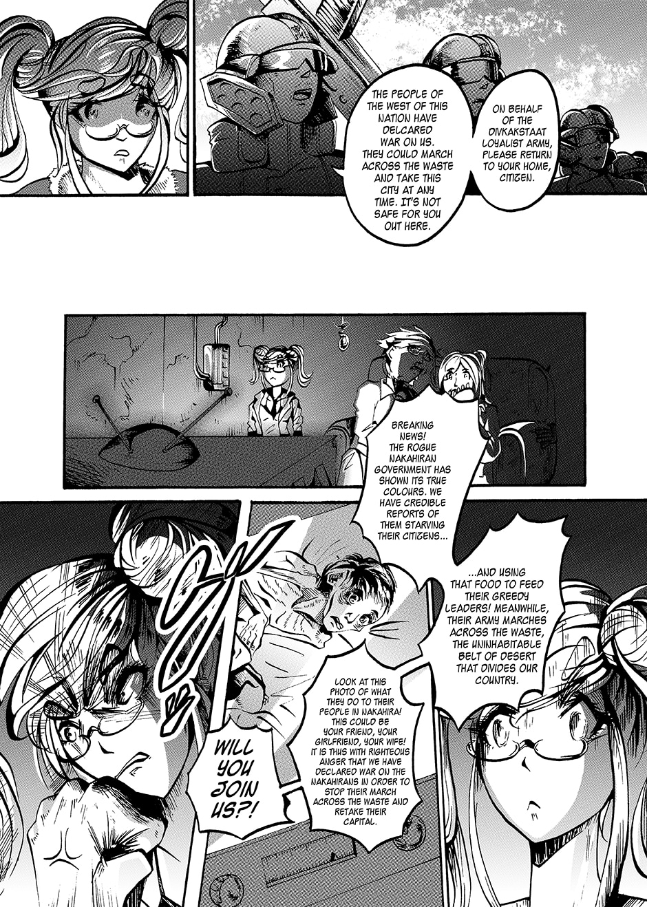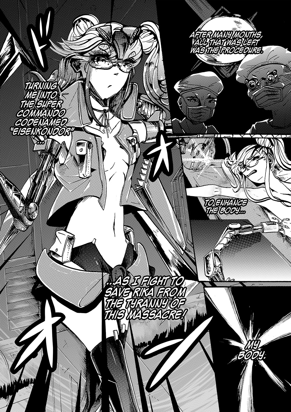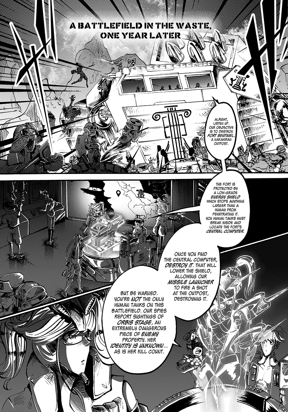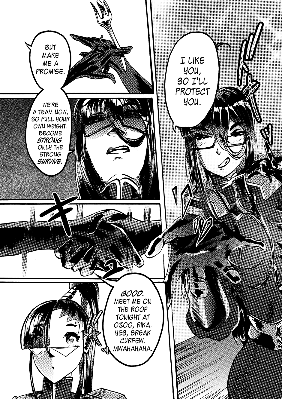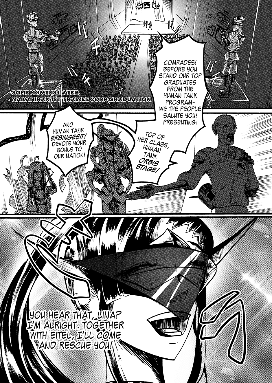 Lovers Lina Schneider and Rika Watanabe find themselves separated on opposite sides of the border as their country splits in two. Upon learning that Rika might be suffering from a tyrannical government on the other side of the country, Lina enlists in the military in a bid to free her. Rejecting her humanity to become a living weapon with enough firepower to level a city, she soon finds out she's not the only one of her kind... [Updates every other day]