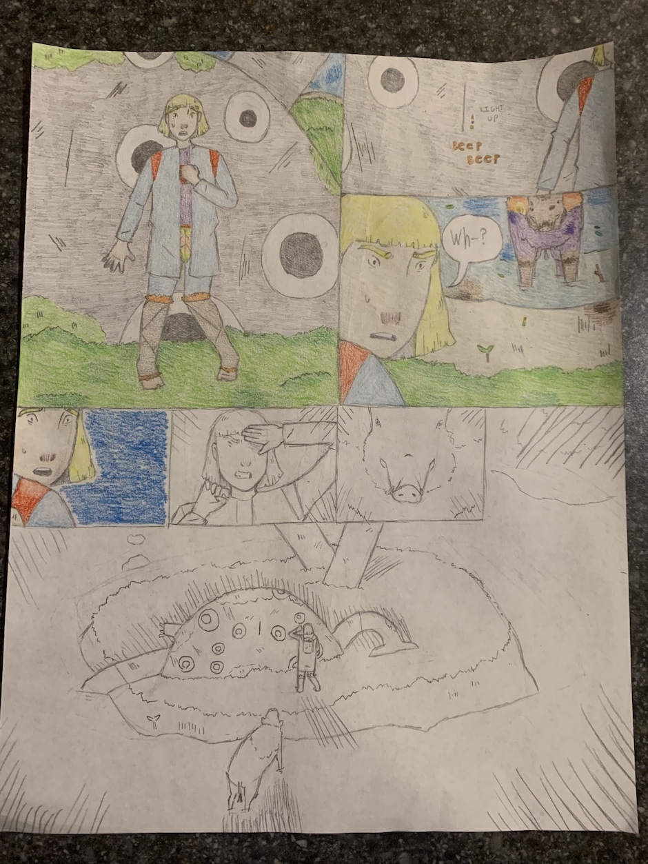 Ooga booga early update! Things are finally getting interesting! In panel four she looks like hank before he goes "bwahh!" Also, this is my last update before school starts back. things'll get slower from here probably. Also again, part of the page is uncolored because there's a white flash, but I don't know how obvious that is.