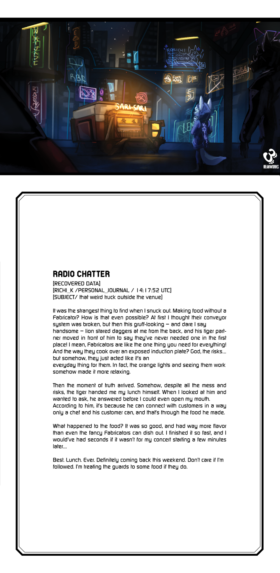 A lovely big cat couple recall stories and fond memories about customers and themselves while serving warm, welcoming meals to those fortunate enough to stumble upon their little food truck.