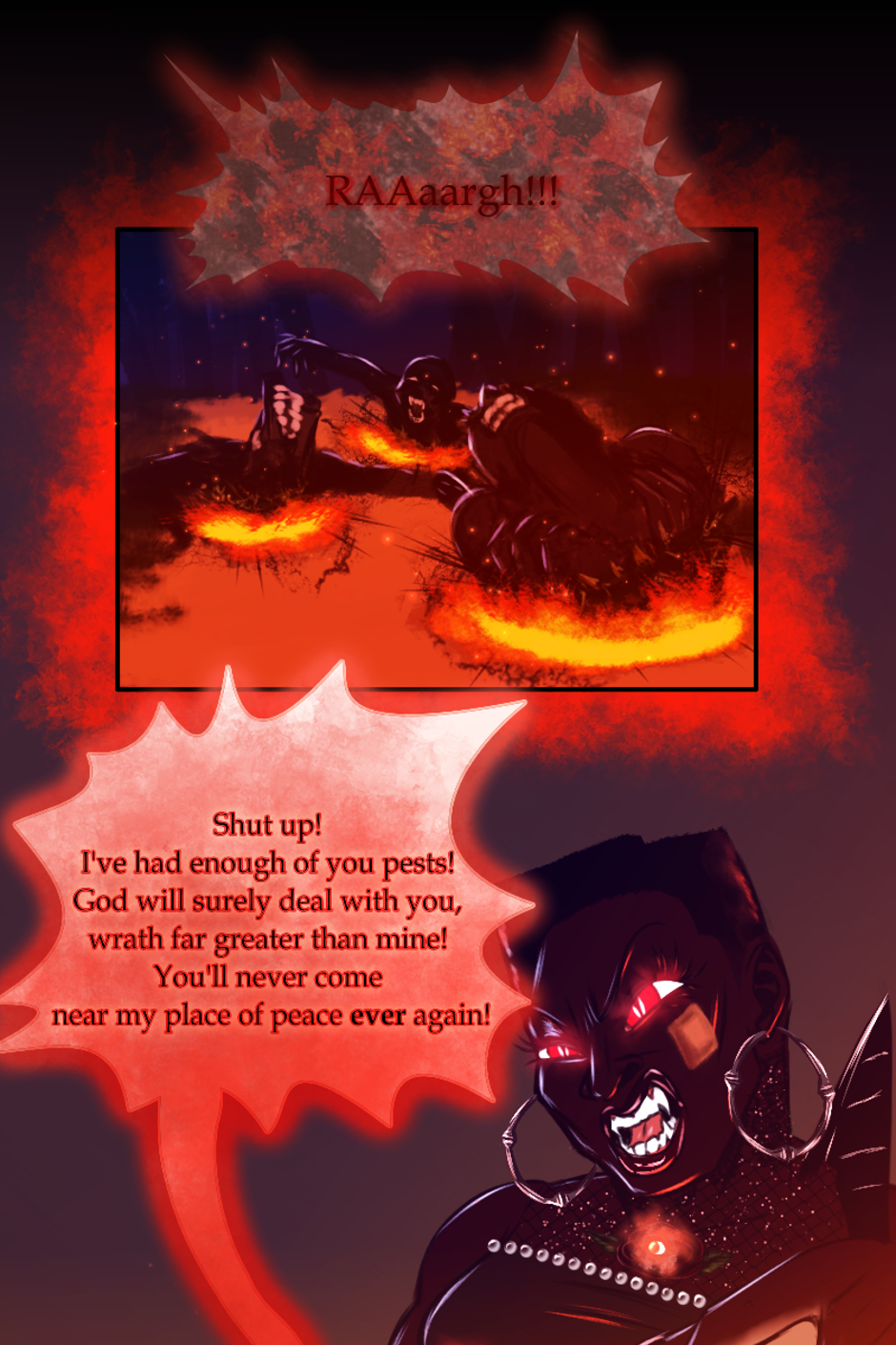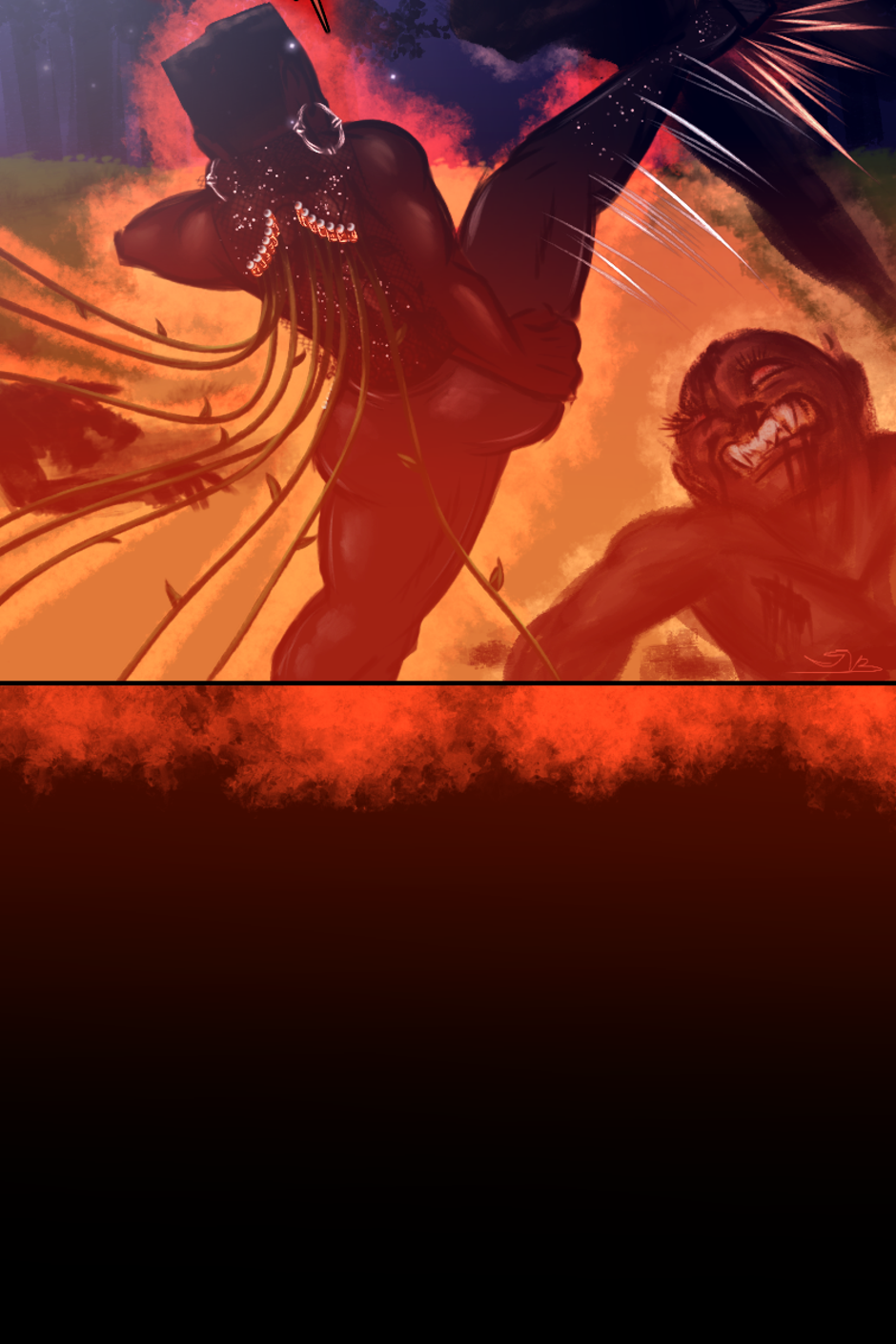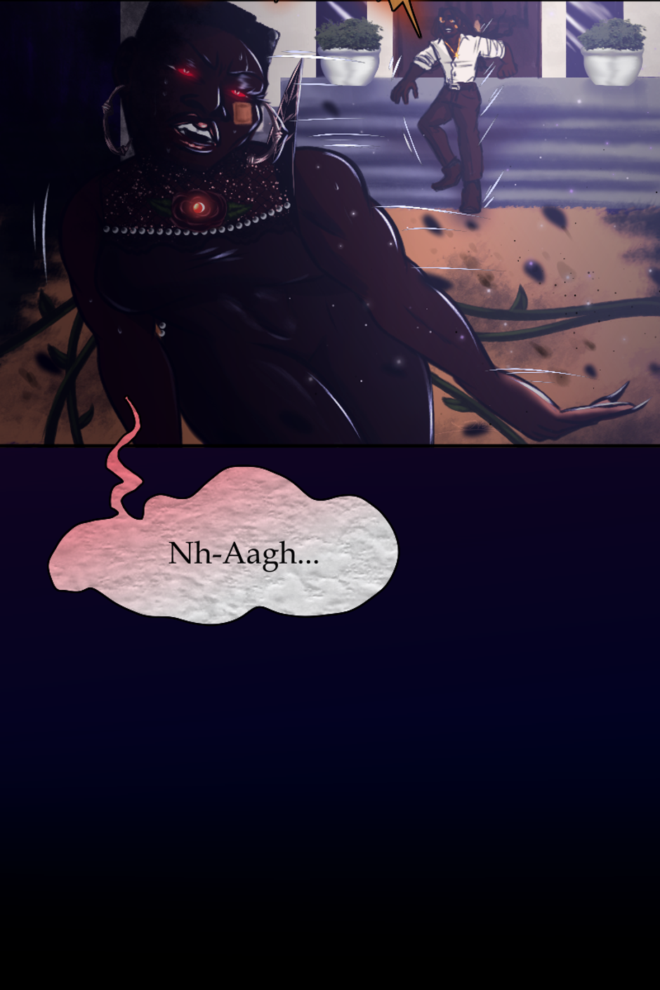 Battle ensues outside of Little Love Chapel. All Rev. Alexandre can do is watch and pray. He's never seen demons in the waking life right before his eyes like this. They were grotesque and disturbing. Rose tore them down one after another. Physically fighting them wasn't enough. She had to cast them out with the Holy Spirit. She felt Alexandre's prayers, and it gave her more strength to finish them. Her disdain and hatred for evil ignited the fire. They were burnt up in the Holy flames and sent back to hell. The last of Rose's energy was used up, as the ambers of the flames went with the wind, she collapsed in the Chapel's yard.