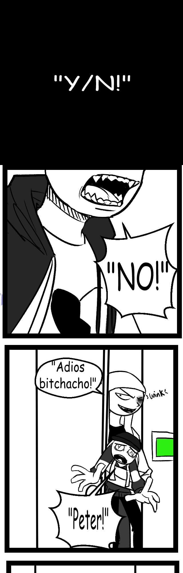 A fan-made crossover comic based on the visual novel/game "Your Boyfriend" by InvertedMindInc, and Charming Agency's mobile game, "Angry Boy Pedro and his Friend." Peter(your boyfriend) and Pedro(the angry boy) face off for their prized possession, [Your Name].