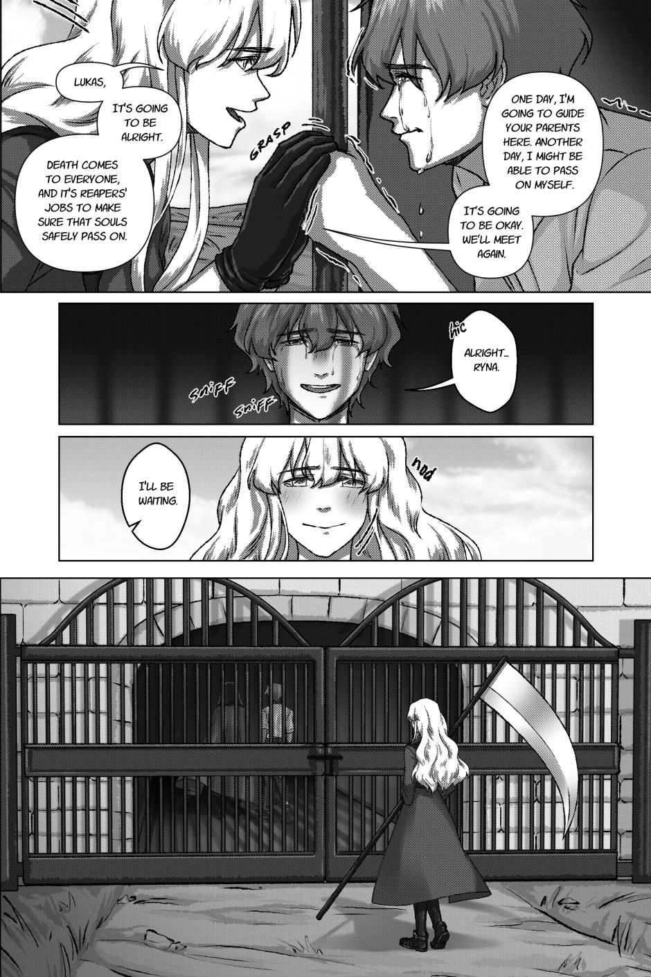 Ryna has officially started her work as a Reaper, and her first assignment is to collect the soul of Lukas Madrigal, a young man who passed away in a car accident. Before agreeing to go to the Gates of the Afterlife, Lukas asks Ryna if they could go on a trip through his nostalgia as he comes to terms with his sudden passing.