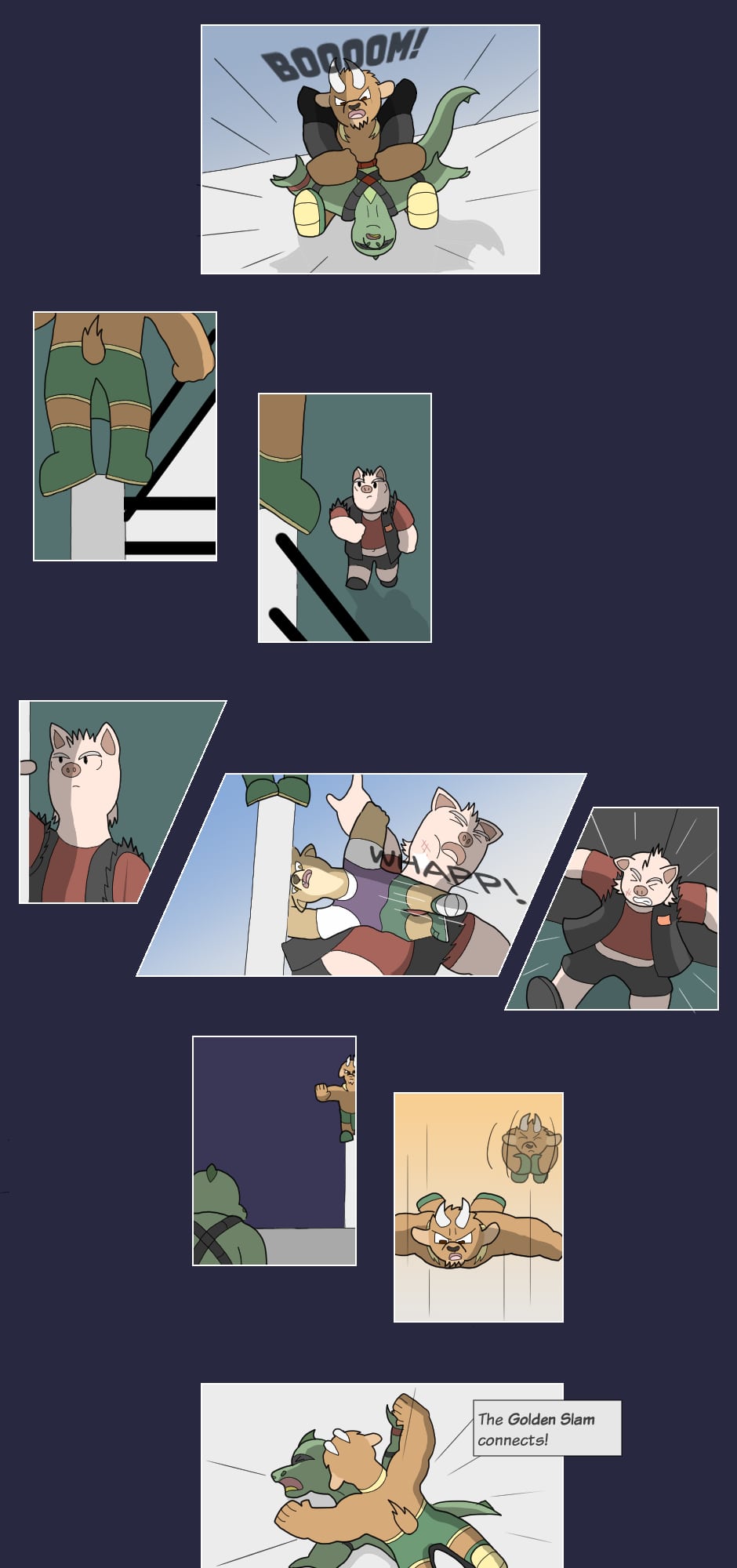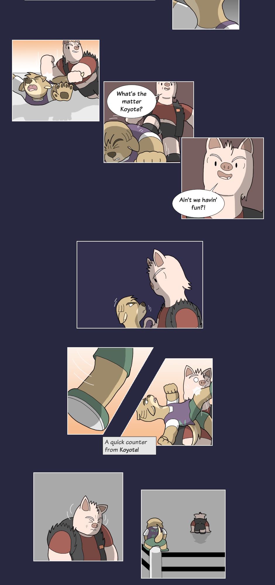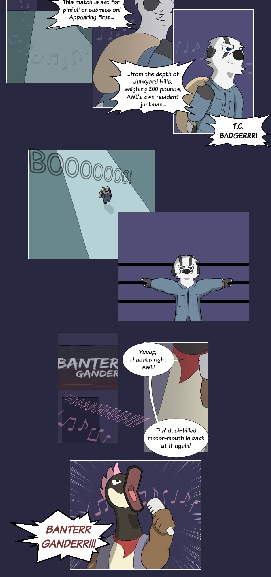 But outside the ring though...name's Gus Orikson; a completely opposite pig from earlier. Eh, guess you can say I kinda go with the flow. You'll see me hanging around these guys most of the time. Heh heh, they're always up to something.