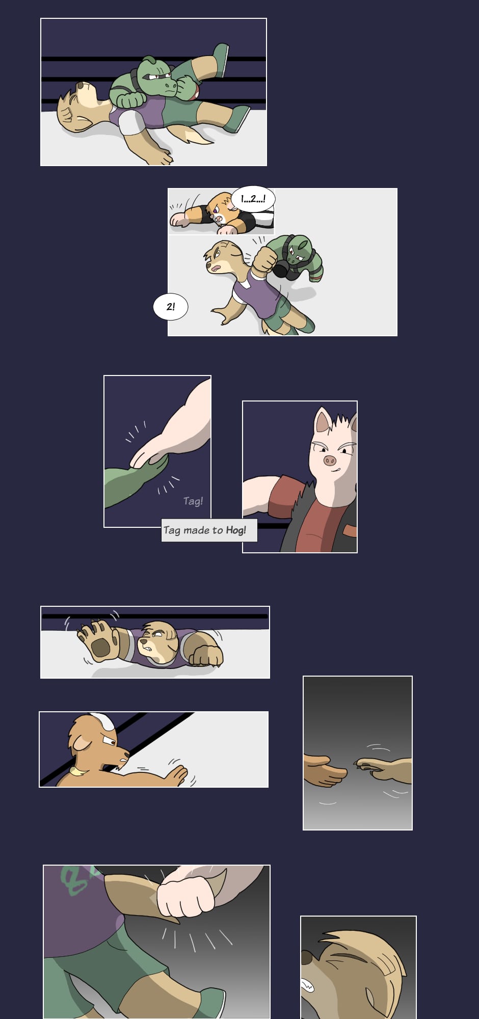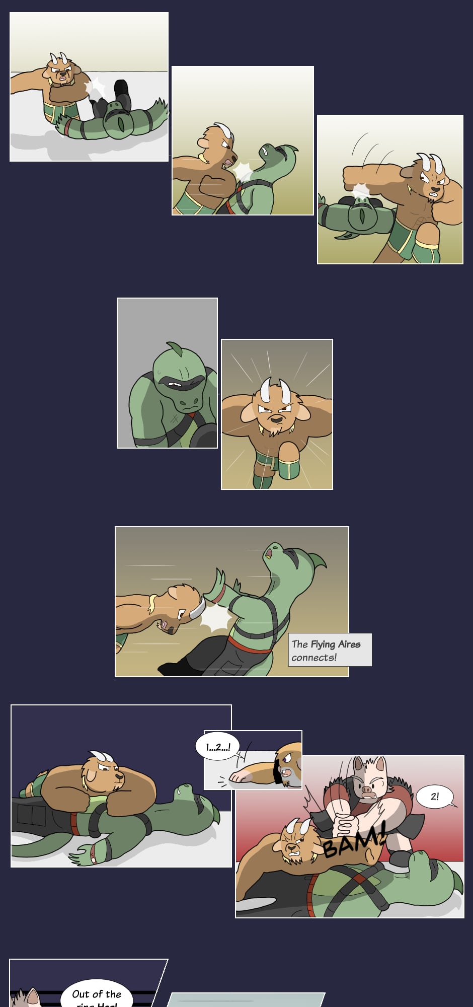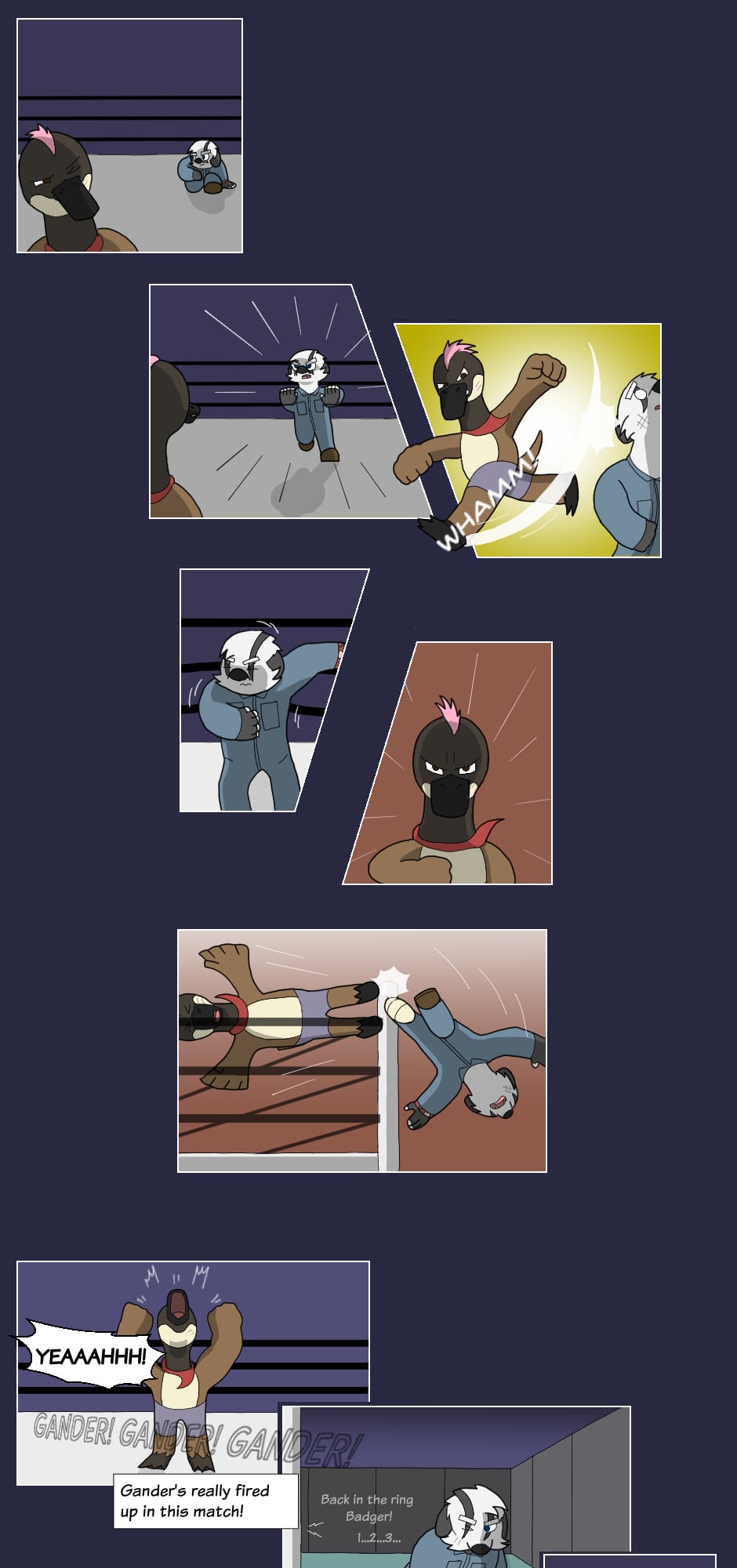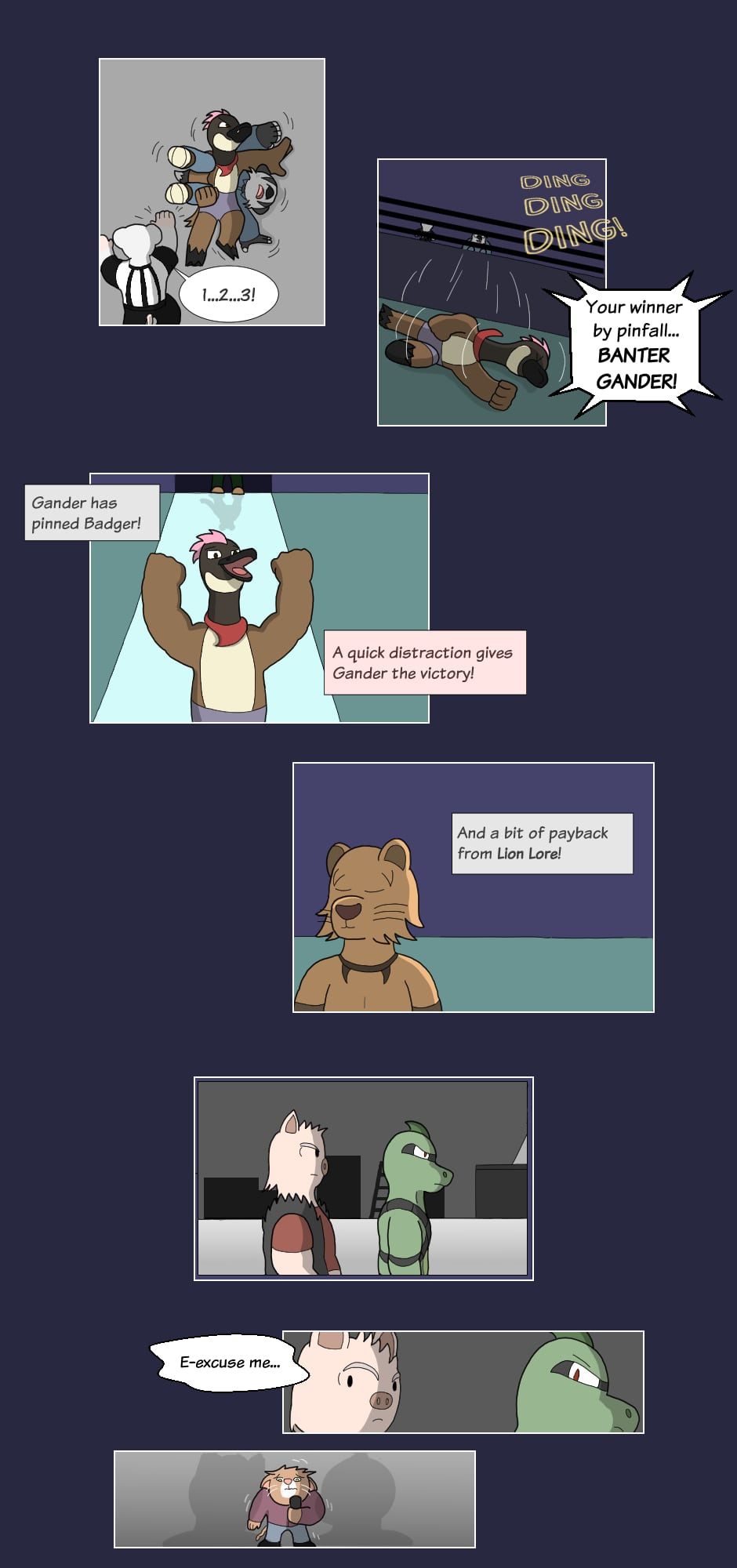 But outside the ring though...name's Gus Orikson; a completely opposite pig from earlier. Eh, guess you can say I kinda go with the flow. You'll see me hanging around these guys most of the time. Heh heh, they're always up to something.