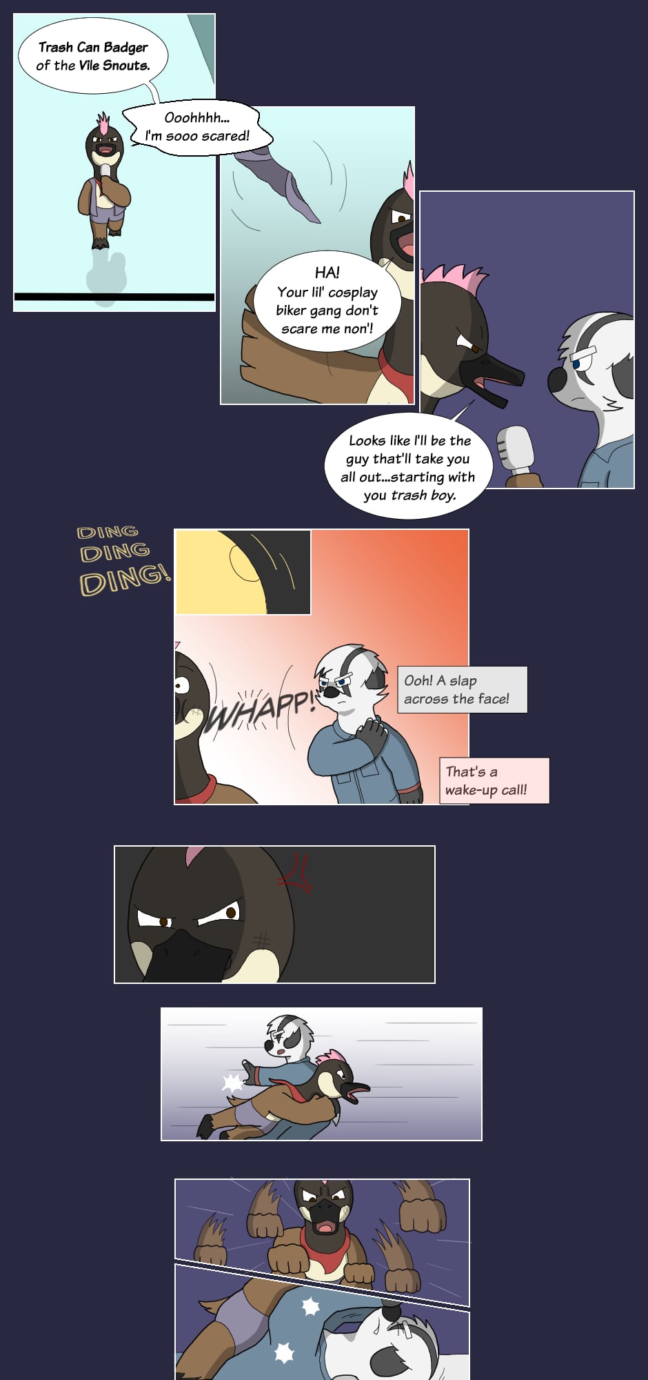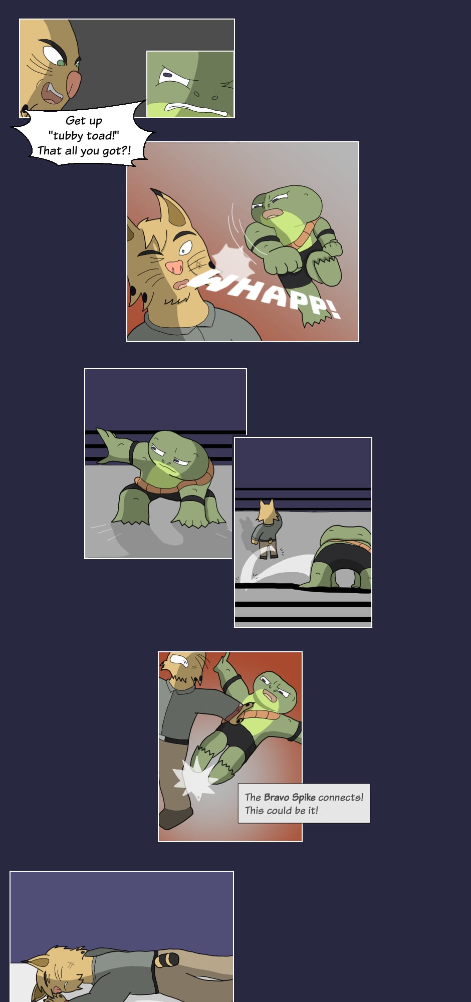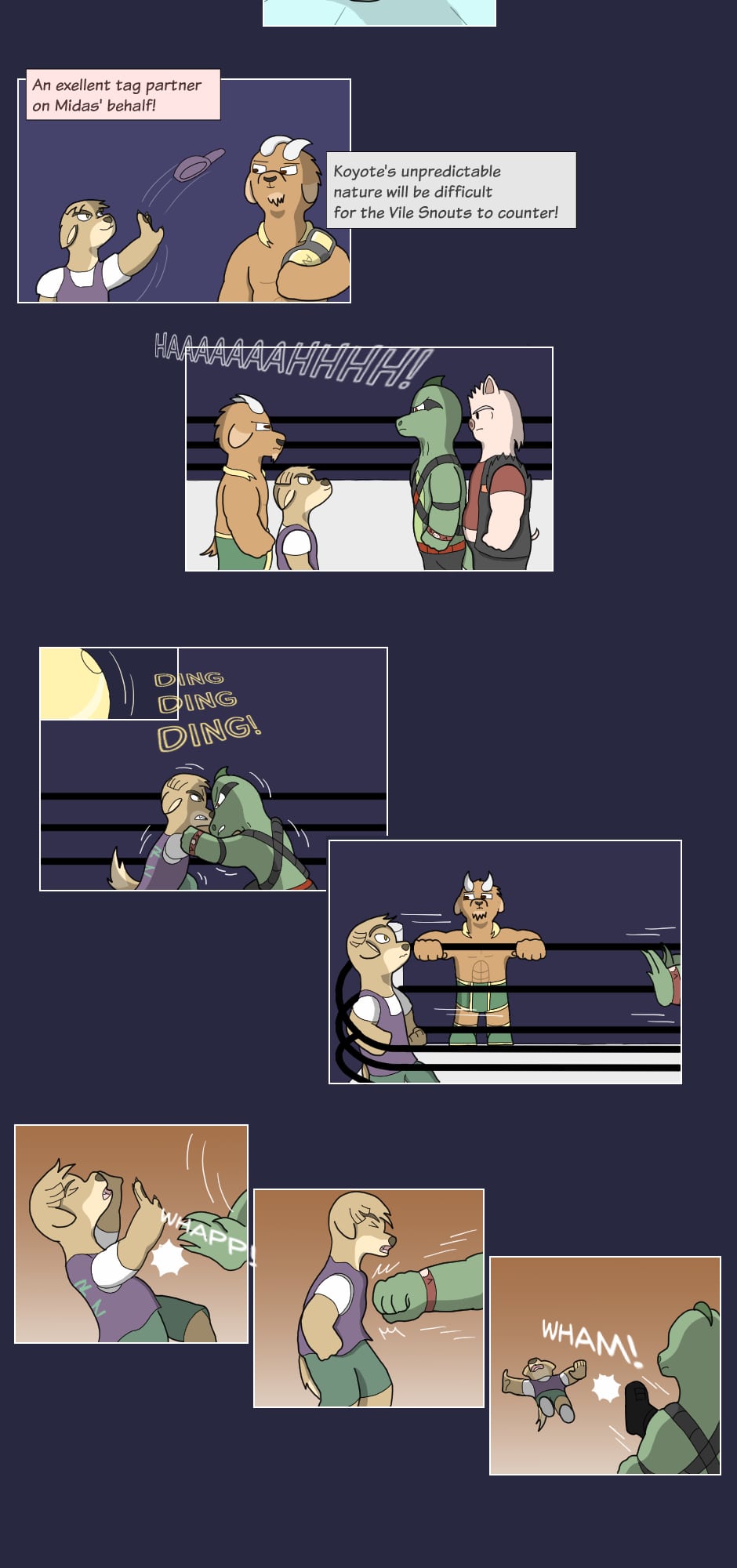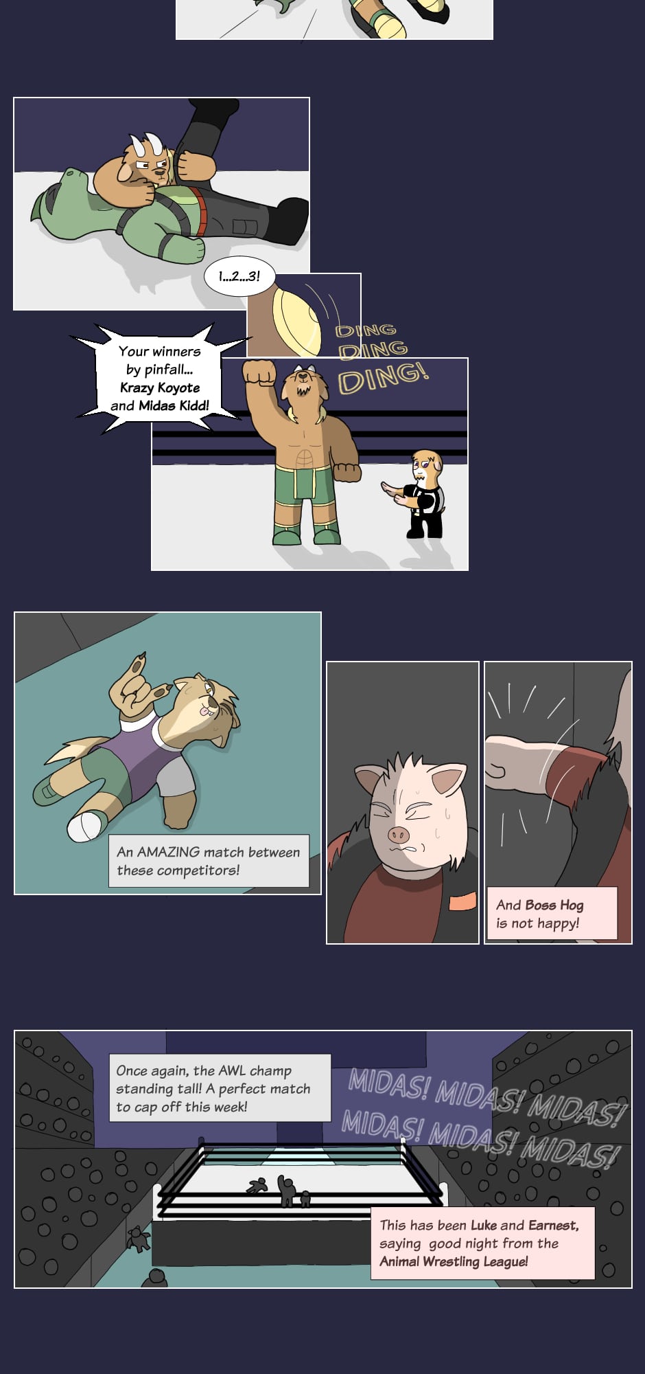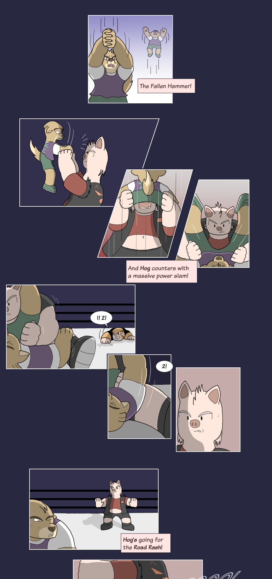 "Hey how's it goin'? They call me Boss Hog: the big, bad leader of the Vile Snouts. Along with Commando Dragon, Trash Can Badger, and Biz Cat; we're infamous for our antics across the entire Animal Wrestling League. Interfering in matches, attacking outside the ring, or just plain cheatin': the Vile Snouts win by any means...!
