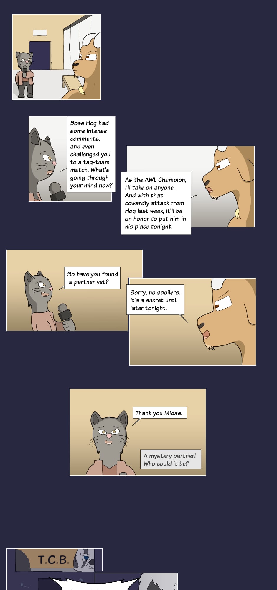 So uh, yeah, you can follow us on these twists and turns each episode we go through, both outside and inside the ring!"