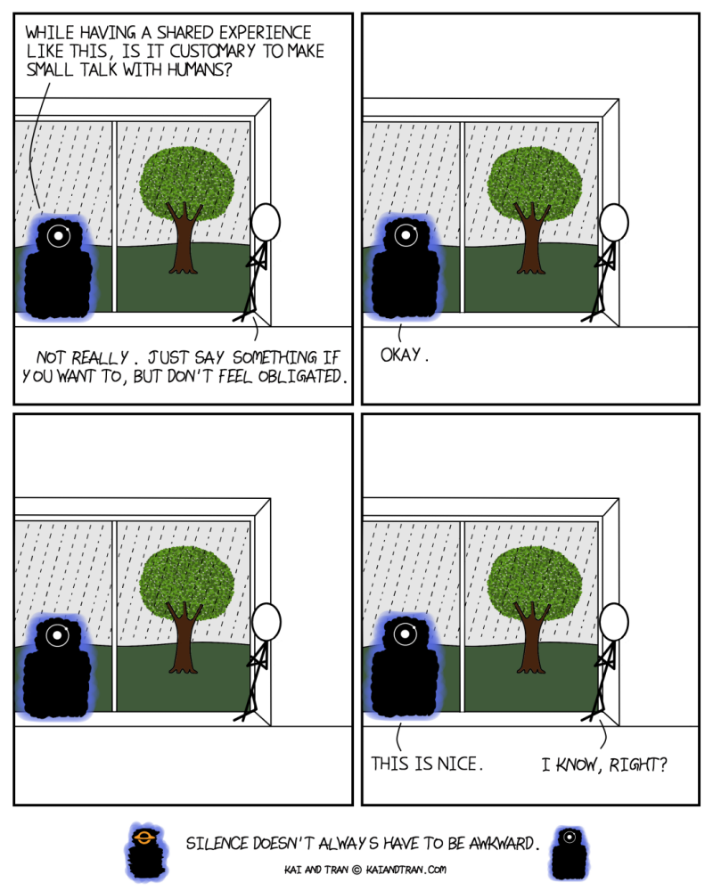 A comic about alien immigrants by a resident alien immigrant. You know how our thoughts are chaotic about certain things and organized about others? Kai and Tran are alien beings that embody each of those qualities. Watch them as they navigate our world and learn our human ways. These are short-gag comics and are updated weekly. Follow us on Instagram (@kaiandtran) for extra content.