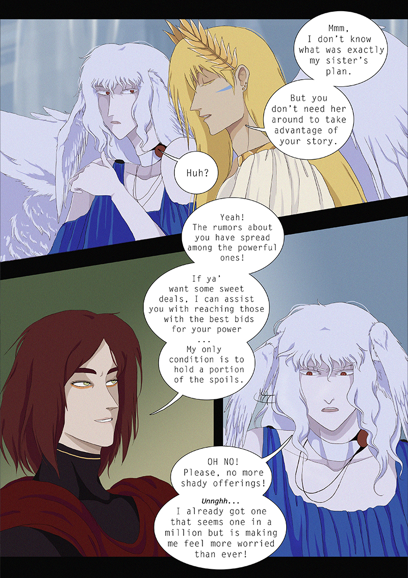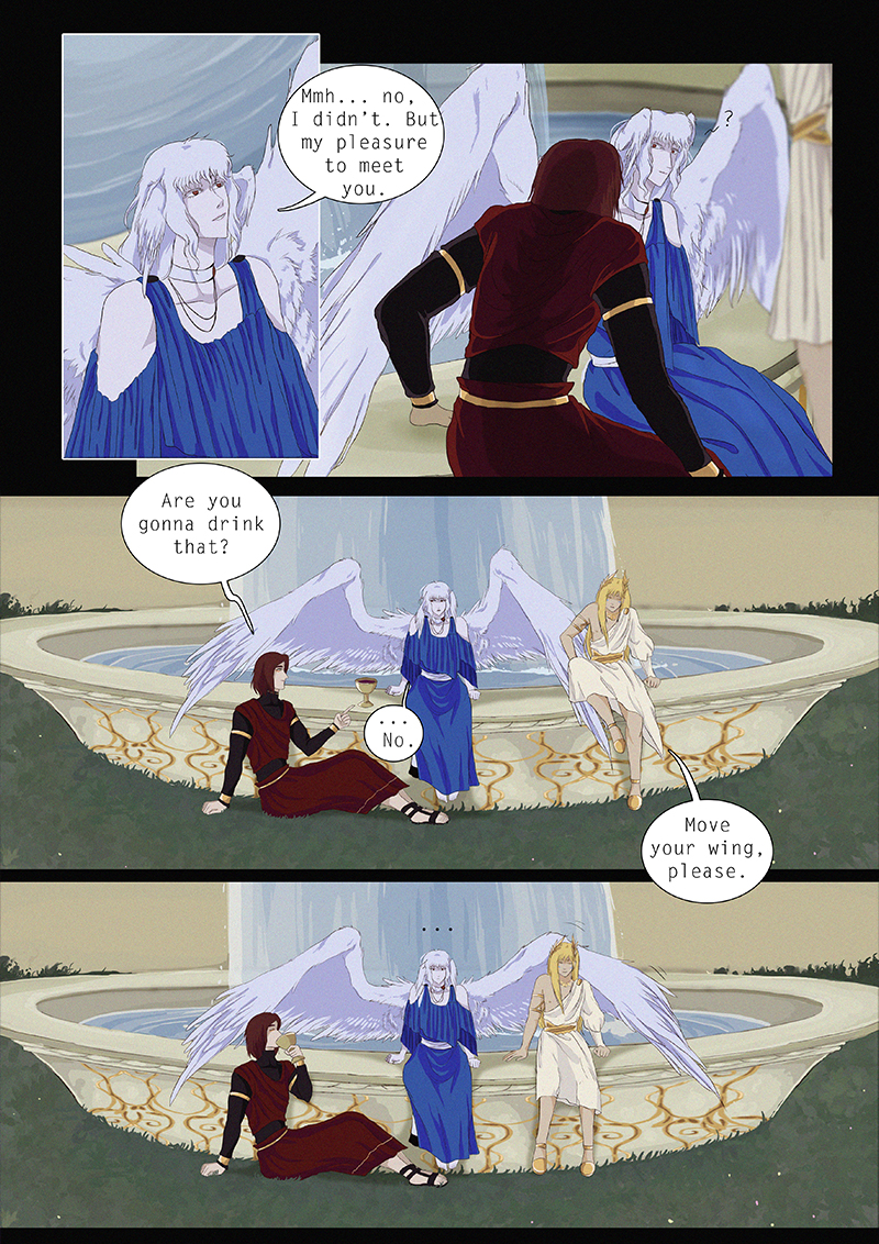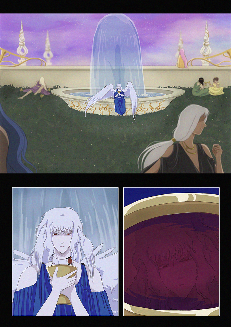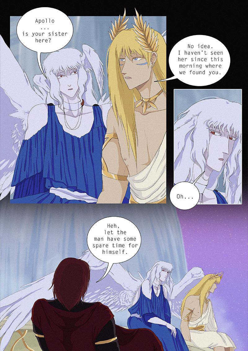 Hypnos and Thanatos share the same face, the same strength and a close bond in spite of their opposite personalities: While Sleep is gentle and embraced through his friendly nature, Death has grown cold and self-absorbed under the weight of his endless duty.