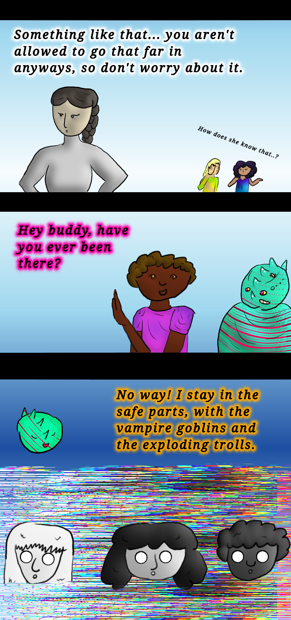 You haven't seen any vampire goblins, but there were some exploding trolls back on page seven. You know, the three little guys stacked on top of each other? Good thing they didn't fall...