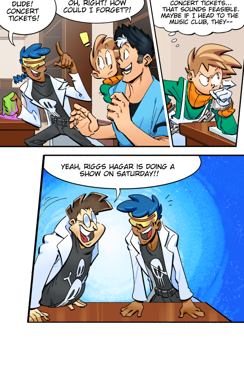 While other people have fantastical adventures in and out of high-school, the 'normal' student Conner Jones runs a bartering system to get his hands on cool gear and hopefully find his true calling in life. Conner views his superpowered classmates as an intimidating high standard to reach up to - but the feeling may be mutual!