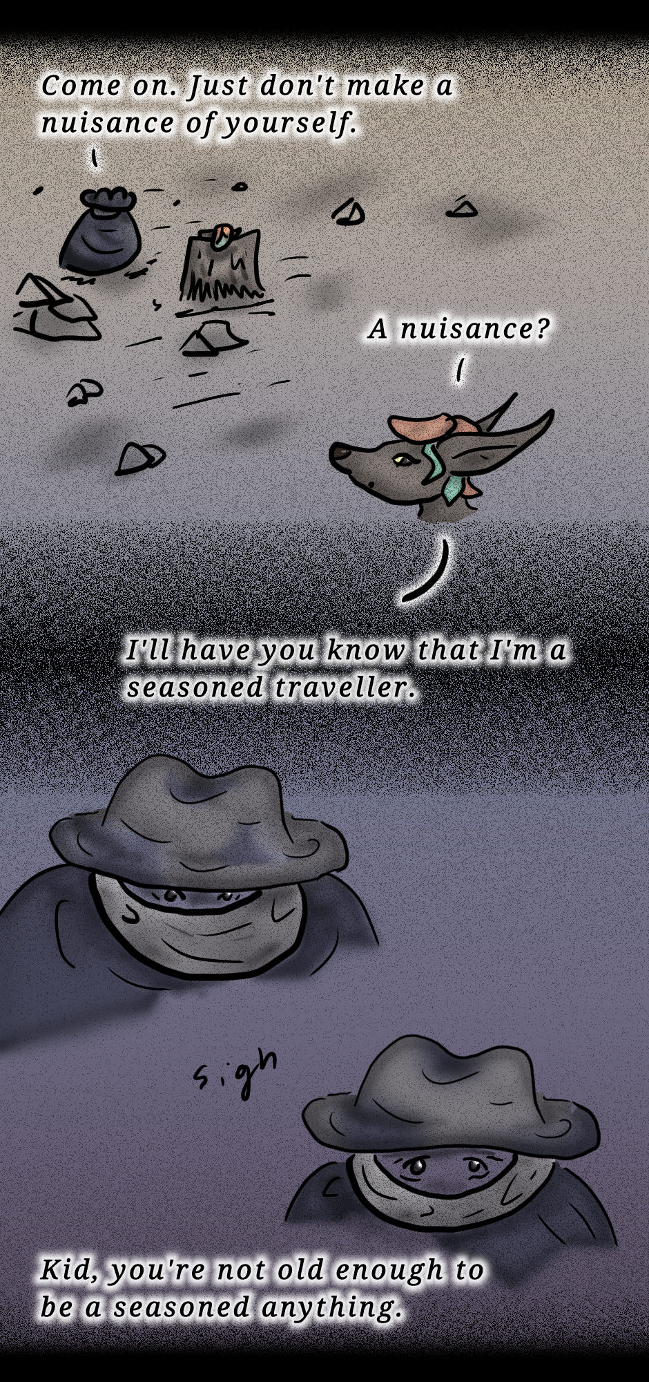 To add to my list of things I can't quite draw yet: long winding trails with long scenery views on an incline plane. Y'know, the path on the cliffs.