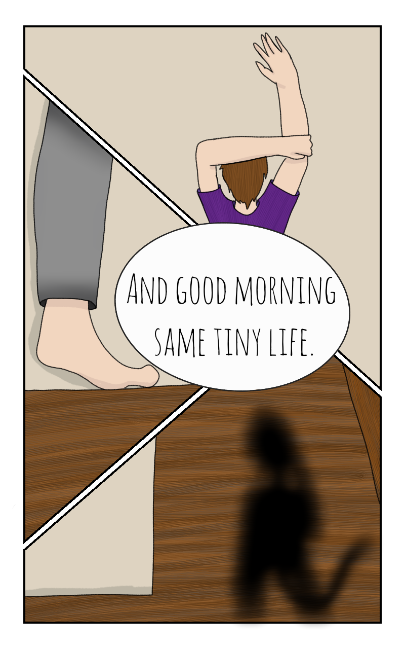 A young borrower just trying to navigate the hardships of being a person of her size, when she stumbles into the attic and is discovered by the house cat. What will the house owner think when they learn about her existence?