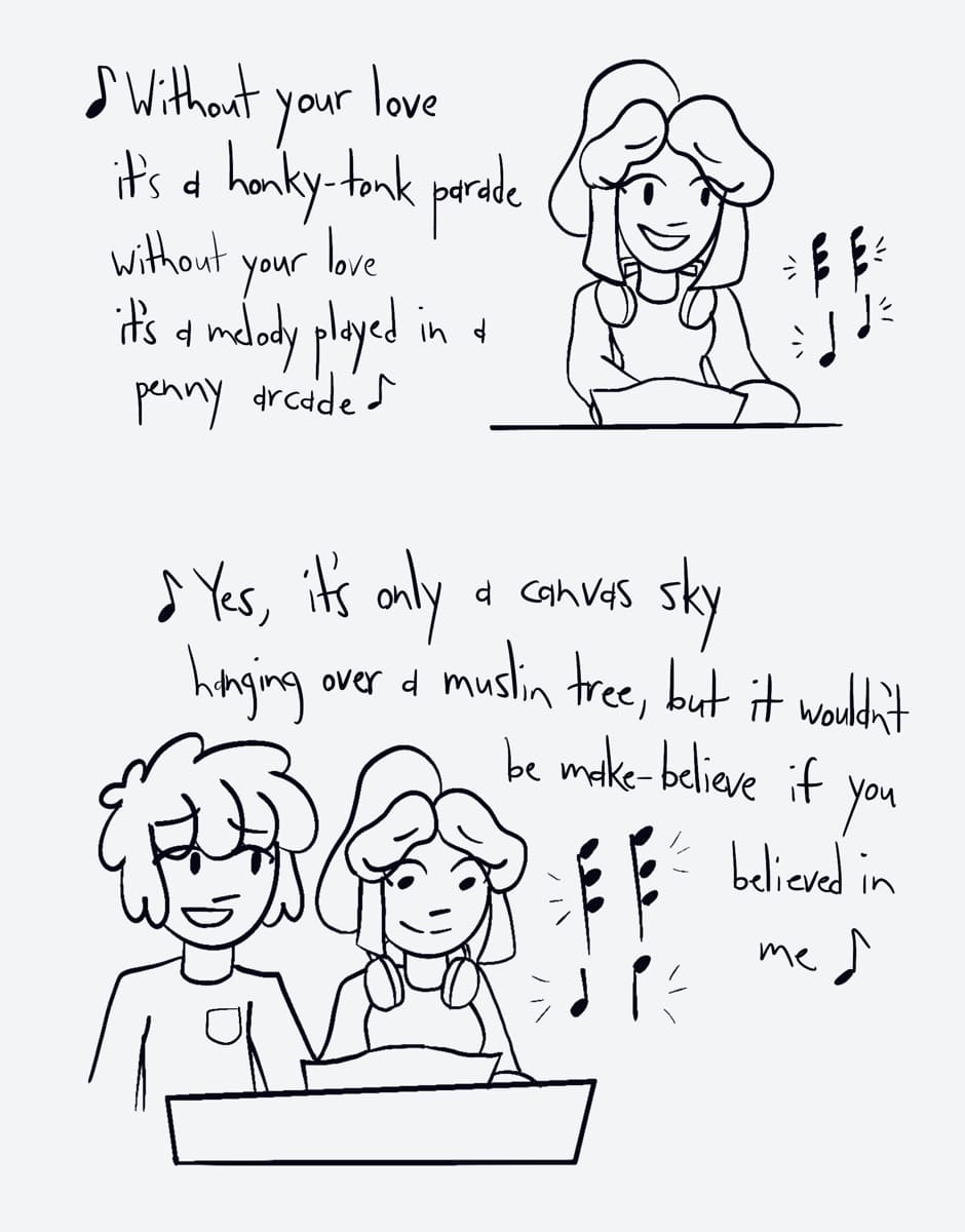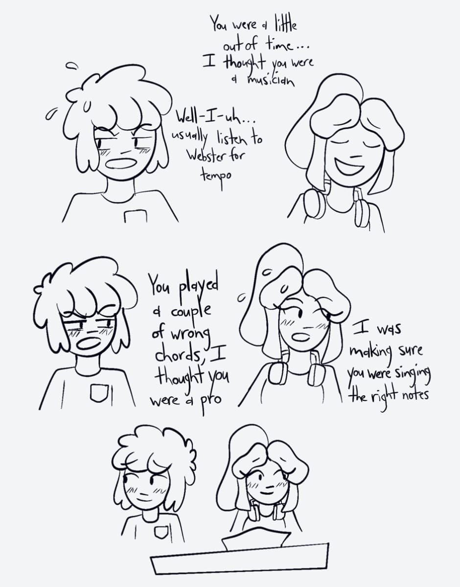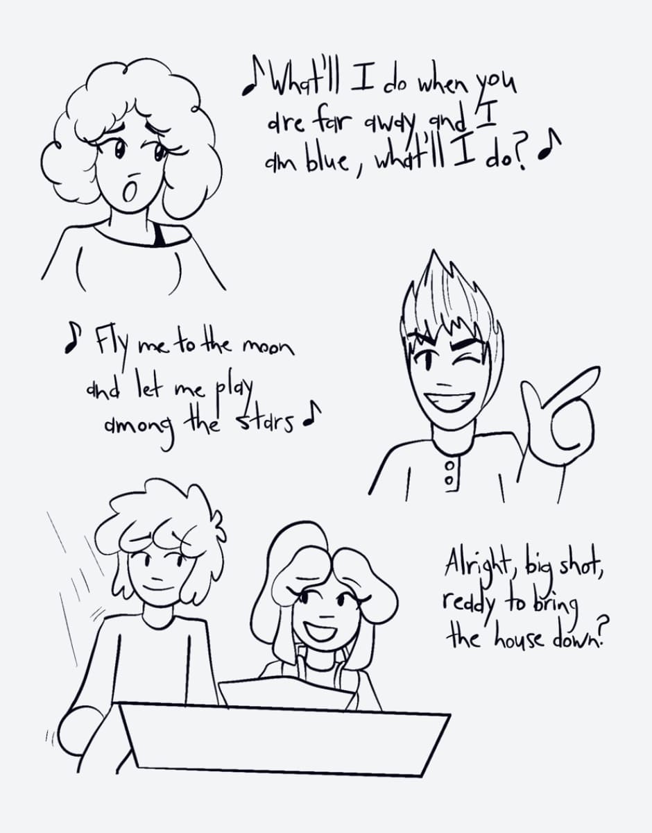 Ashley and Marshall practice his song for the show.