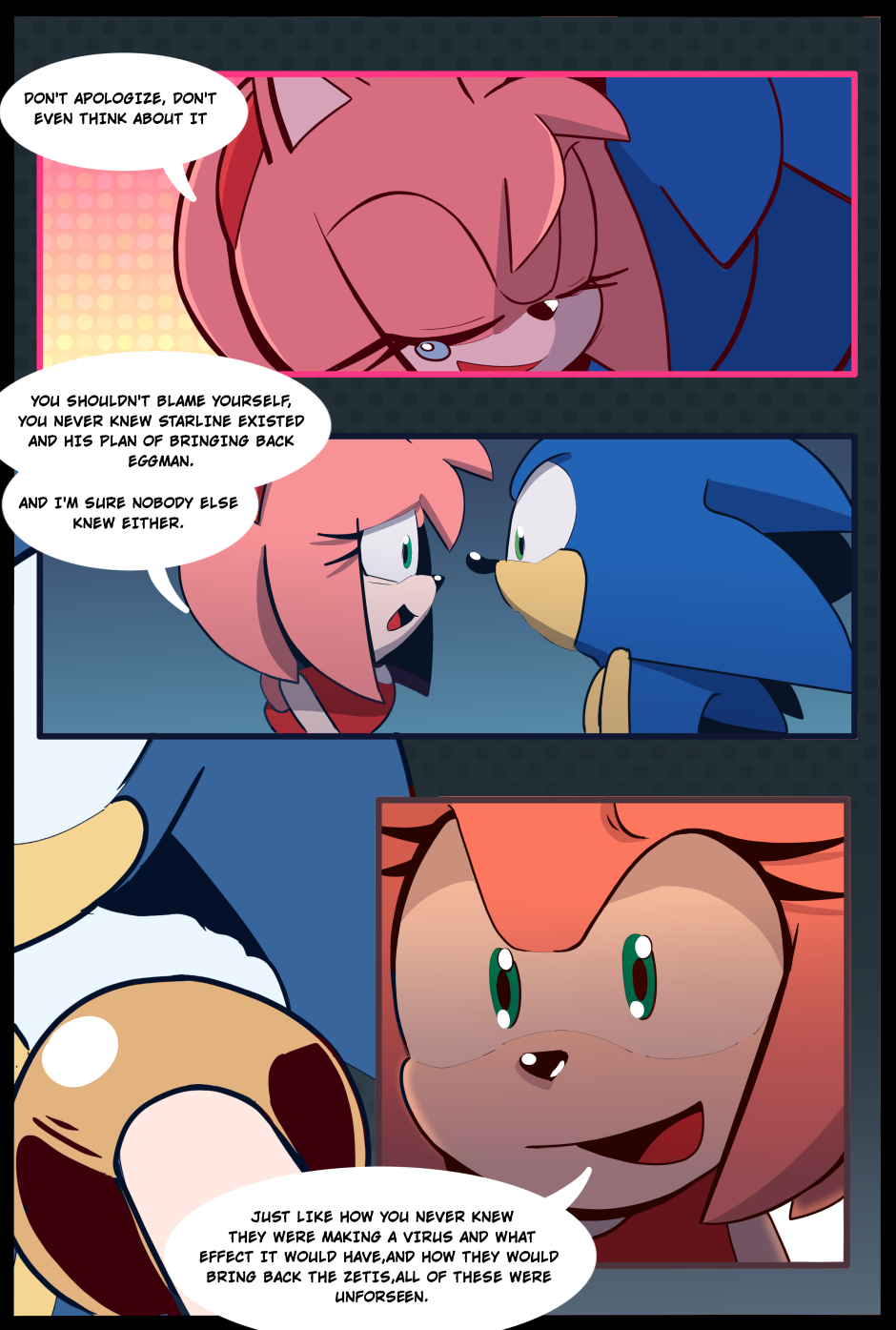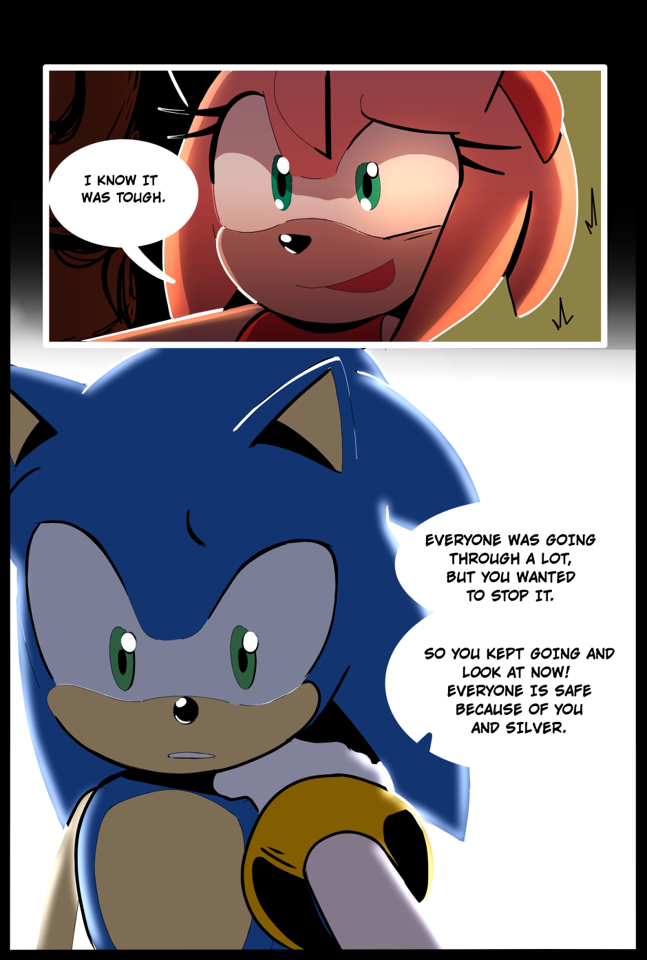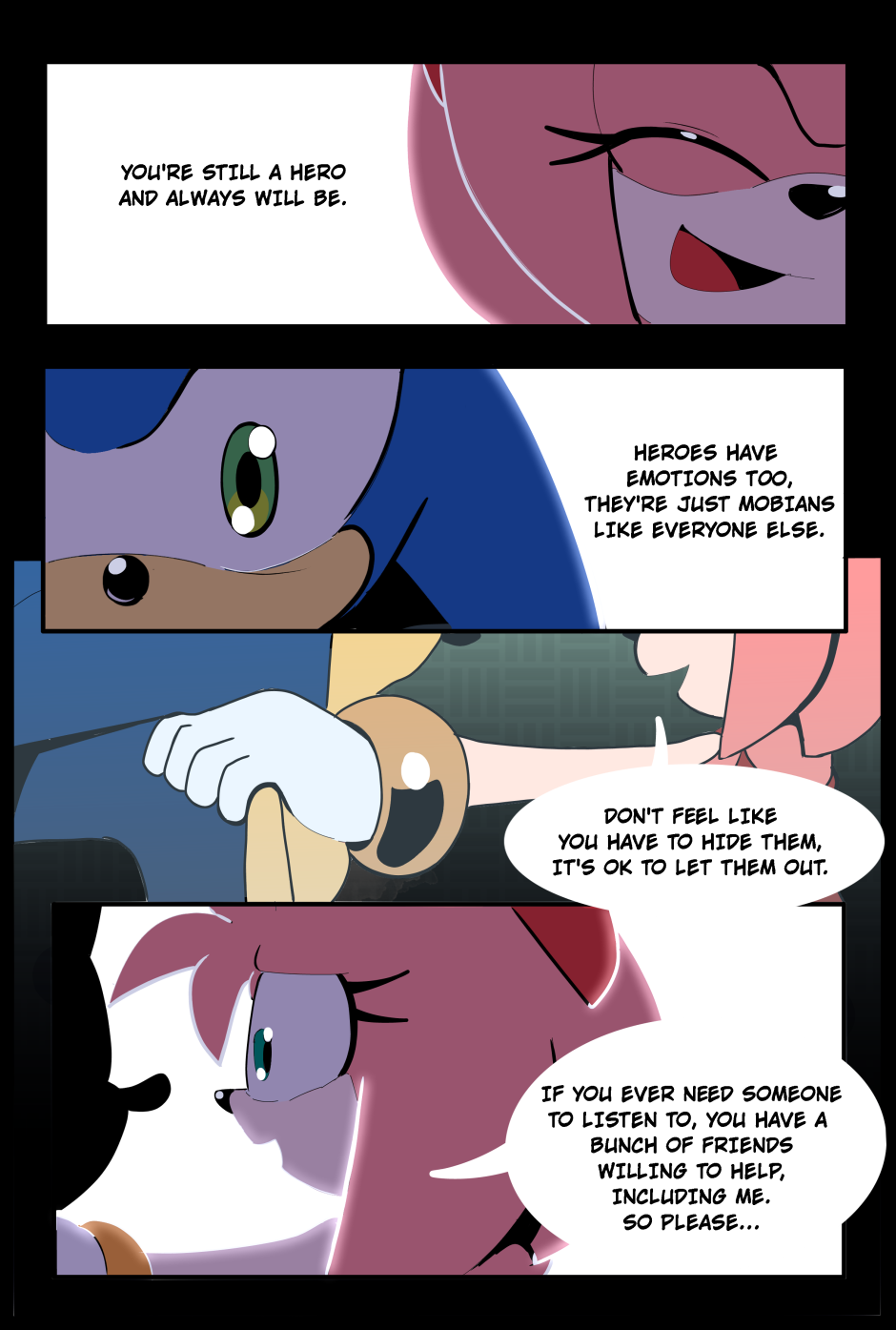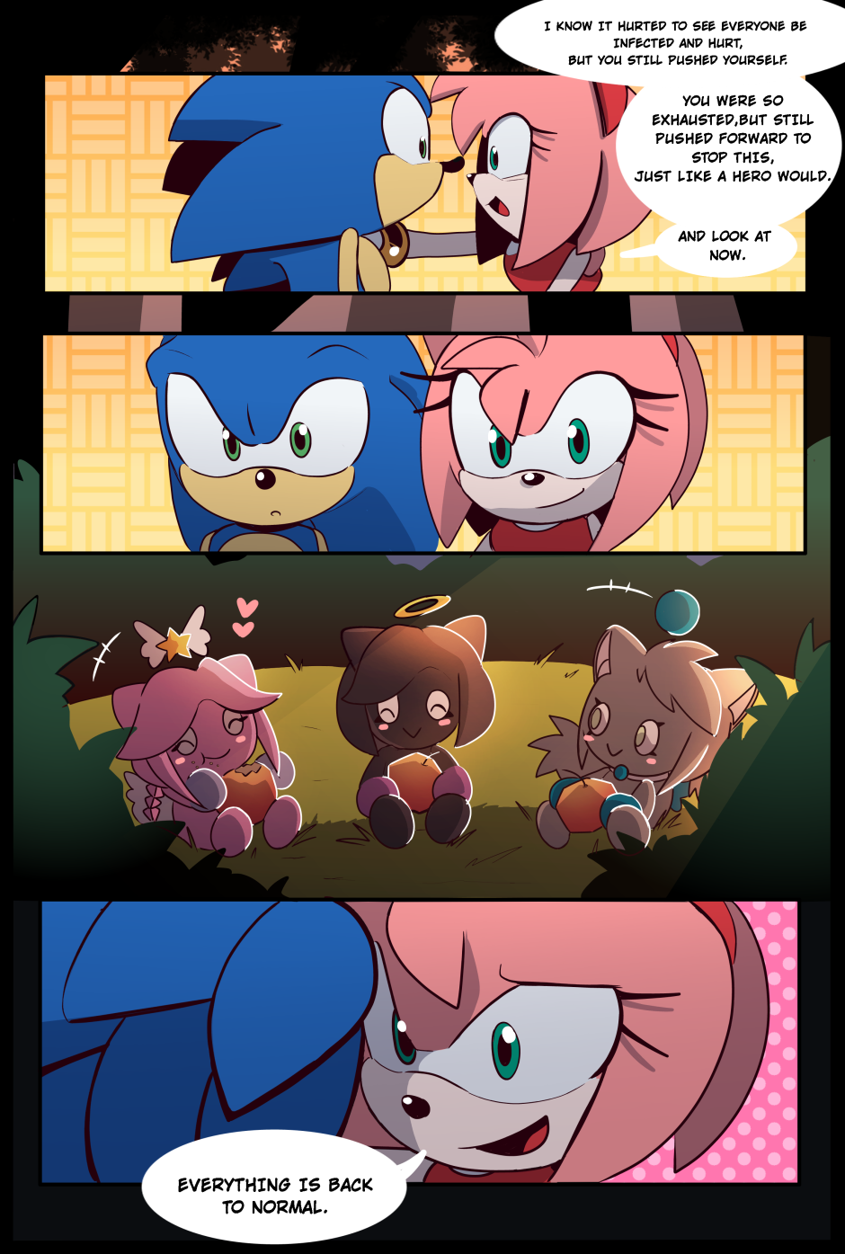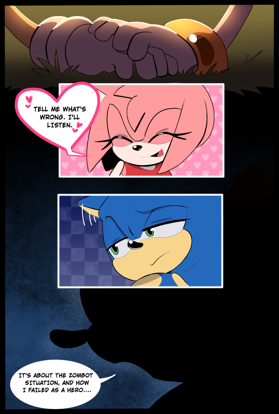 After the events of the metal virus, Sonic is troubled. Will Amy be able to help him? Story: https://twitter.com/Kirby_C00kie Art: https://twitter.com/chinchila010