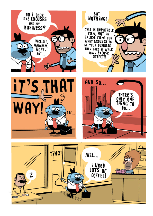 Mr Pooch’s boss is a total jerk and that’s a fact! © 2015 Marc Jackson and Weirdo comics