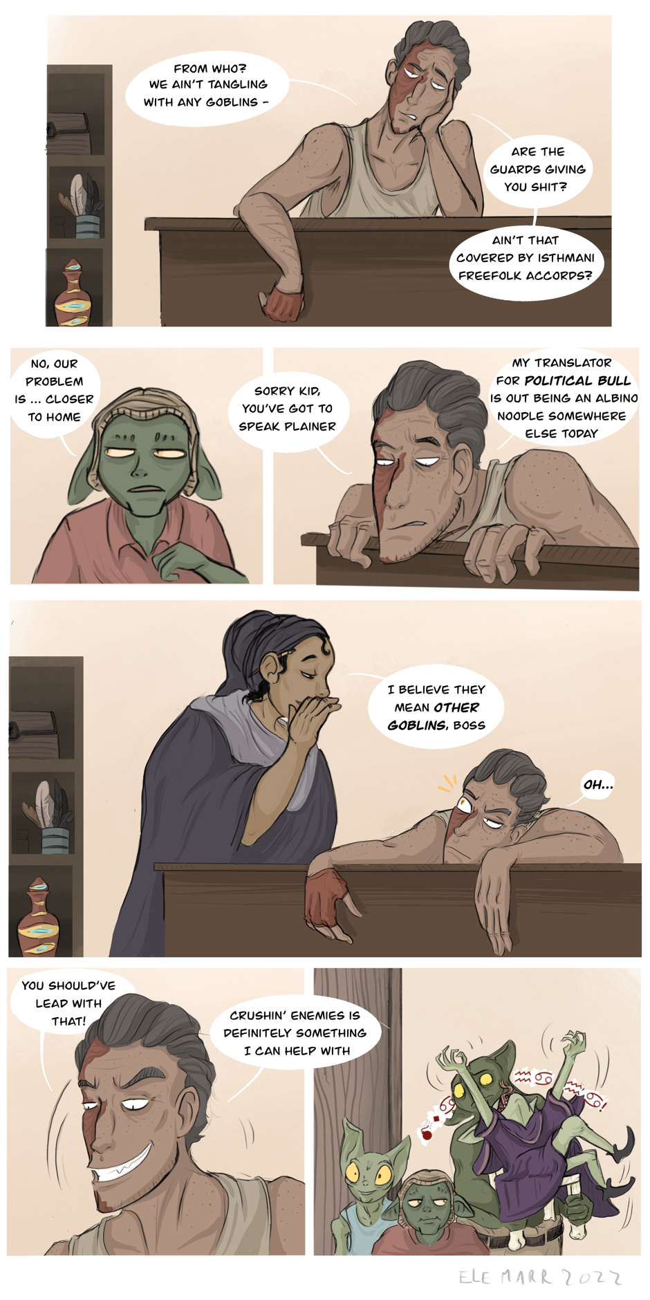 A fantasy slice-of-life comic about bad people living in interesting times. Updating weekly!