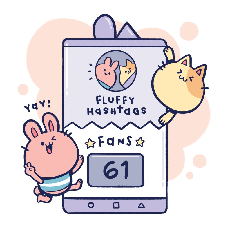 "Fluffy Hashtags" is a silly slice-of-life comic about Bunejo, a little pink bunny and Cato, a fun yellow cat, trying to become internet famous. Each week they try out a new trending topic to get closer to their goal. Will they succeed? Follow "Fluffy Hashtags" to find out!