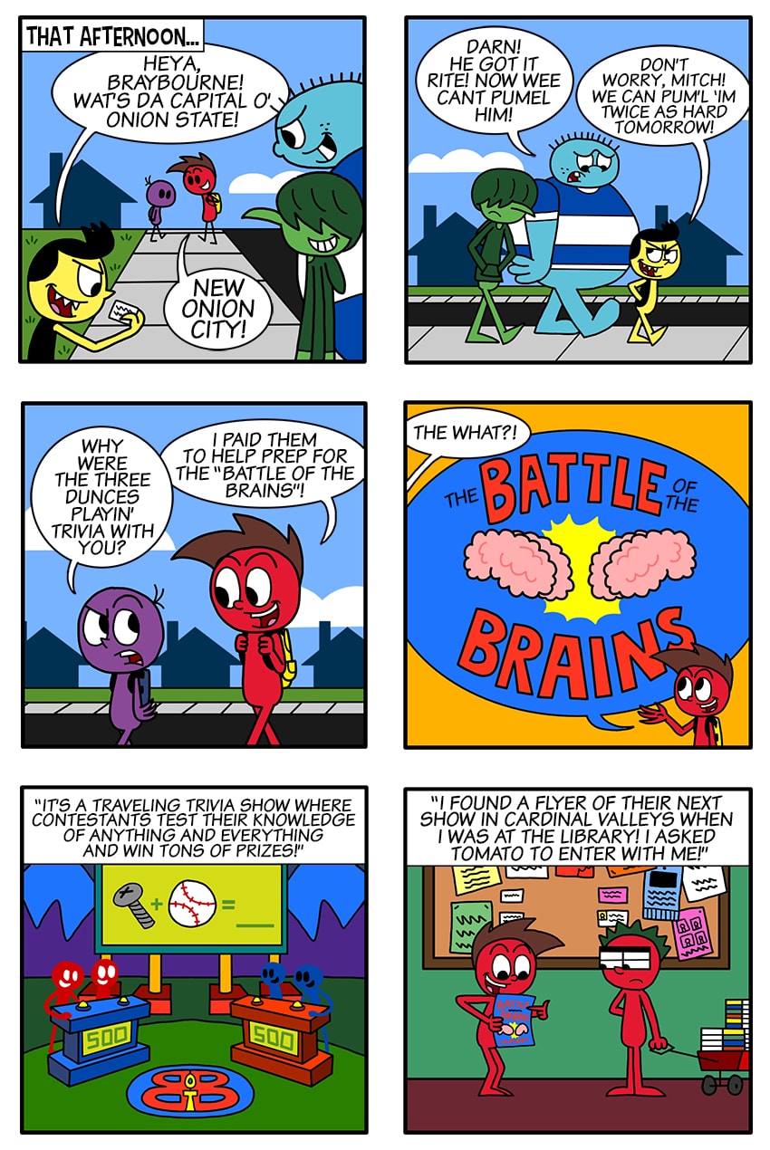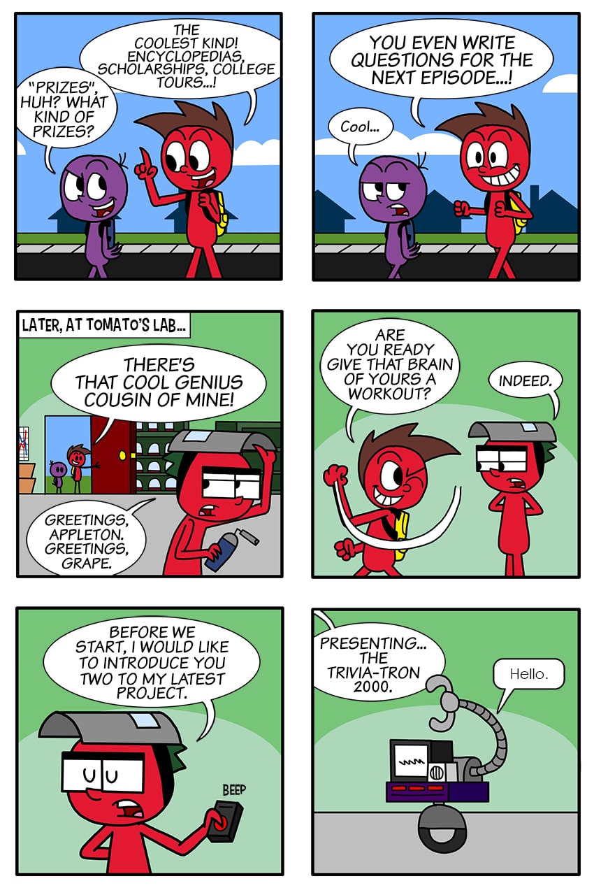 Apple finds himself competing against Tomato on a trivia game show.