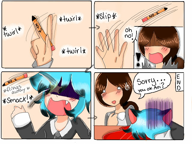 Sometimes when you spin your pencil on your hand...it flies...away, to another person's face xD