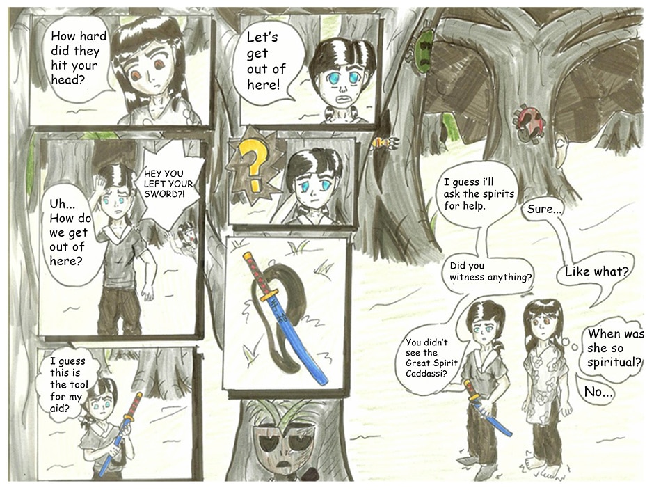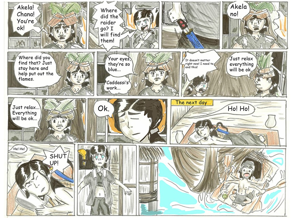 Our main character Akela meets the Great Regional Spirit; Caddassi, who aids her with a sword to save the village. Akela soon realizes her and the village (Twyi) is too weak to defend itself, thus the quest to find military aid begins!