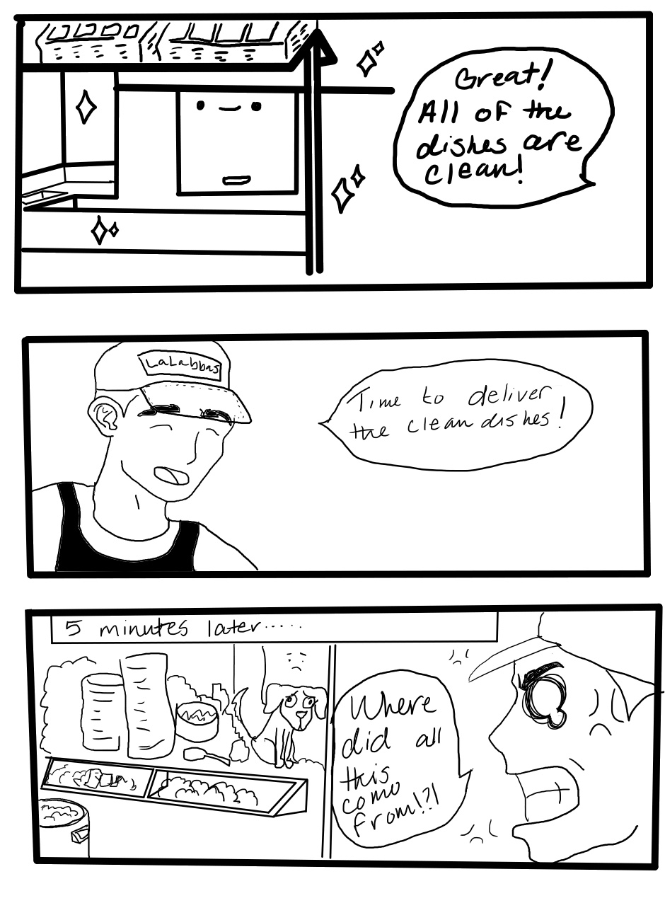 Hello everyone! its been months since I've done a comic! I've been busy with other commissions and my personal life. This comic I made right before I fell off the grid with my series of comics. Its a glimpse of what its like to be a dish washer. Enjoy!