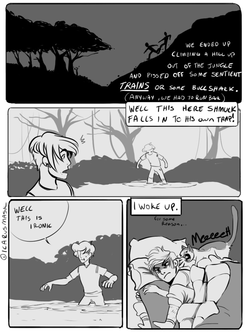 Finally! Someone who understands what it's like to have strange, vivid dreams! I have dreams like that every night! Like last night I dreamt my family were all sparrows with broken wings and they were falling down a well and I was trying to catch them but they kept slipping from my grasp. And people wonder how I can sleep so much and be exhausted when I wake up....