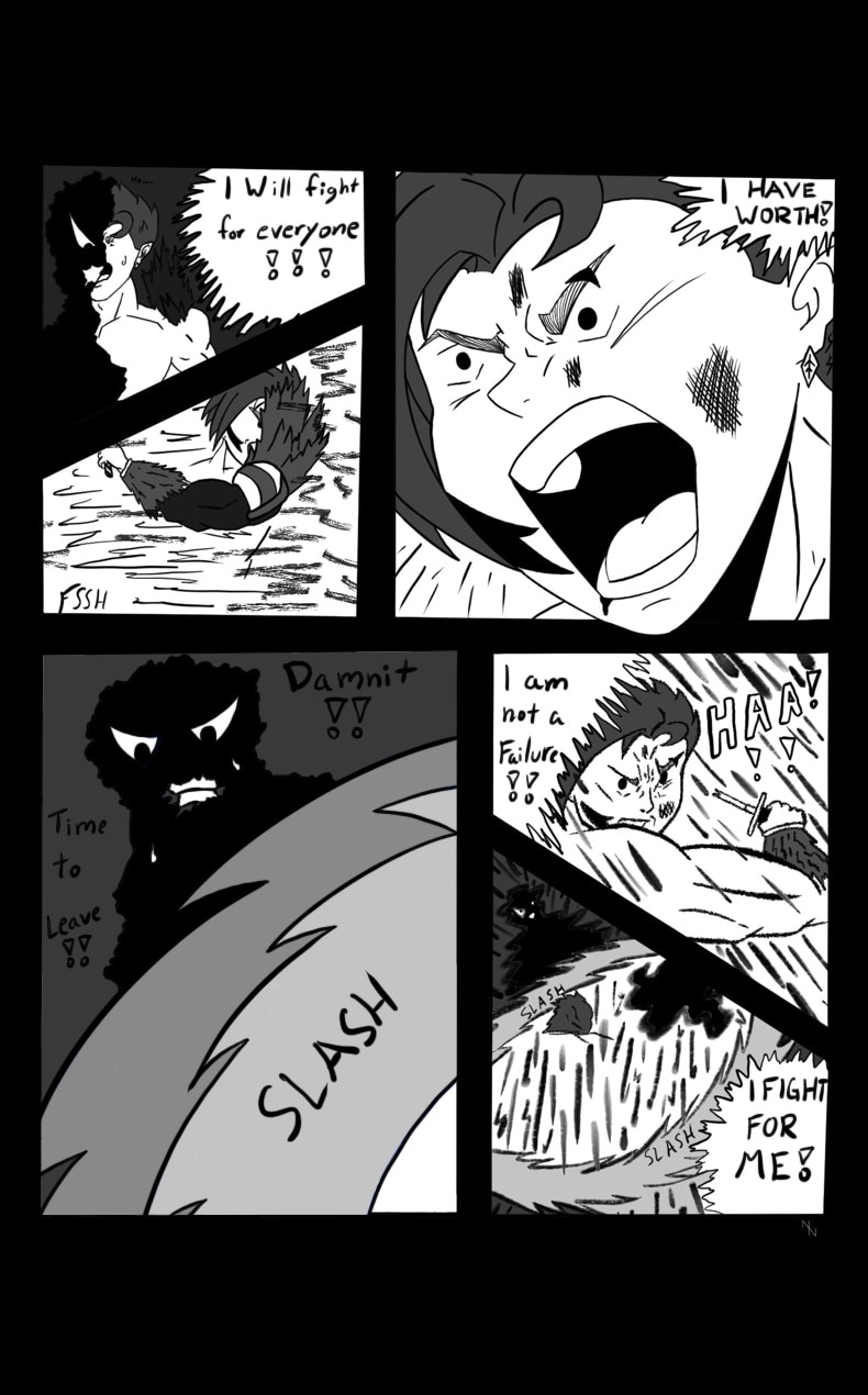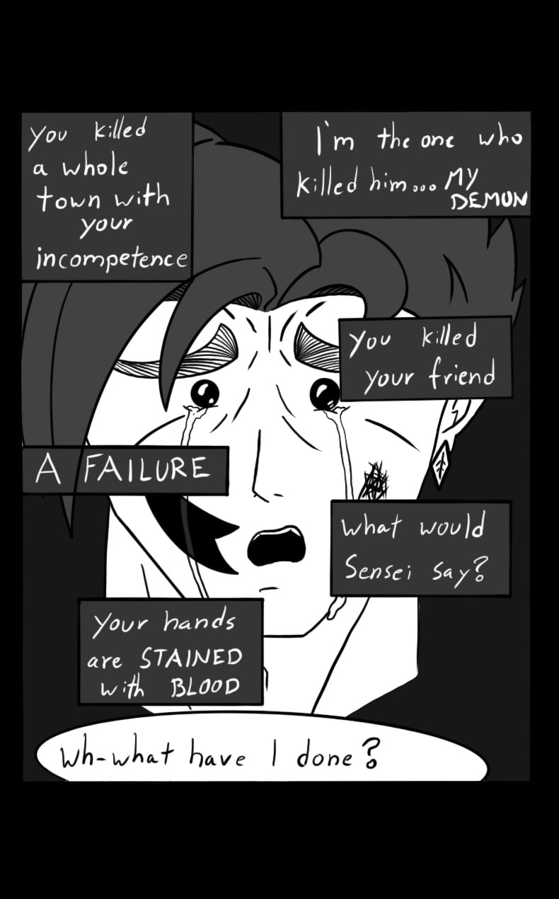 Tlan is a warrior who goes around his country fighting demons. After defeating numerous demons, he has finally found the last three demons remaining. Close to mastering his Sensei's last technique, he approaches the coming battle with confidence. Will he be able to defeat the last demons? Or will he succumb to their secret? TRIGGER WARNING: Darkness Within deals with topics such as Depression, Anxiety, PTSD, etc. This comic was created to help one overcome these challenges/address these conflicts.