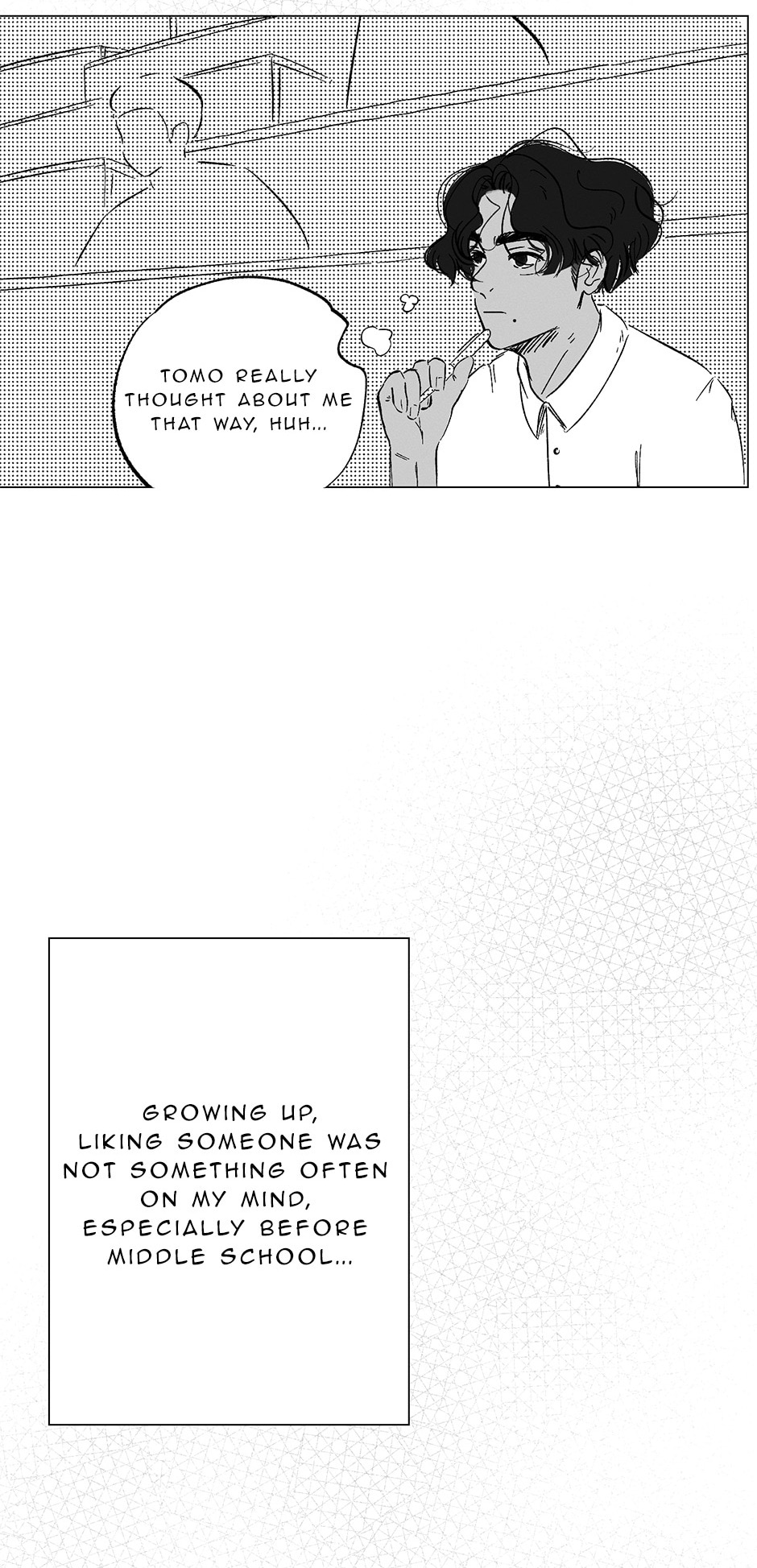 Mateo is a busy college student who prioritizes his studies and working part-time at his parent’s panadería (bakery). On the first day of a new semester, he runs into Tomo, who used to be his neighbor when they were children before Tomo and his family moved away. This chance meeting after ten years has to be a coincidence...right? (BL/LGBTQ+, new episodes every other Sunday!)