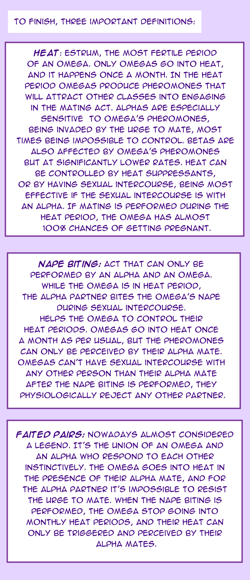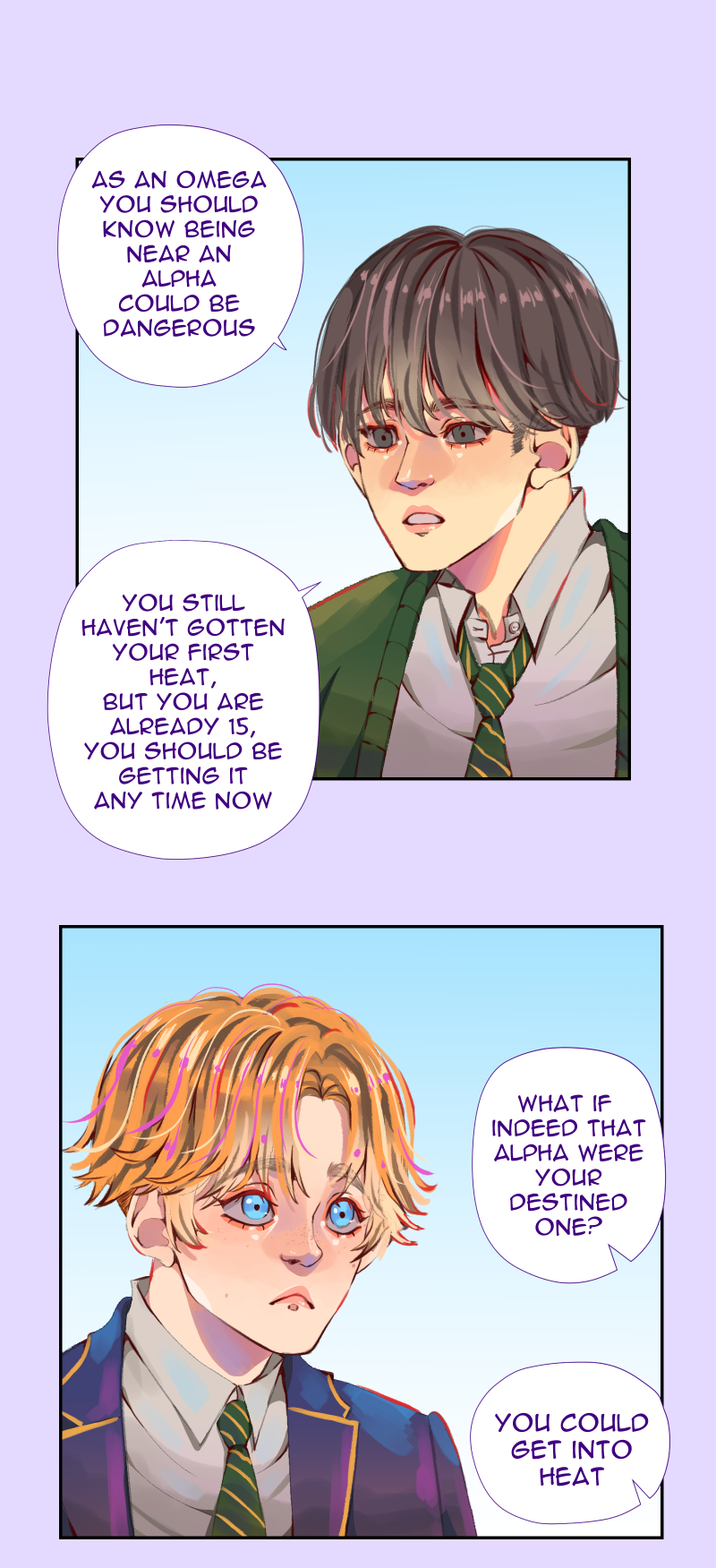 This is my new comic, this is an OMEGAVERSE story, so please read at your own discretion. If you don't know what omegarse is, you can read till the end of this first episode to find out. Patreon link: http://www.patreon.com/saayi