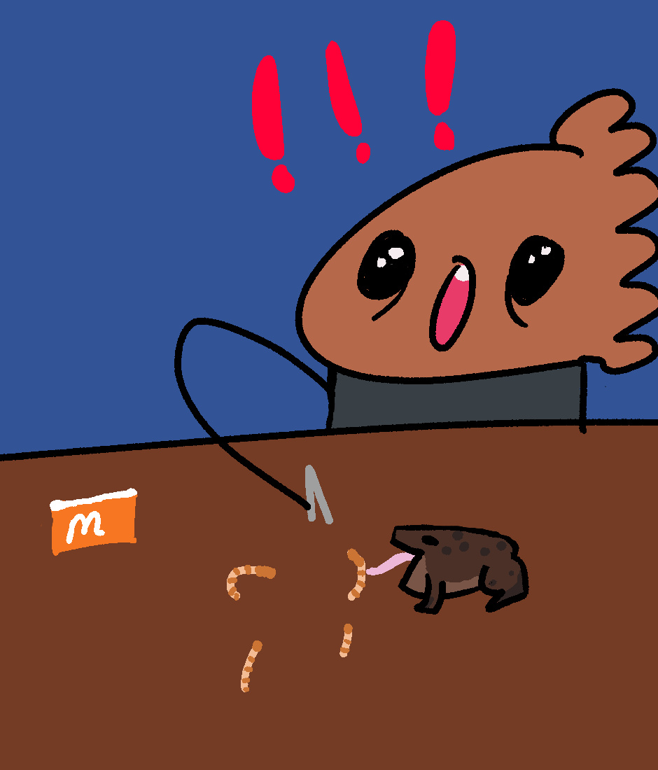 So like my toad stopped eating a week ago so i got really worried. i tried to feed him today and he ate 6 whole giant meal worms.
