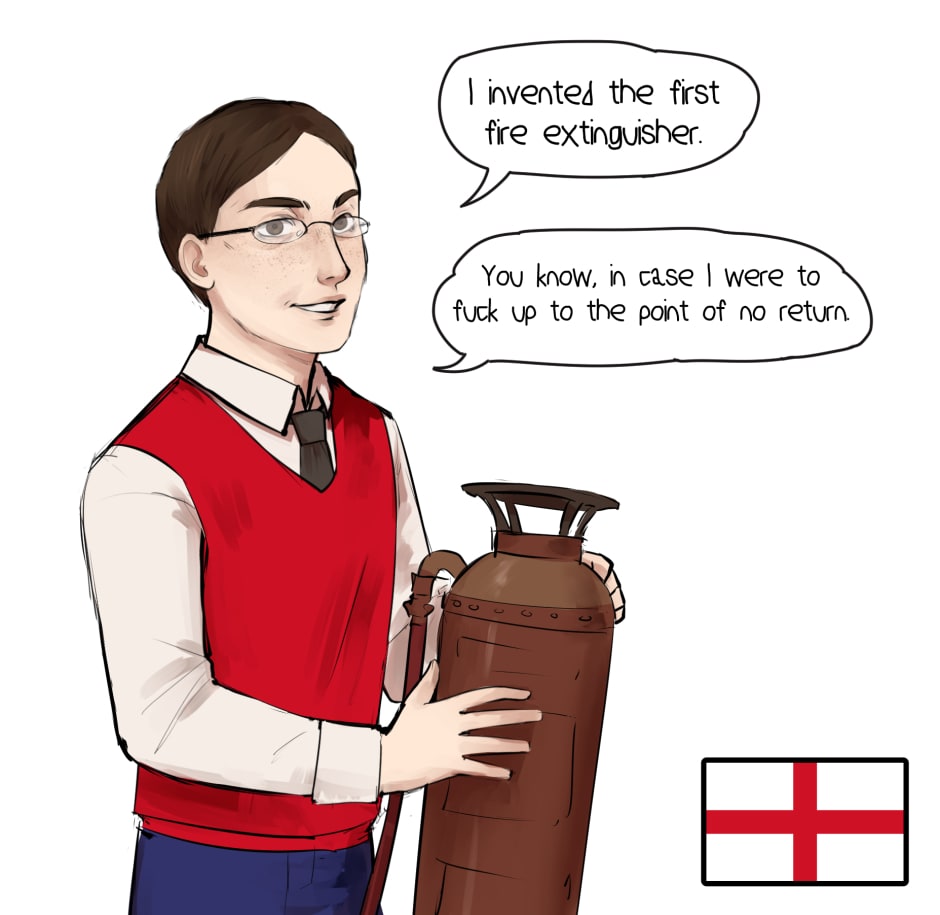 I love this, "I invented the fire extinguisher in case we fuck up to the point of no return"