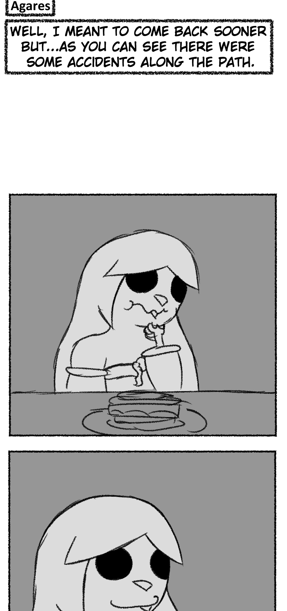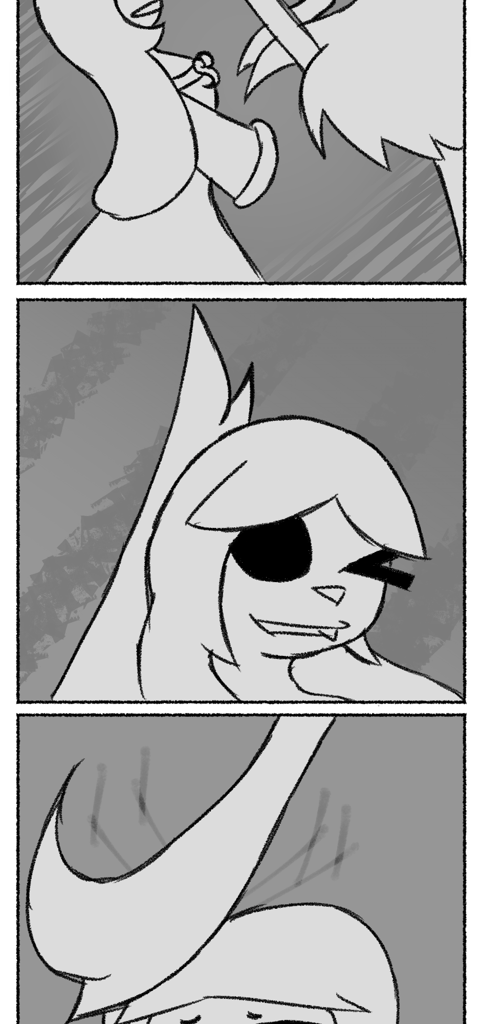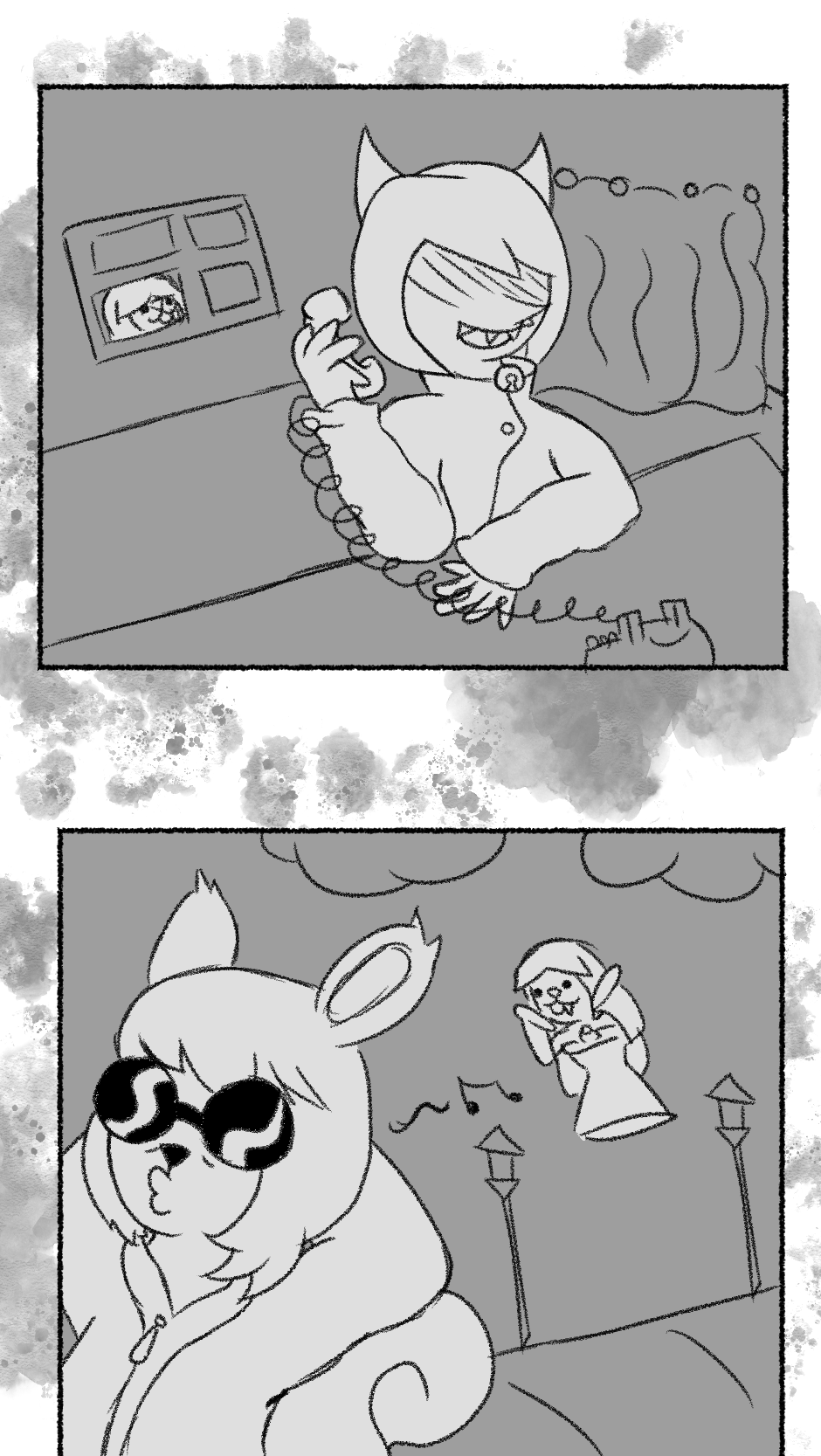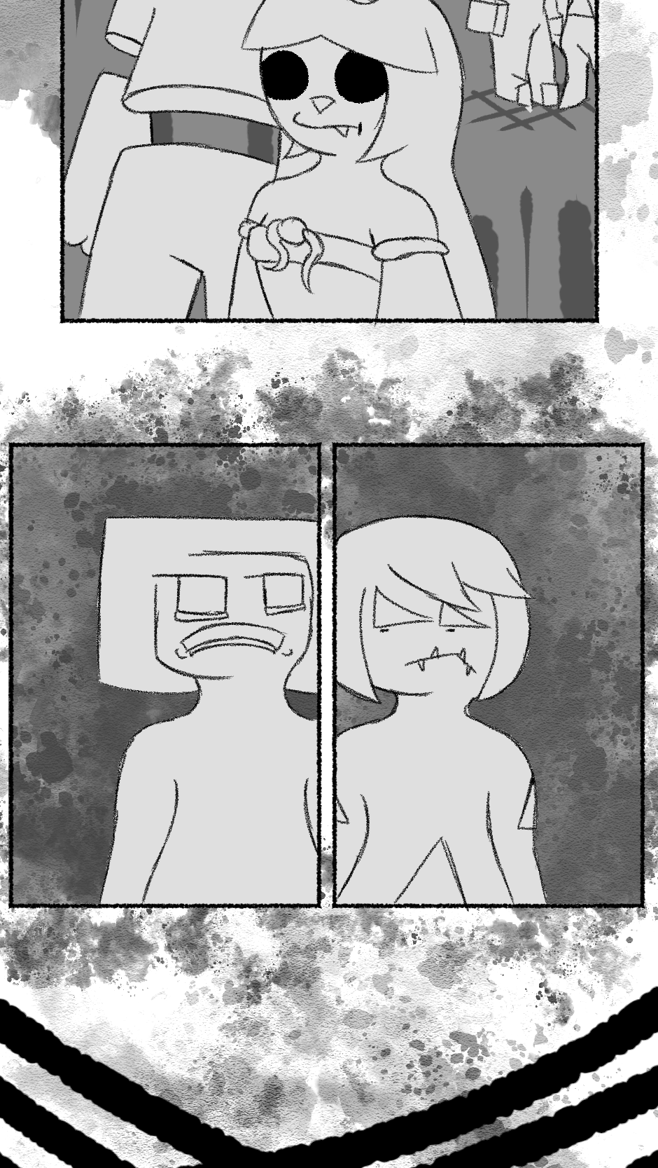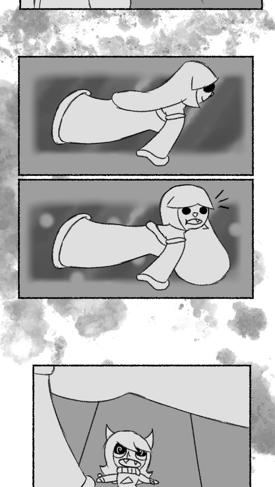 This one is...So messy. I didn't figure out anything about the story, I didn't even have a script. I just drew whatever based off loose thoughts in my head.