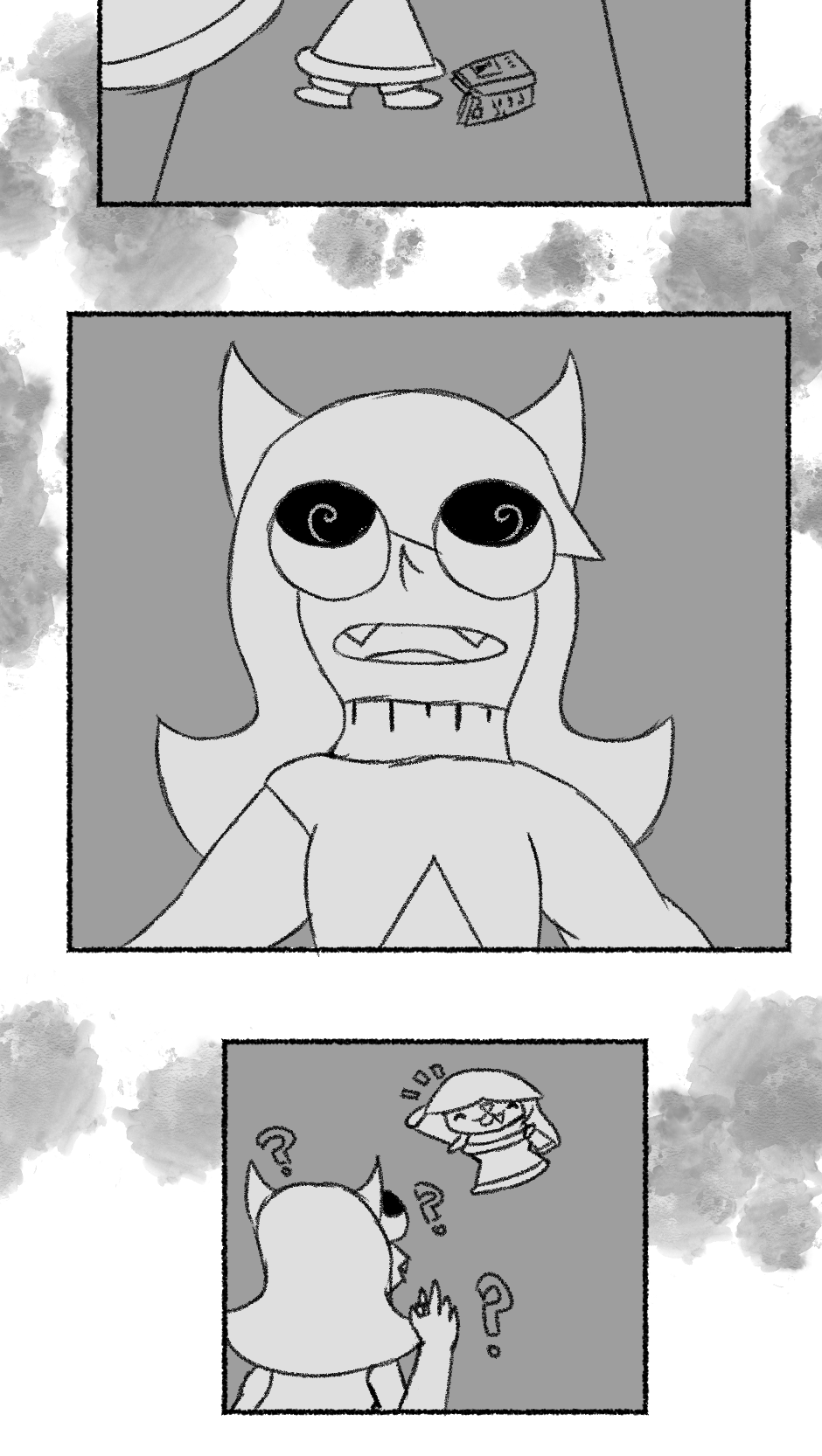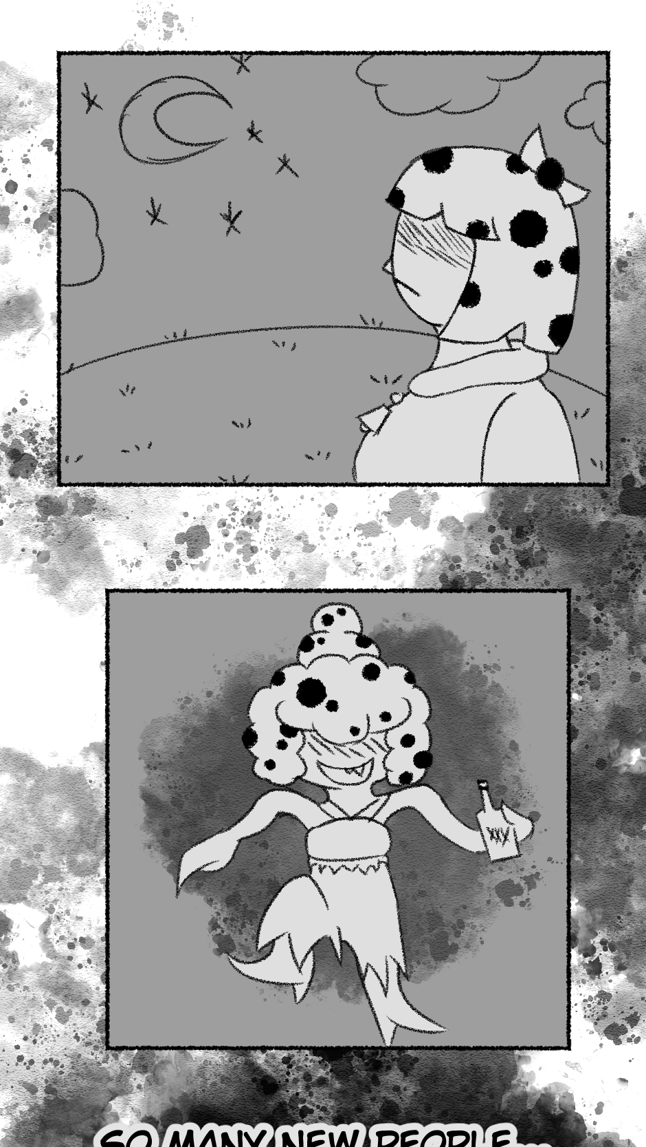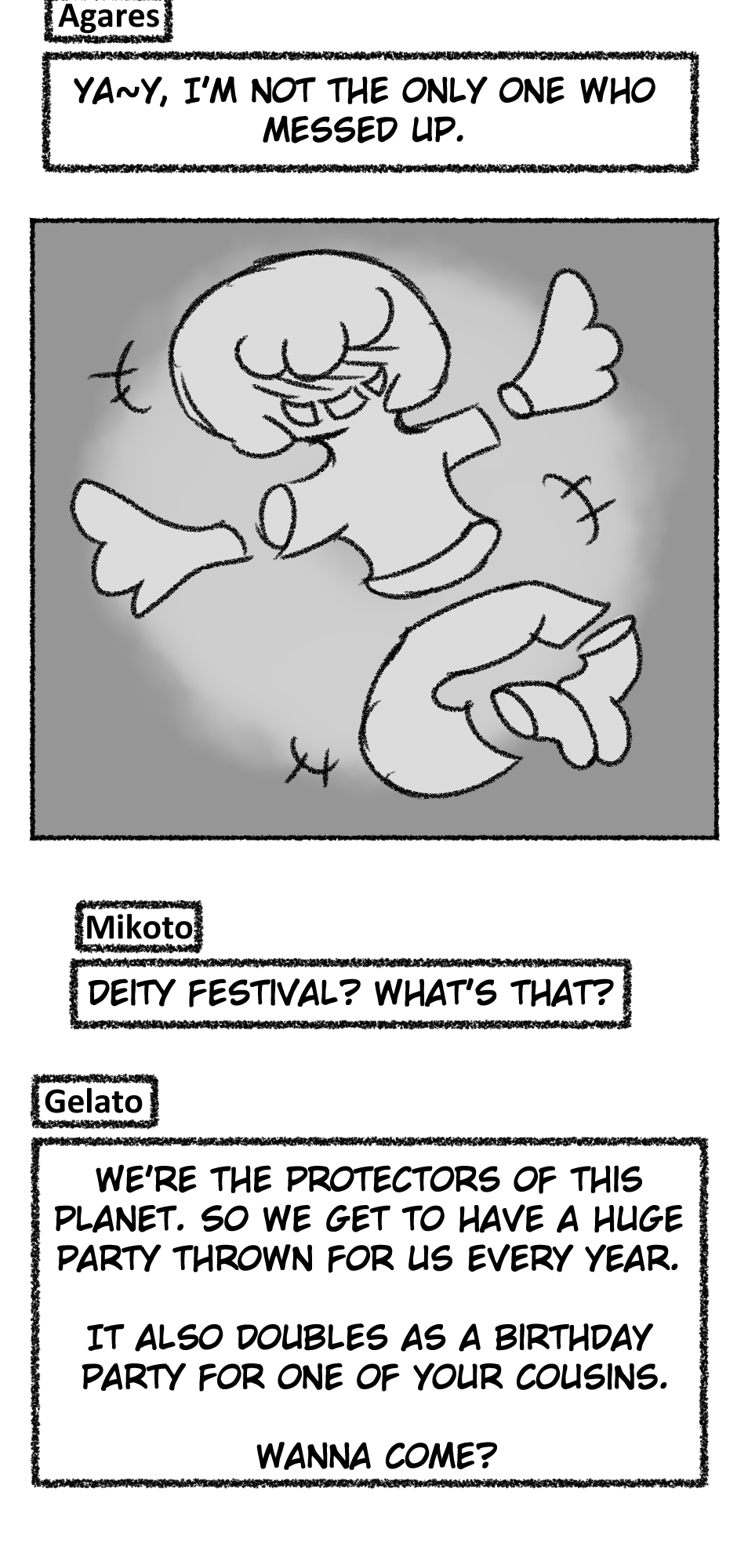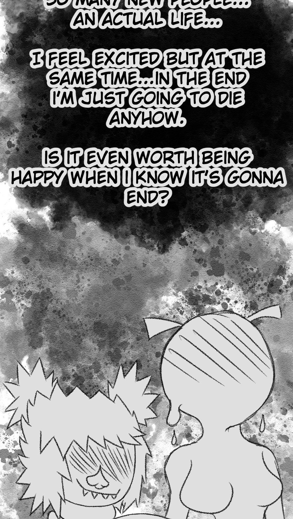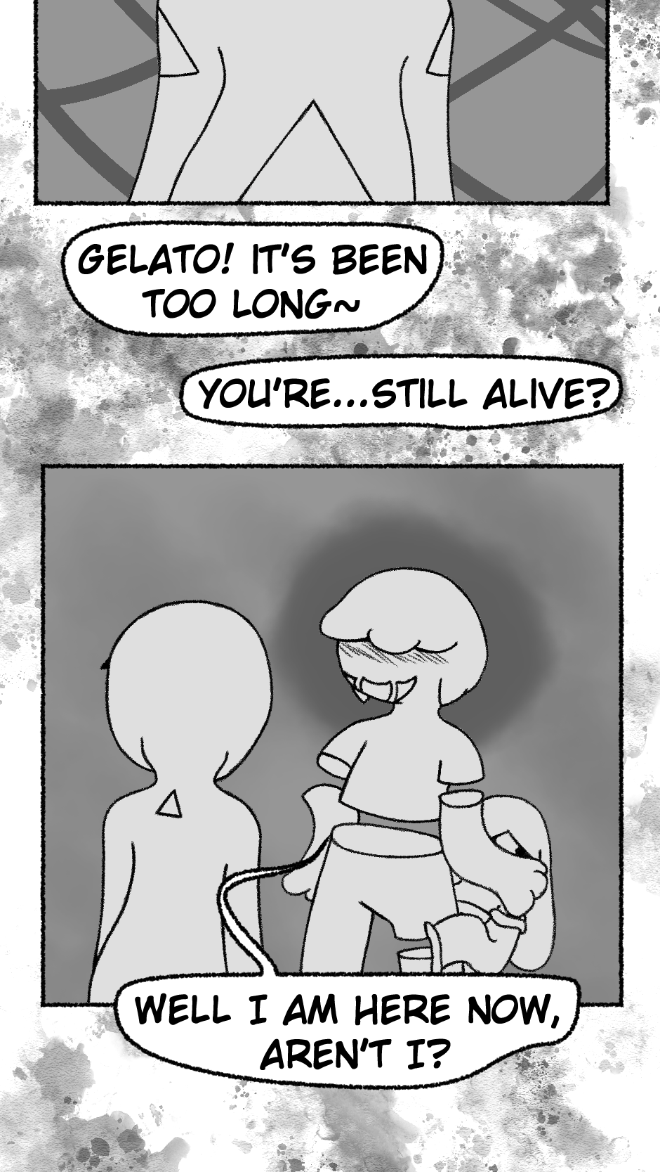 This one is...So messy. I didn't figure out anything about the story, I didn't even have a script. I just drew whatever based off loose thoughts in my head.