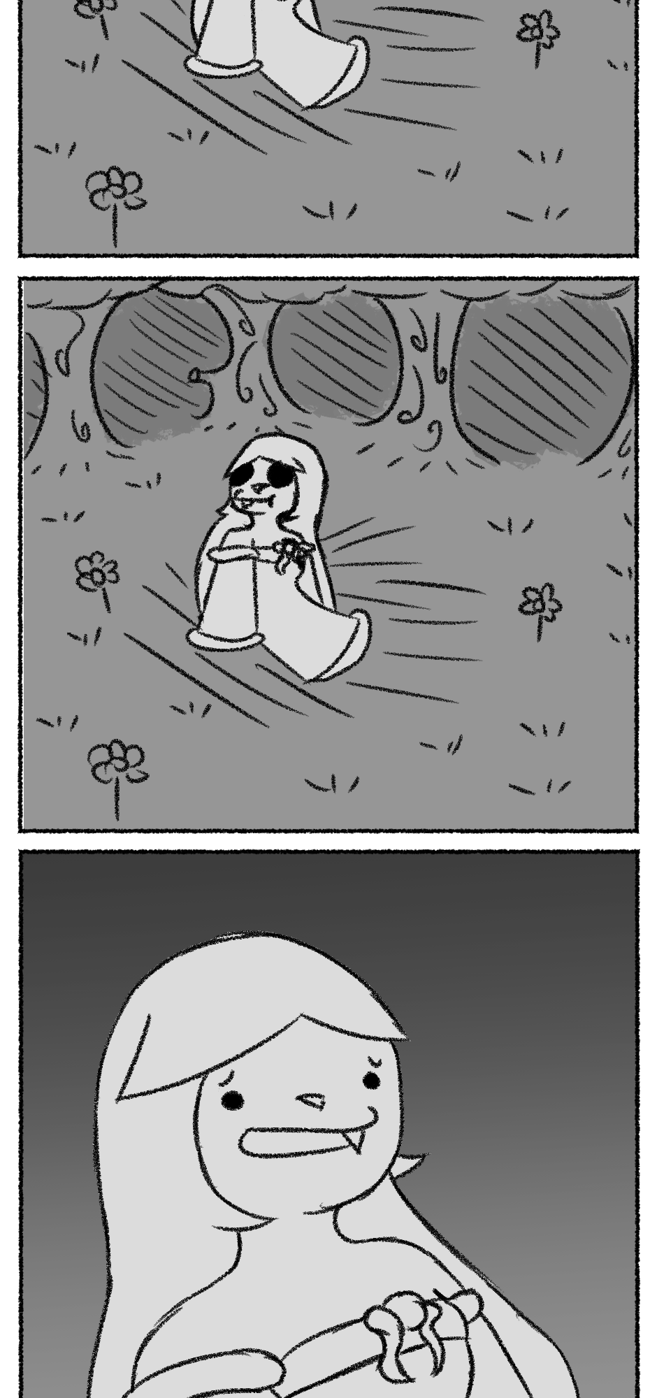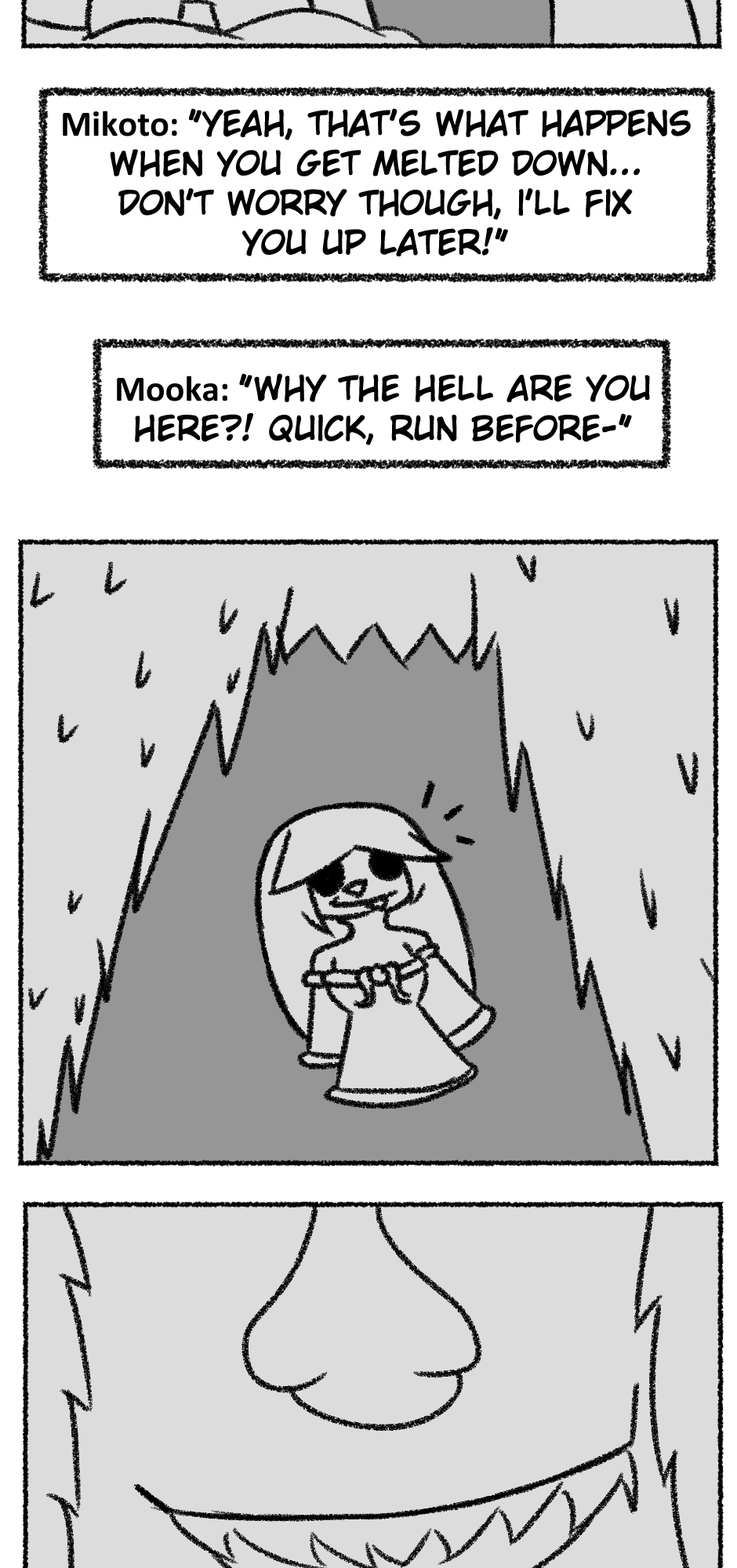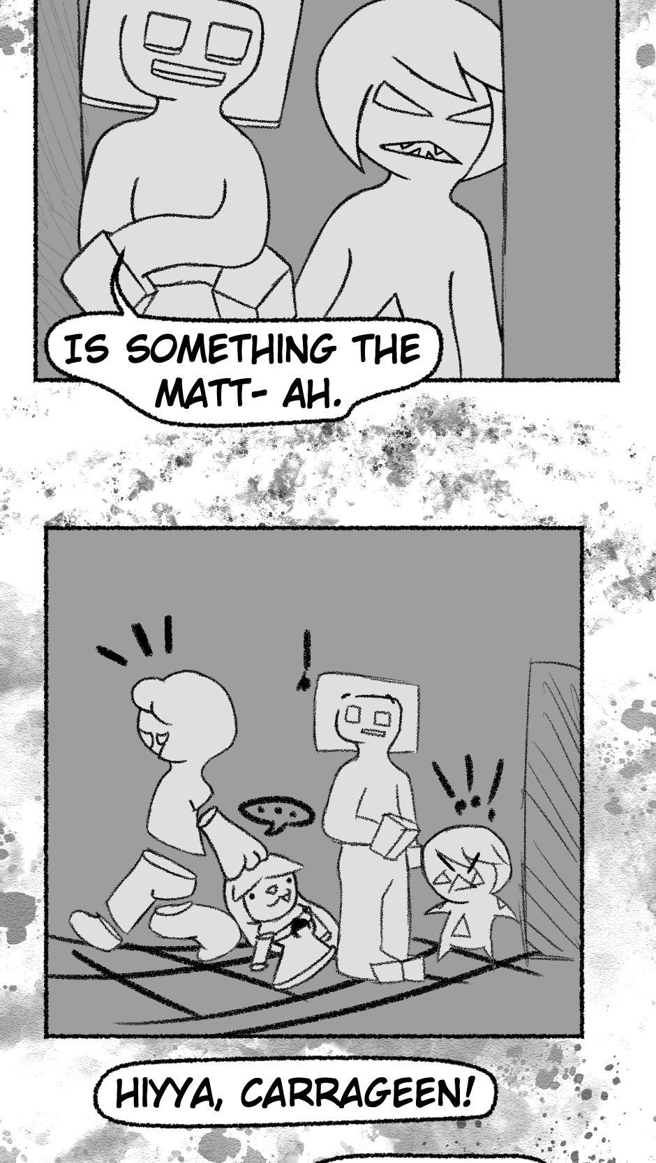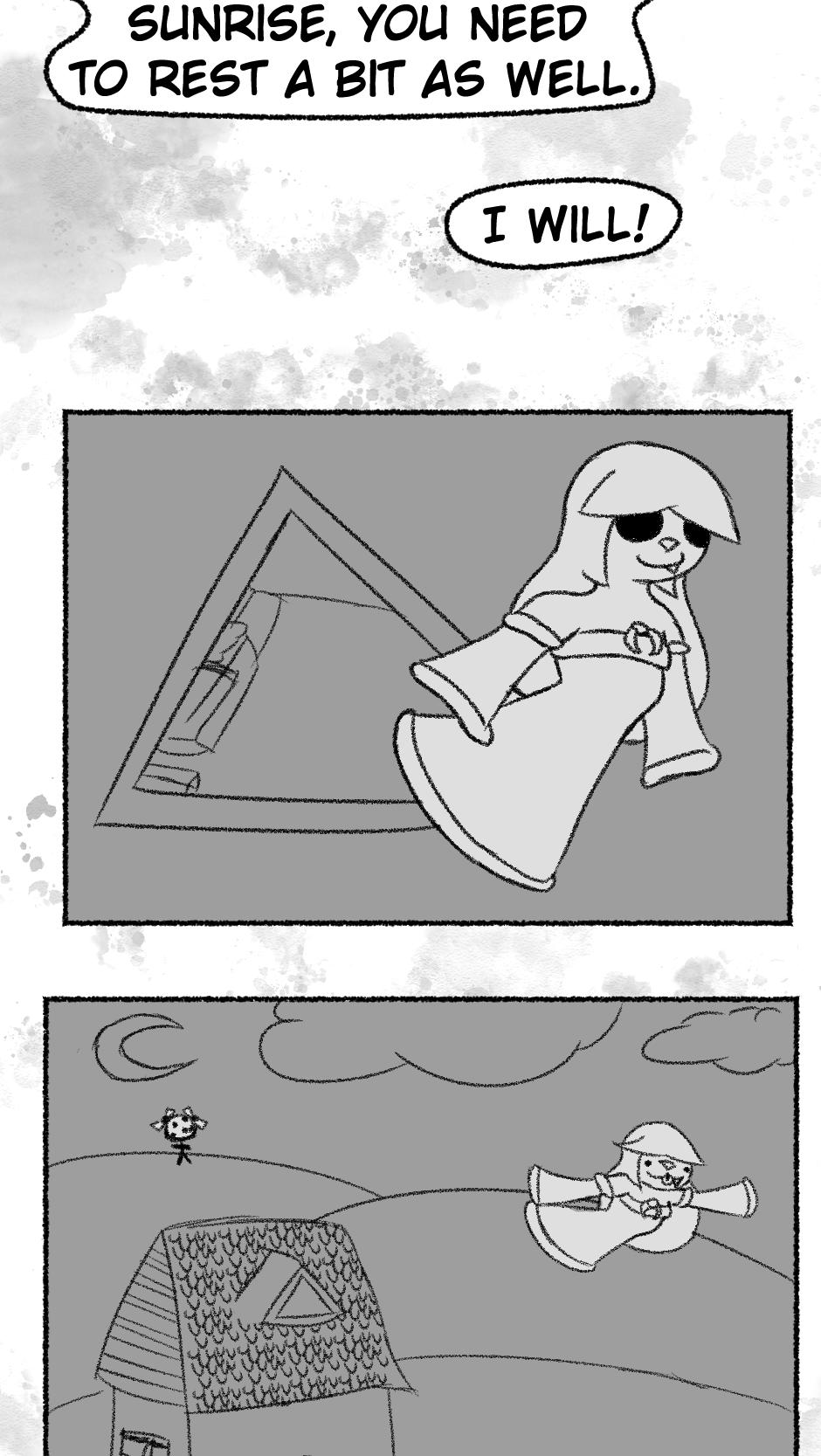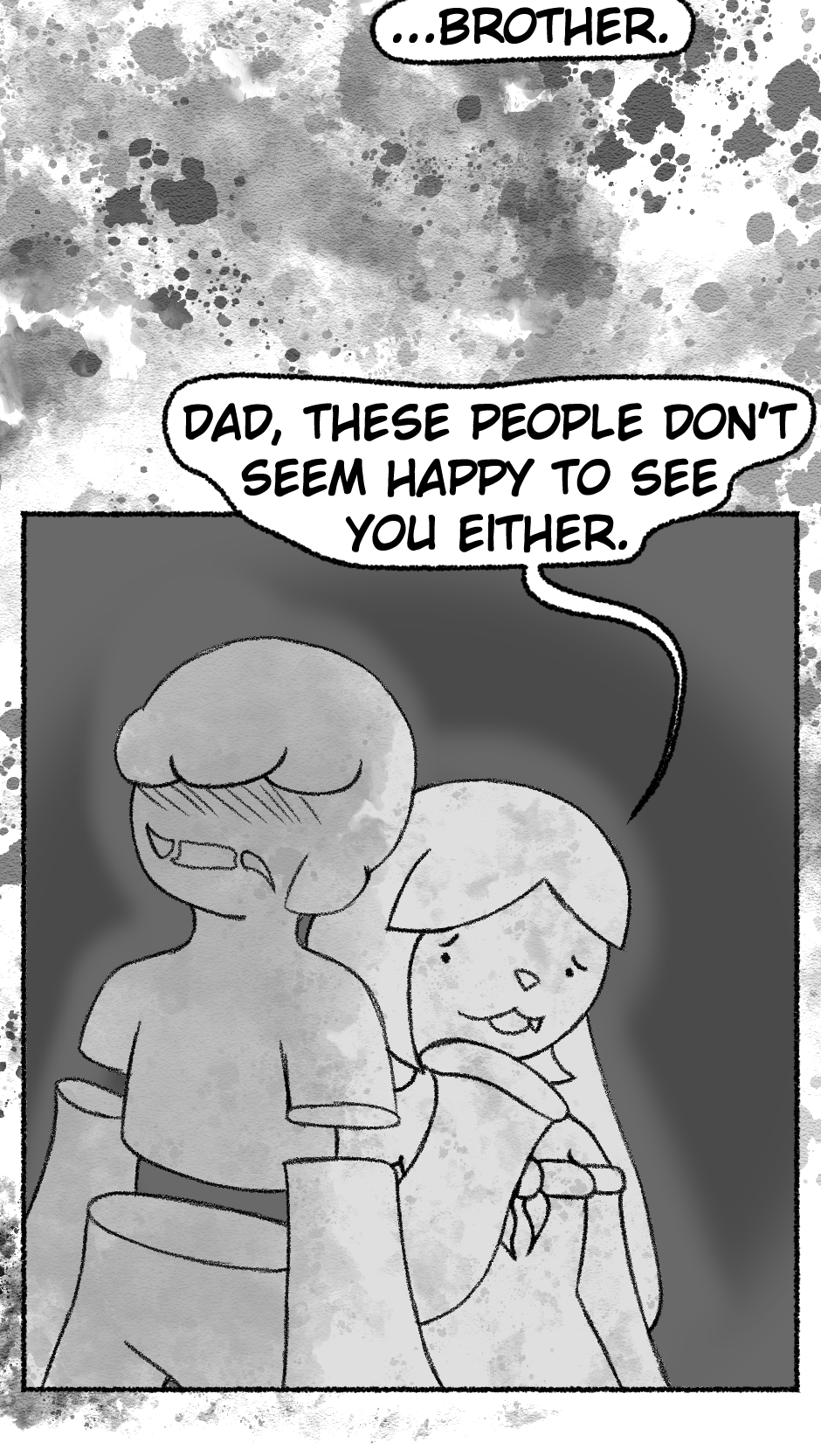 This one is...So messy. I didn't figure out anything about the story, I didn't even have a script. I just drew whatever based off loose thoughts in my head.