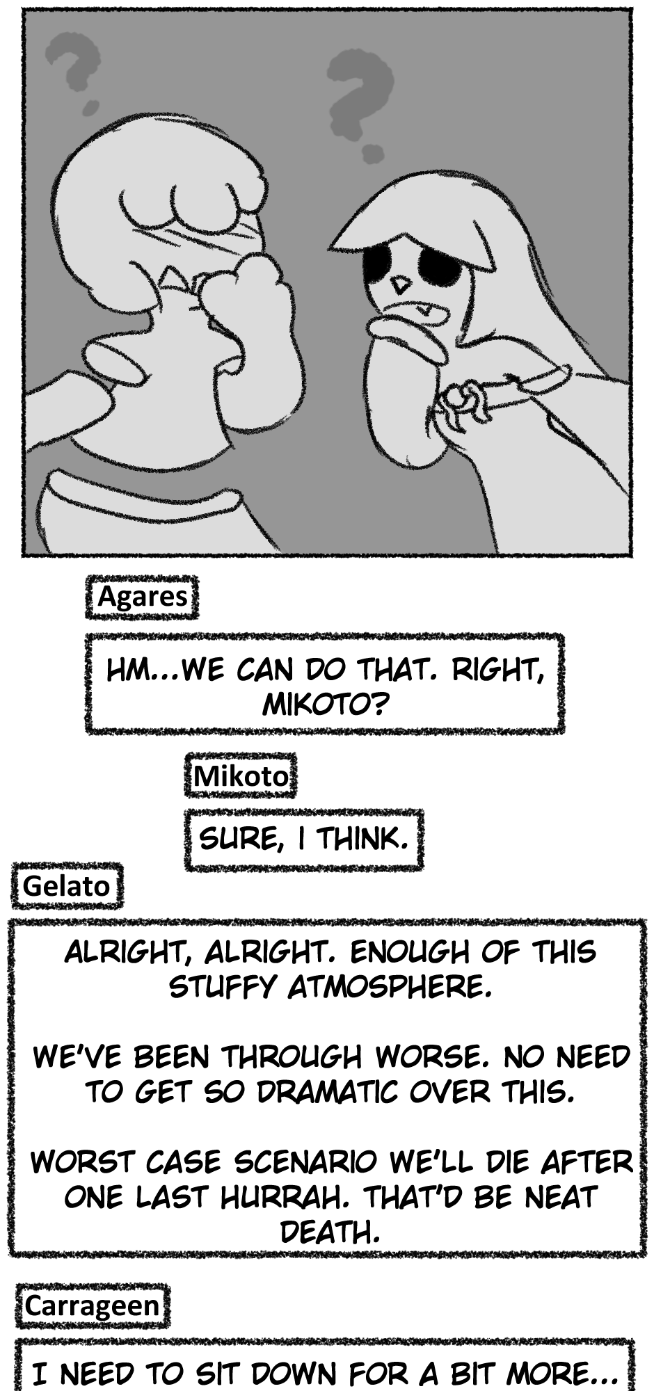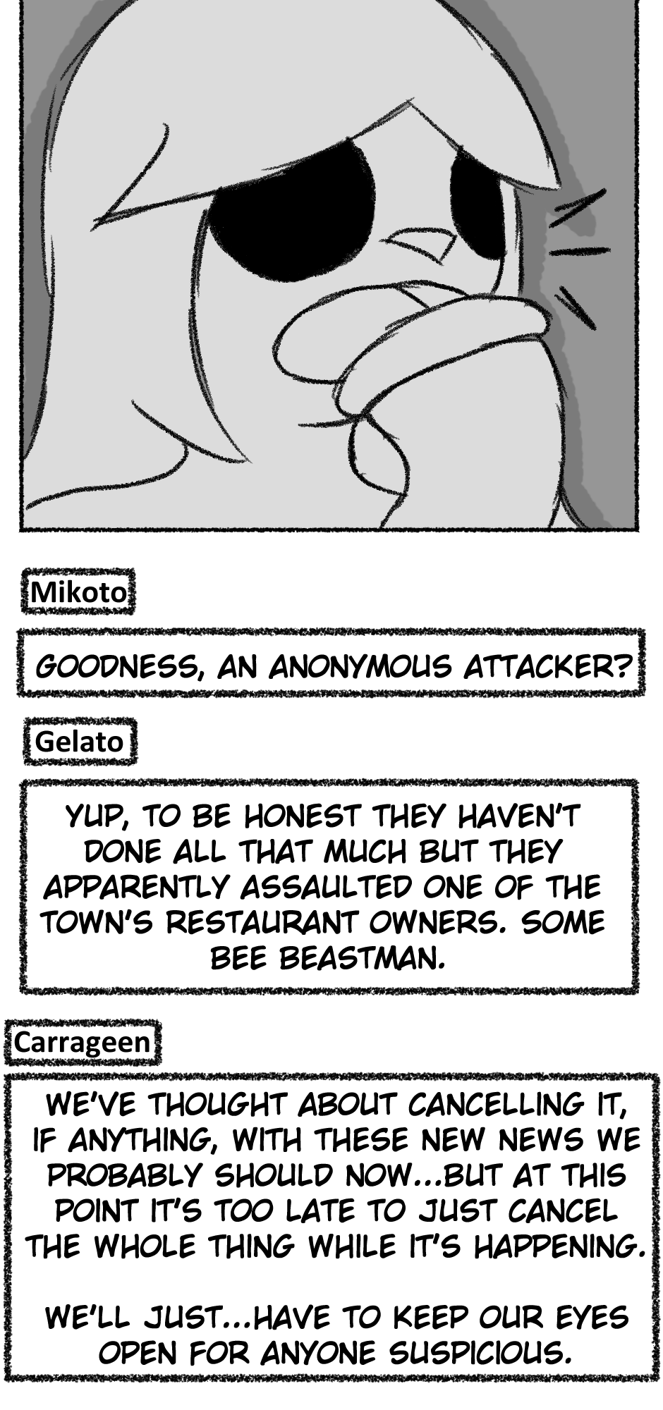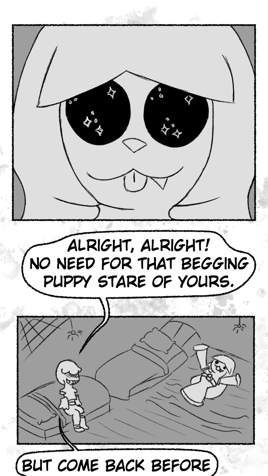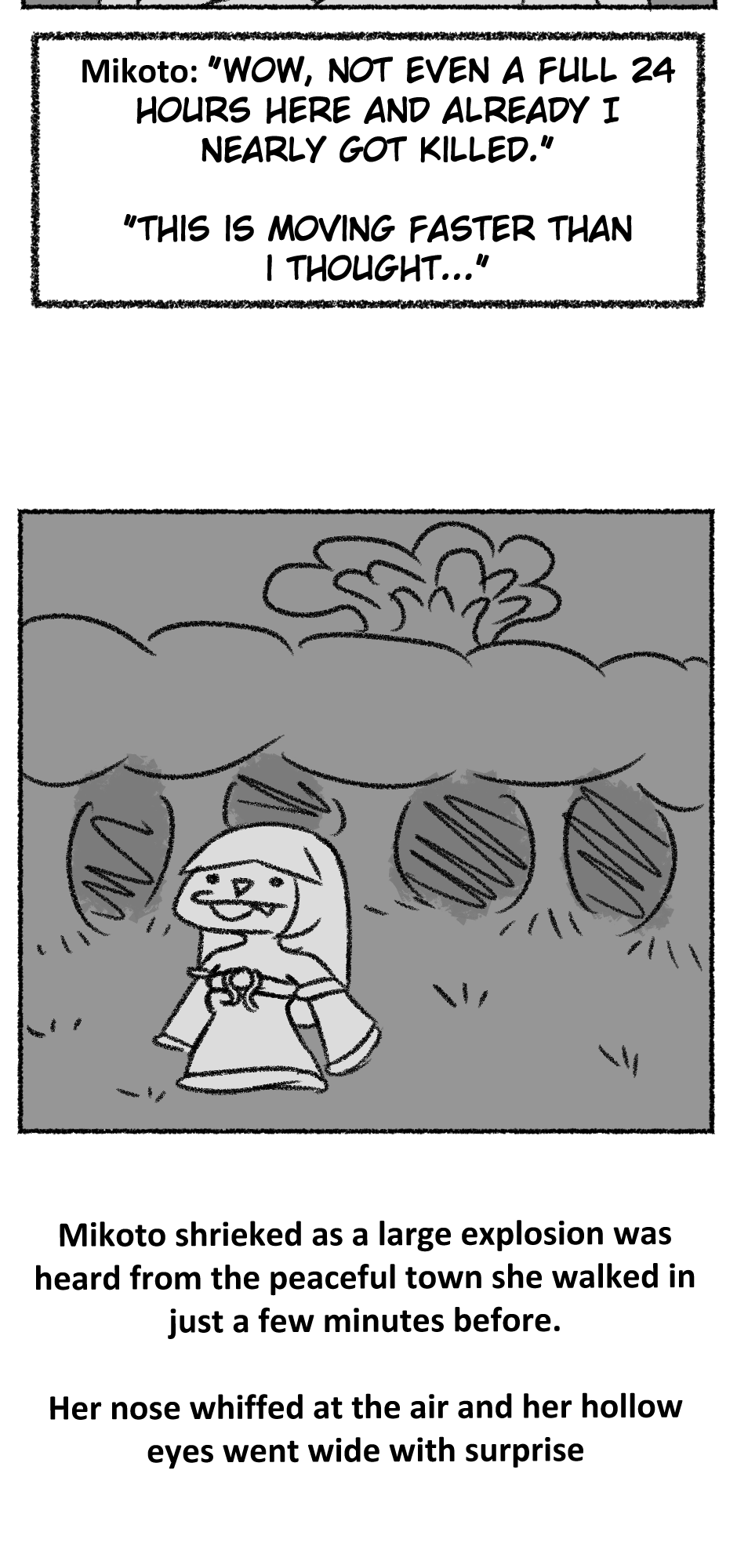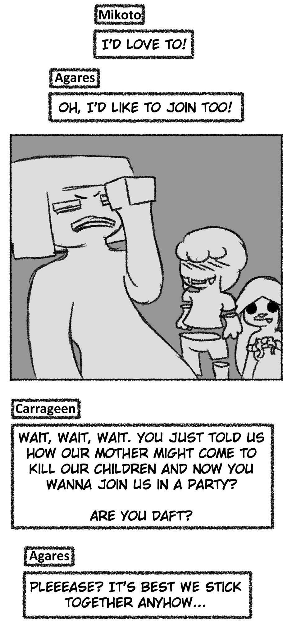 This one is...So messy. I didn't figure out anything about the story, I didn't even have a script. I just drew whatever based off loose thoughts in my head.