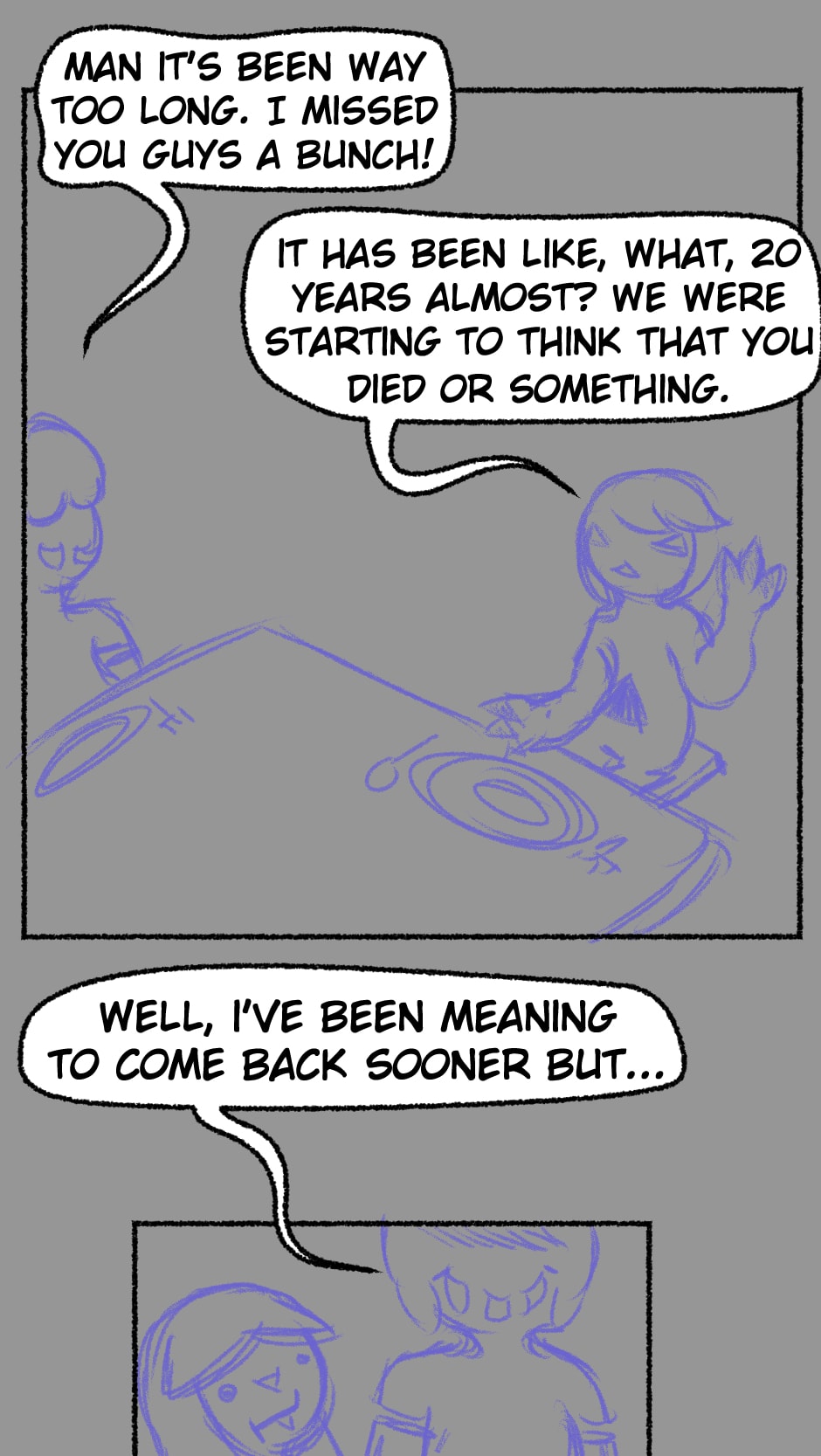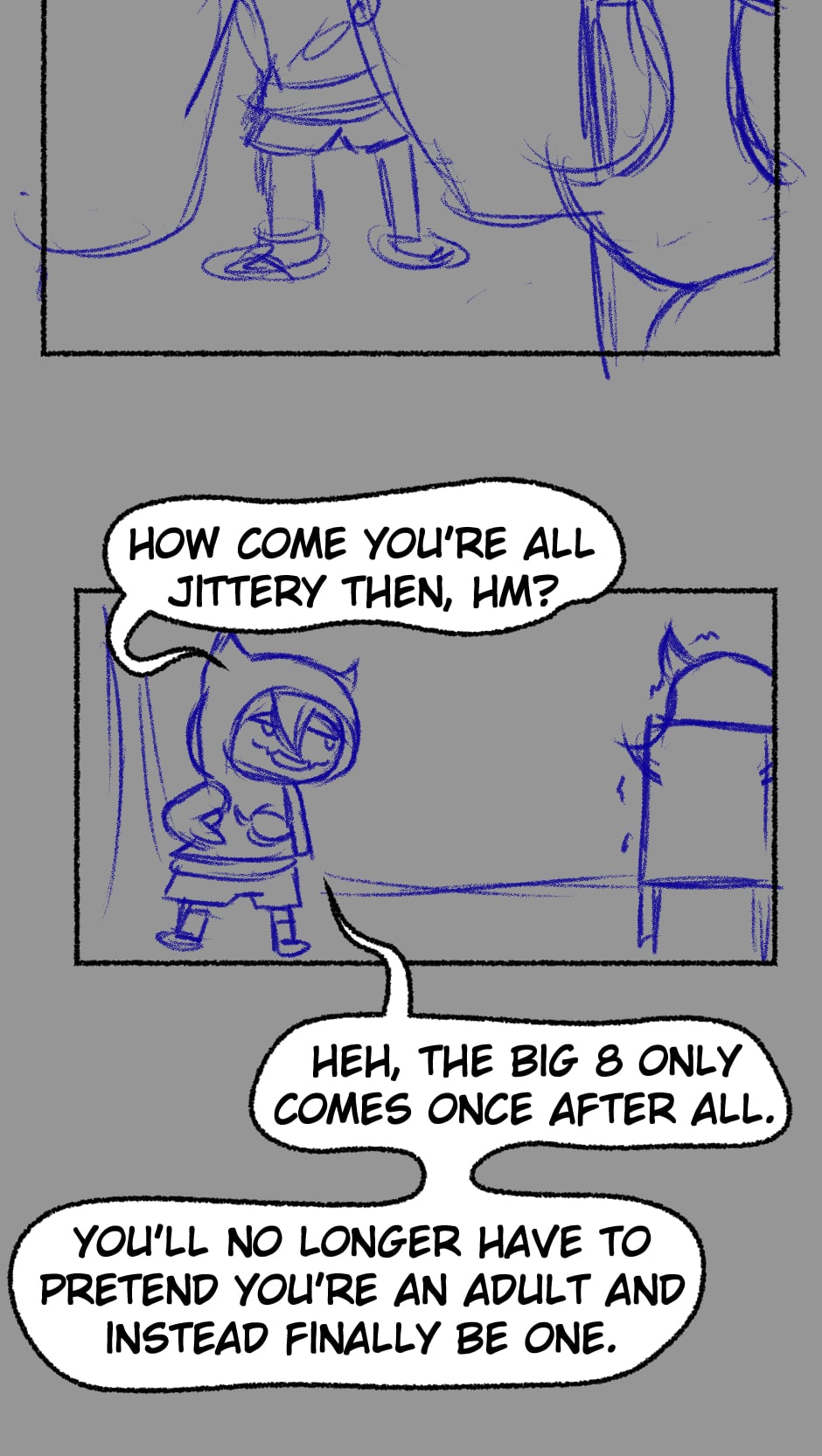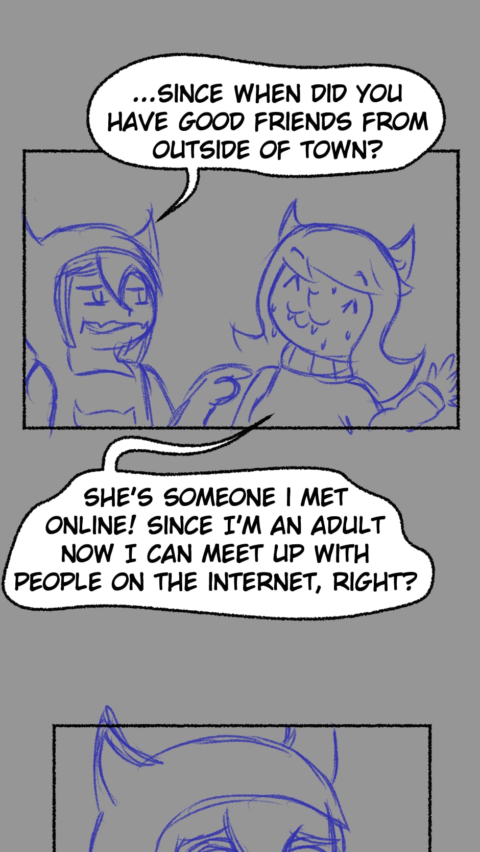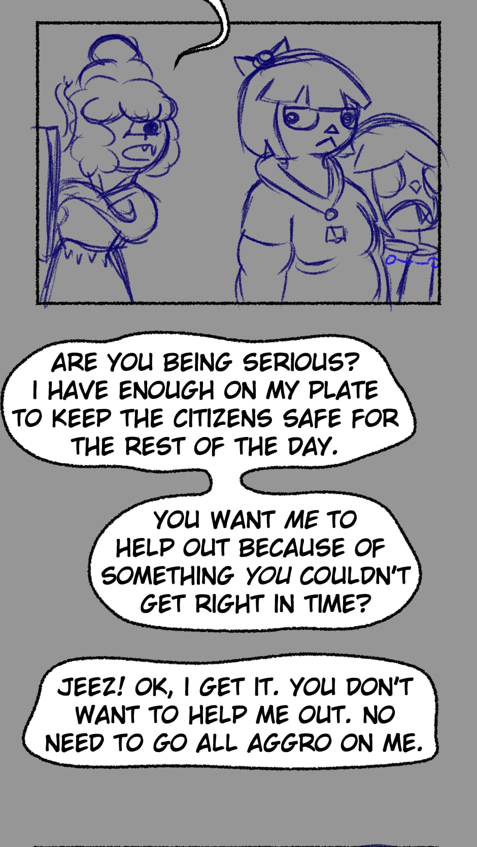 I NEVER published this one, this is the first time I'm posting these strips to the iternet. I don't actually remember whenever this one was made, but considering the designs...Maybe after the first novel attempt?