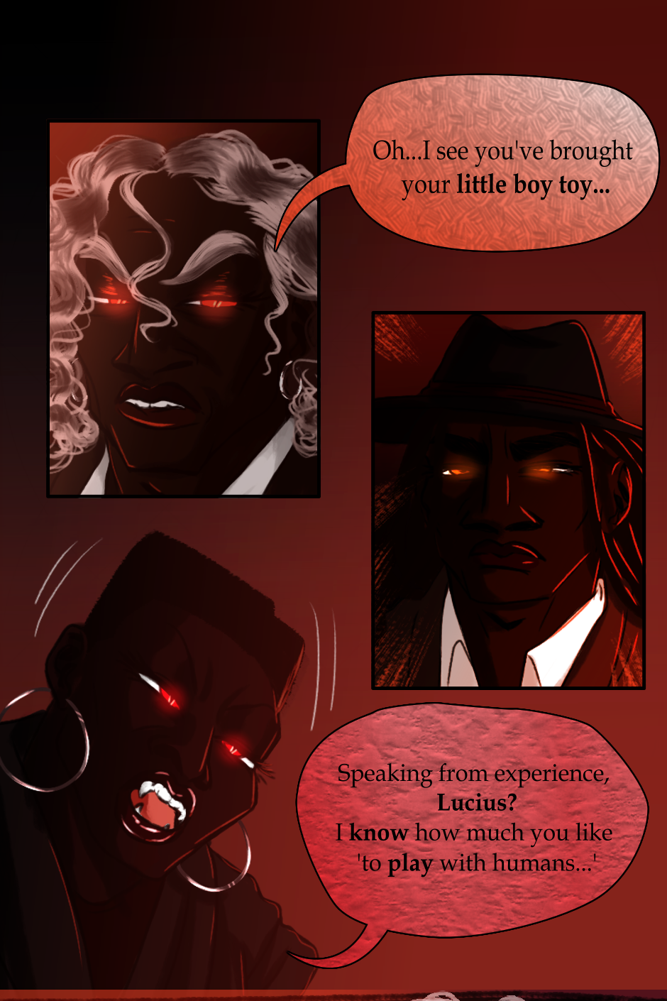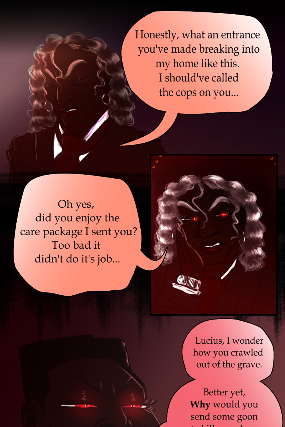 Lucius needs to be put back in the grave--that sinister creature. Rose is gorgeous--I just love her facial features and Alexander is so very handsome. Don't mean to give you the big head, but I Love your character designs!