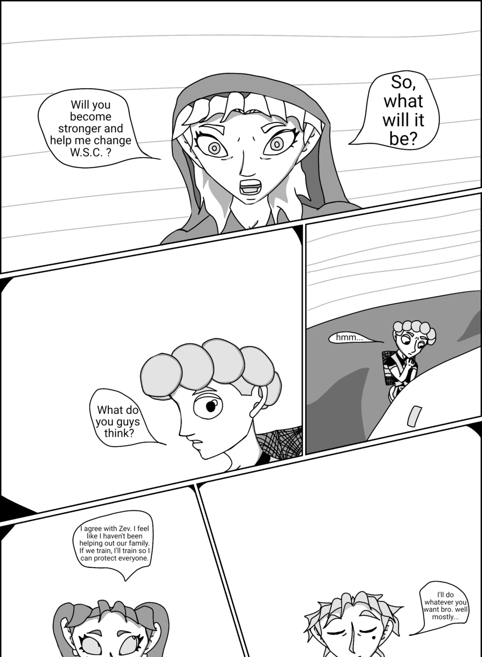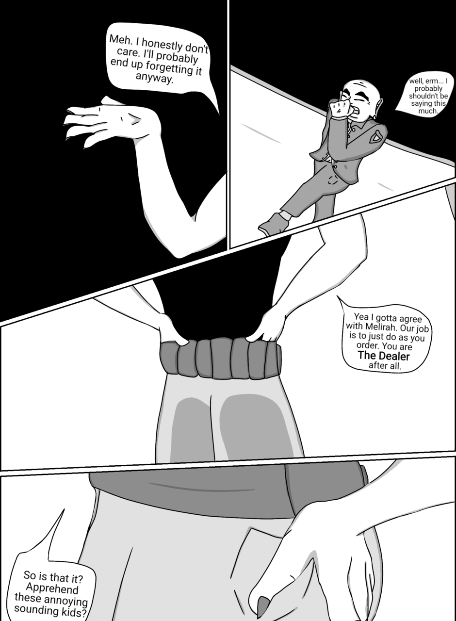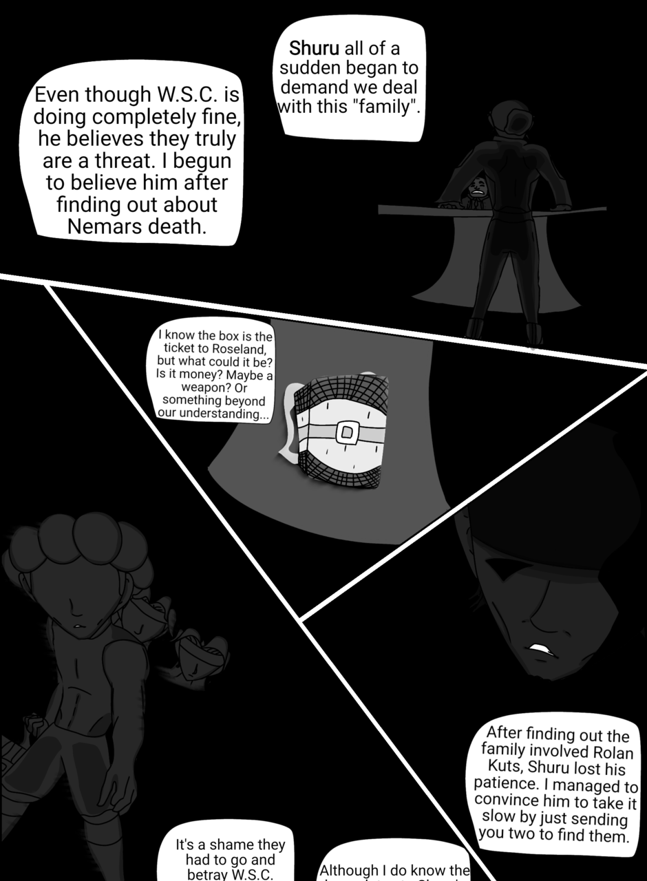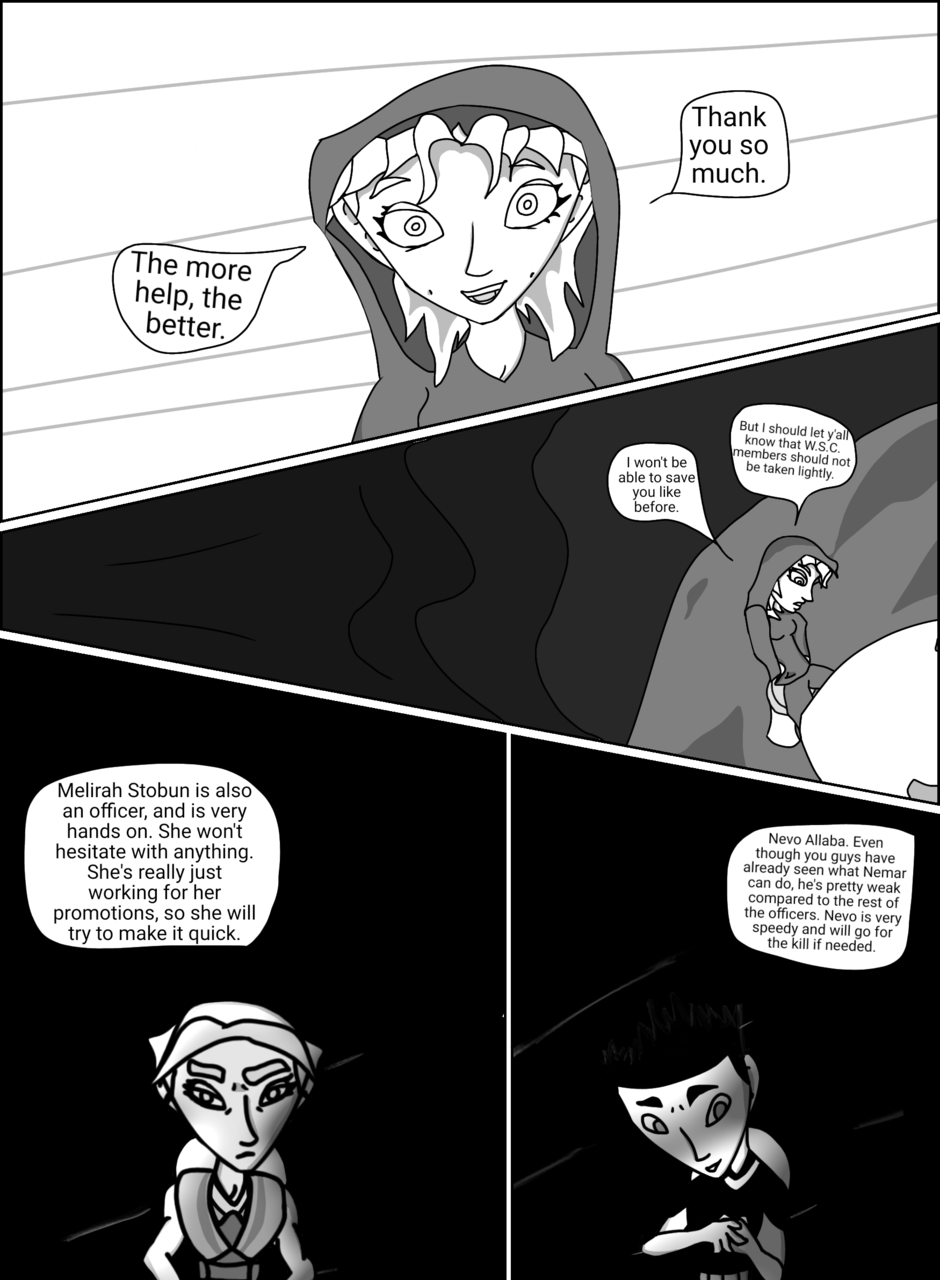 Creator's note: A few certain pages will include small amounts of color. otherwise, the rest will be black in white from now on. I hope it doesn't bother anyone too much. Although if you feel like coloring them, go ahead and email them to me! Thanks for reading.