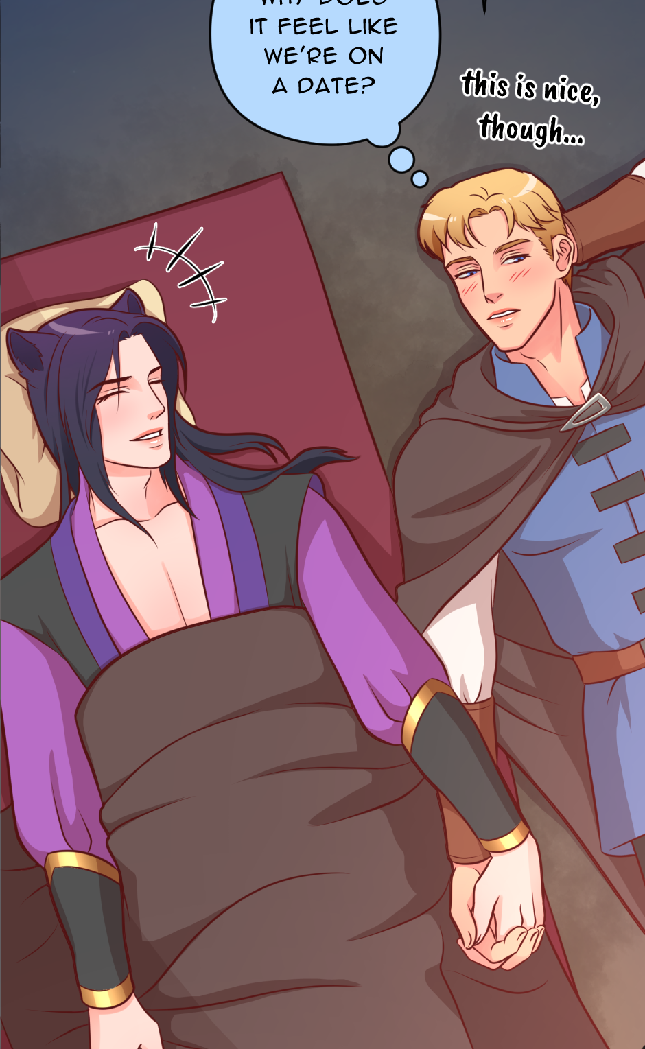 I originally planned to draw another artwork, but then couldn't resist adding some dialogues. <_<' This can be considered as a mini continuation of the previous episode.
