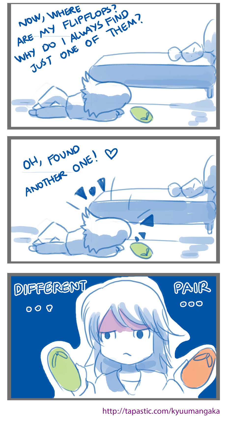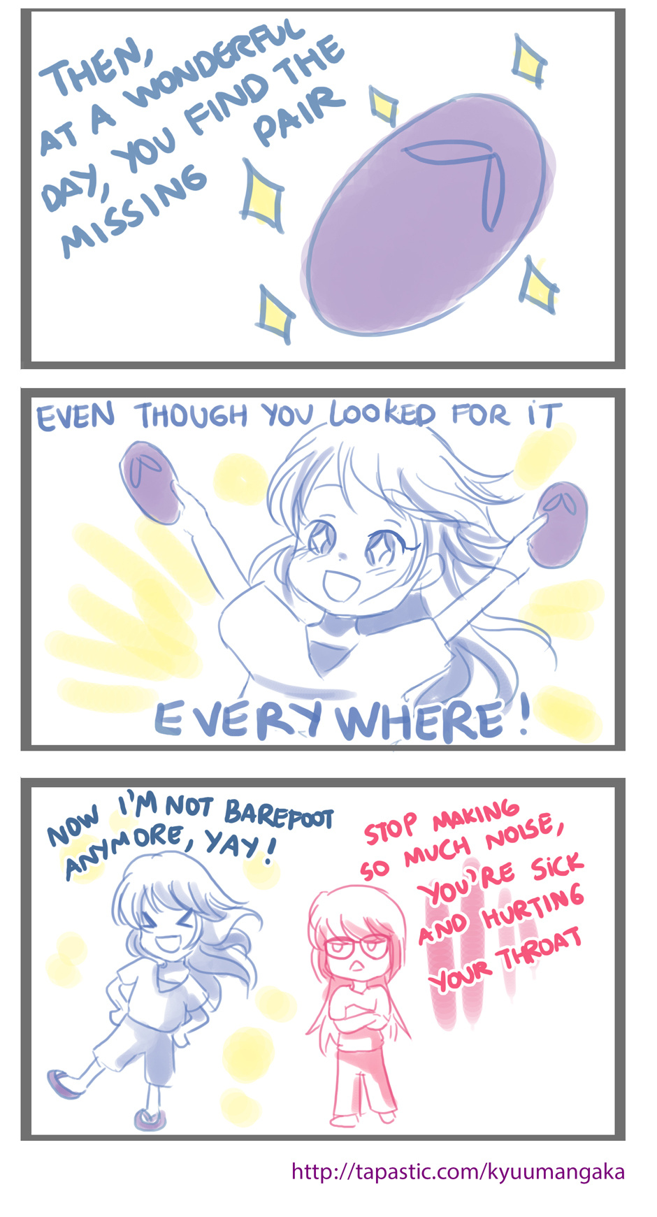 That's the reason most of times I walk barefoot. And there are also the cases that all of them disappear and I can't find a single one. I'm really sick lately, but I still have to work ;__;