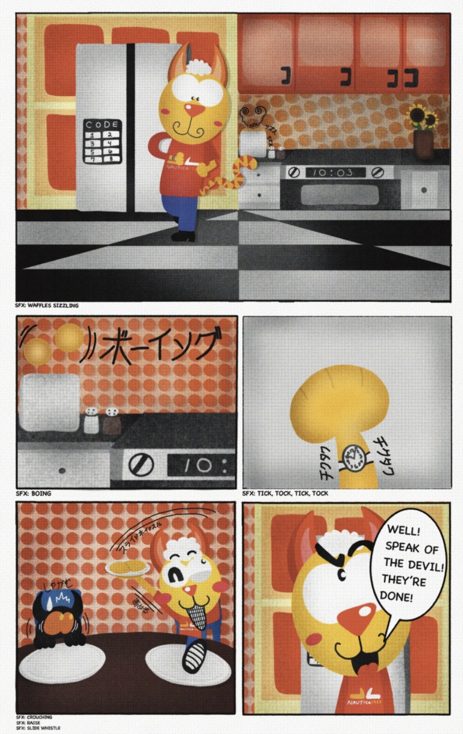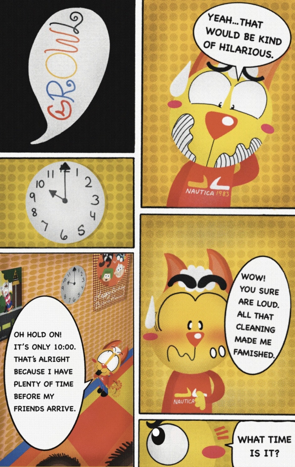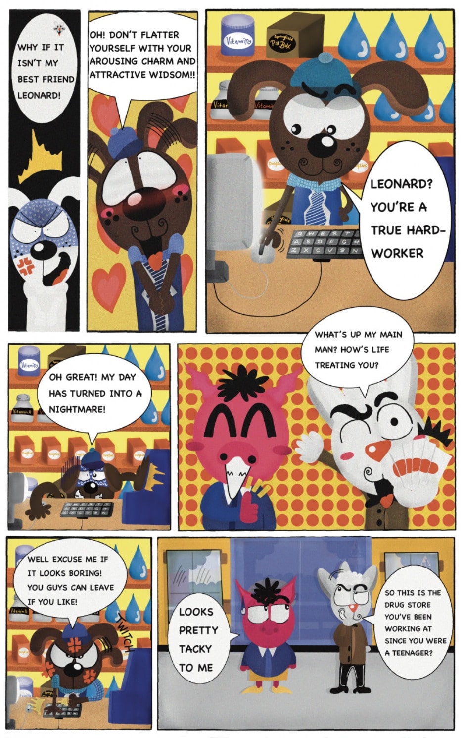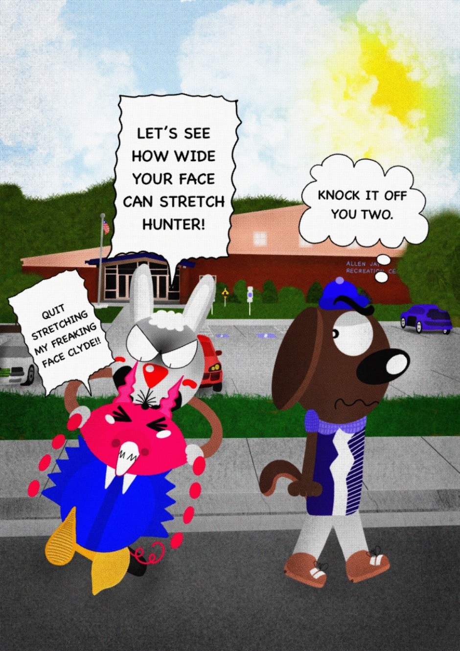 The Cat In Fear, also known as Kyōfu No Neko (恐怖の猫) in Japanese, is a American-Japanese influenced children’s slapstick horror comedy (horredy) manga-inspired comic cartoon aimed at older children (10-12 years of age) that revolves around a group of adults (24-year-old kind-hearted, caring yet cowardly American yellow cat Eddie, 35-year-old grumpy, sarcastic, no-nonsense with a heart of gold Swahili-American brown dog Leonard, 25-year-old brash, arrogant, impulsive French-American rabbit Clyde & 18-year-old studious and intelligent Canadian pig Hunter) who, along with their demon friend from Hell named Damien, reside in the city of High Point, North Carolina where they have to cope with their everyday fears on a regular basis whether it’s mundane or supernatural situations.