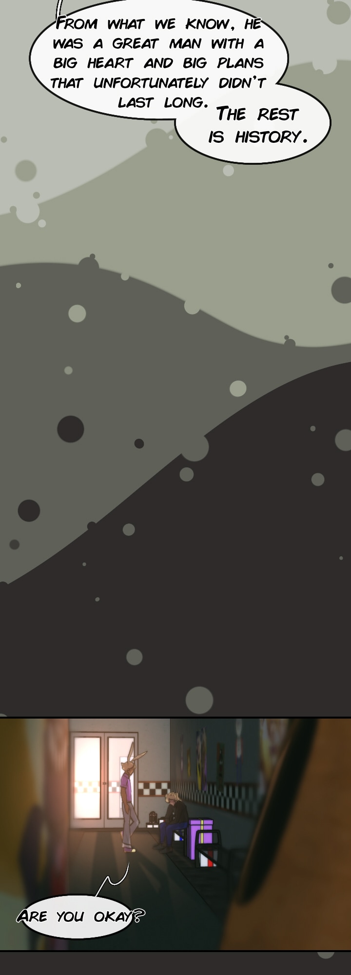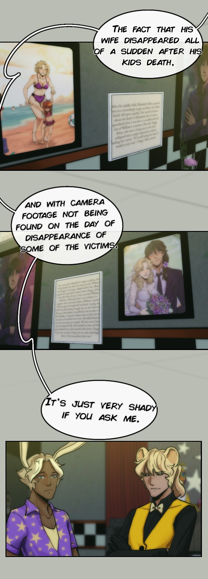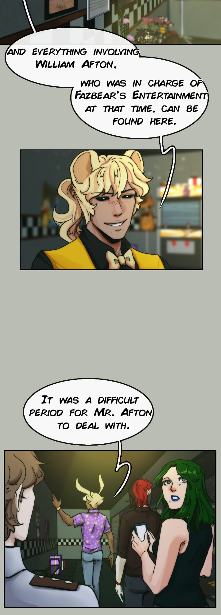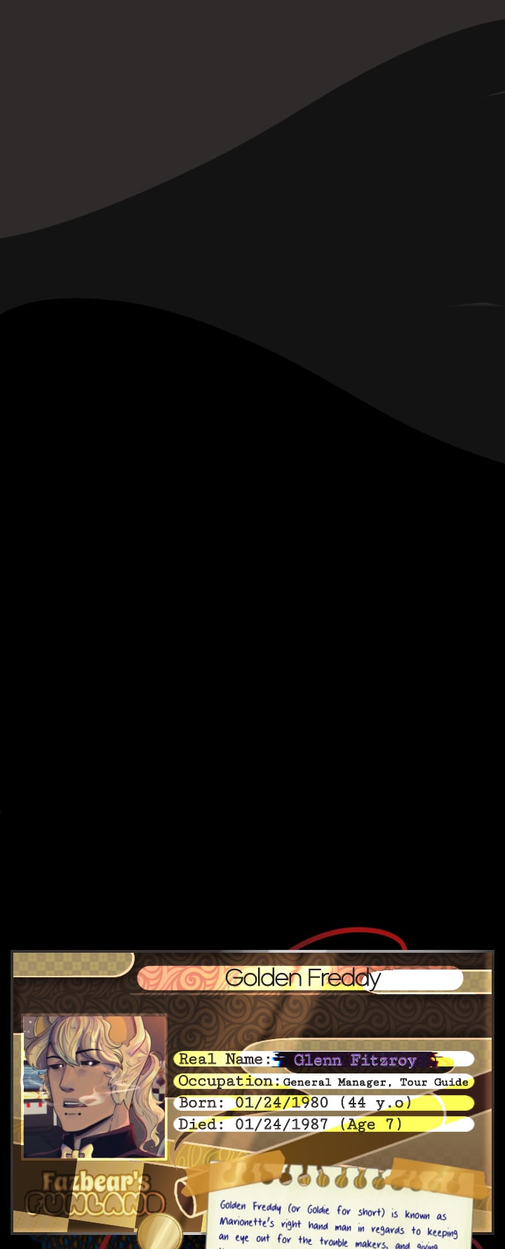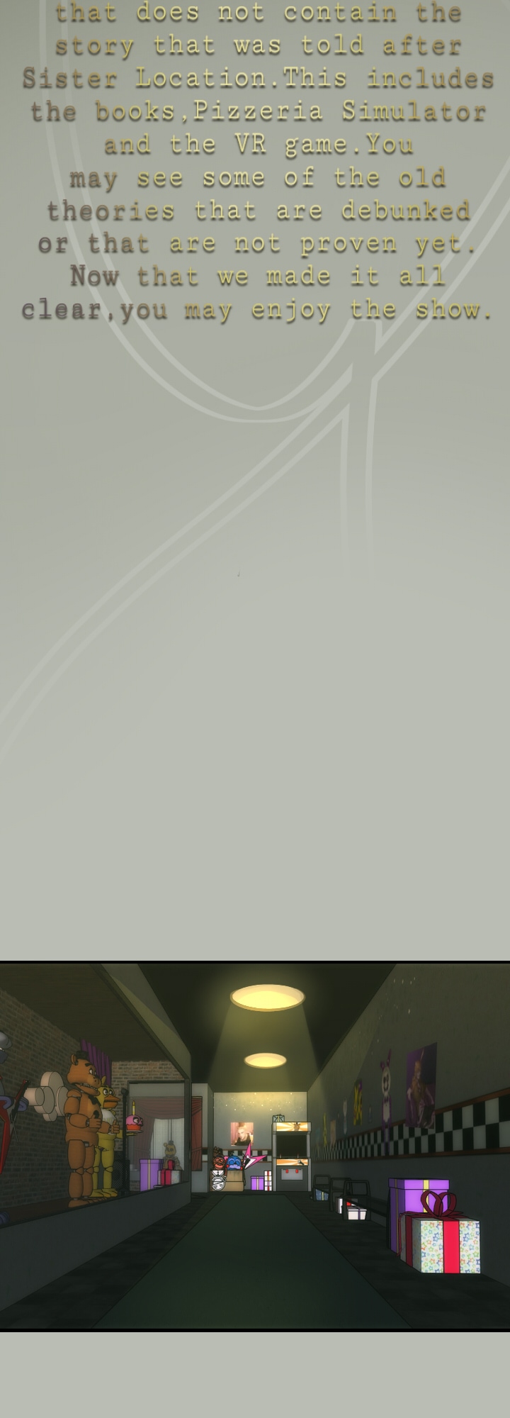 After struggling with all the rumors and losing their customers, Fazbear's Entertainment shut down all their restaurants in the country, until Mike Schmidt took over the company in 2024. Marionette and the other animatronics agreed to be a part of his business in exchange of him, helping them out with finding William Afton so they can finally be free.