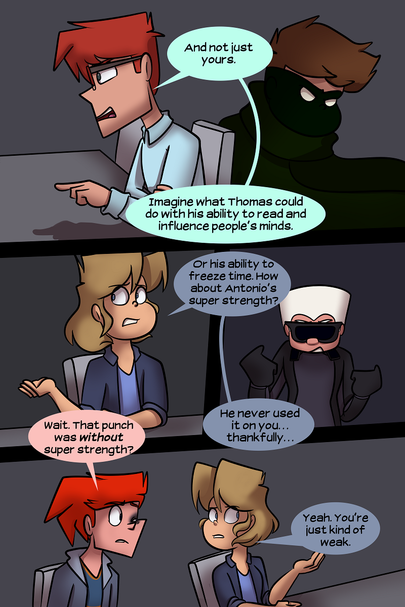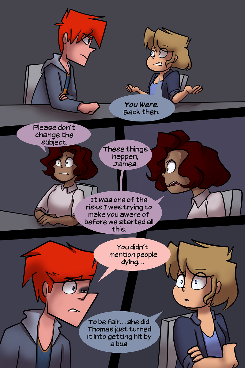 All chapters are complete, so I'm just collecting 60 pages on Webtoon / Comicfury before posting them on Tapas. I can't be bothered to upload a page every day & then have to delete them to add them into an episode on two different plaforms.