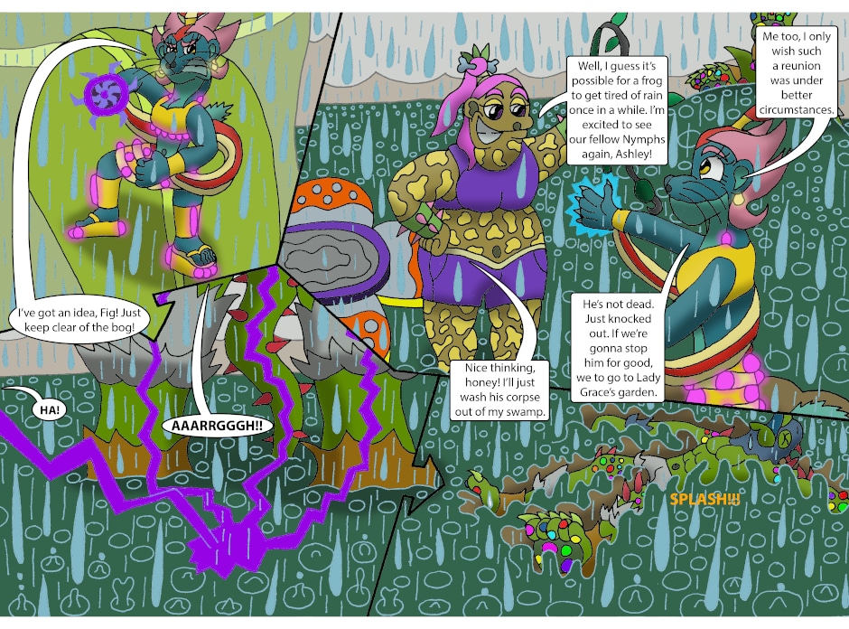 JOIN EIGHT MISFIT HEROES AS THEY EMBARK ON AN ADVENTURE TO SAVE A WORLD OF NATURE FROM DANGEROUS CORRUPTION! In a time long after humanity has vanished, the planet Earth has been divided into several worlds, including Nereid, a beautiful world of nature and water. That beauty is now being threatened by the Chemicals, liquid-based monsters intent on corrupting the Five Nymphs, nature demigods who maintain the balance of life and peace throughout Nereid and the kind Goddess of Nature, Persephone has chosen eight individuals to save this world. Cobalt, a timid dingo, Jade, a motherly Red Kangaroo, Tangelo, a rebellious Fennec Fox, Bob, an intellectual Toucan, Sala, an impulsive Velociraptor, Dozer, a compassionate Rhinoceros, Willow, a vigilant White-Tail Spider and Carver, a flexible Moth, all answer the goddess' call. Their quest: find the Five Nymphs, save the demigoddesses from the evil Chemicals and put a stop to the vile plan of the Chemicals' master, the mysterious Avarice before it dooms all of Nereid.