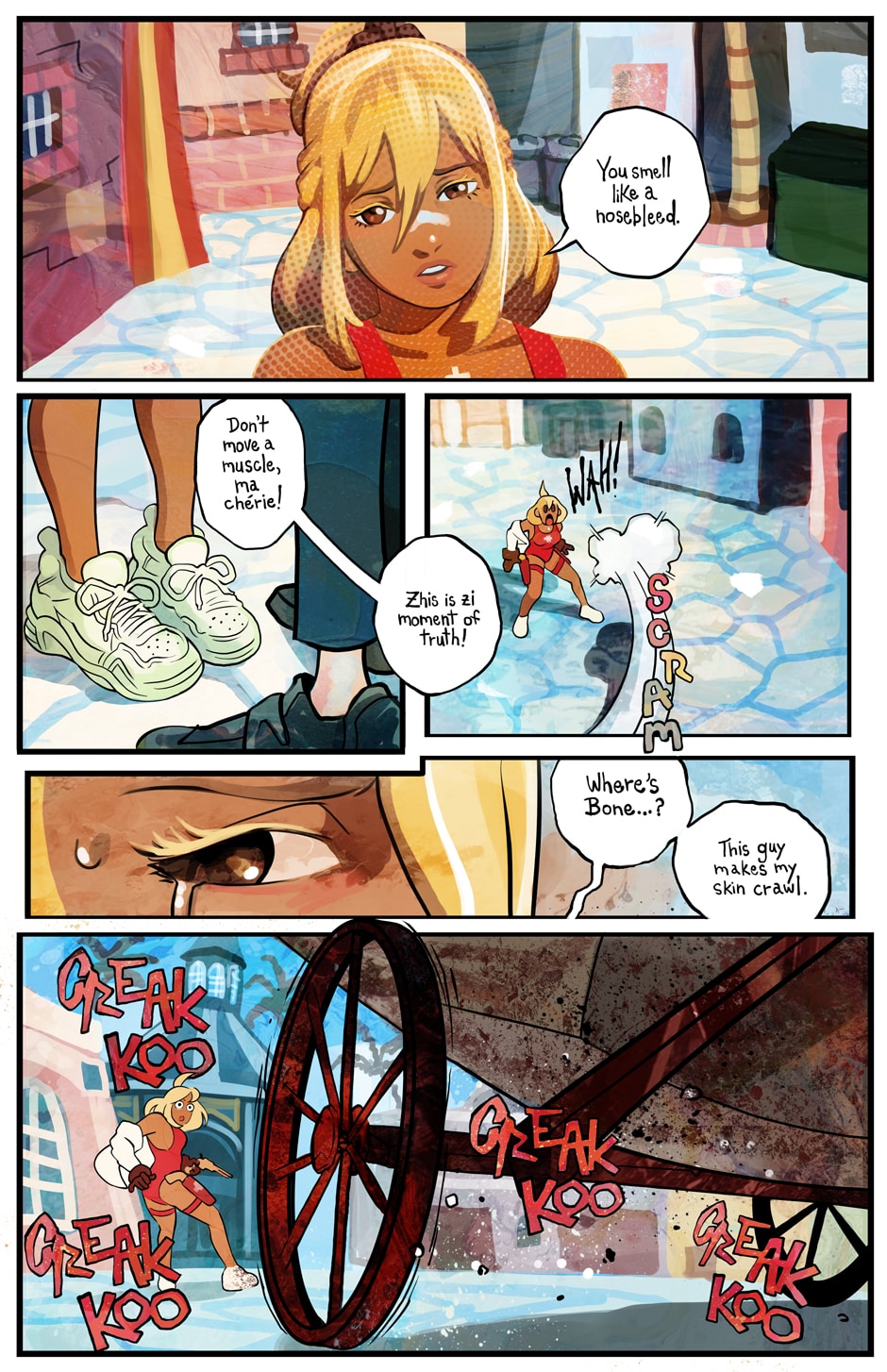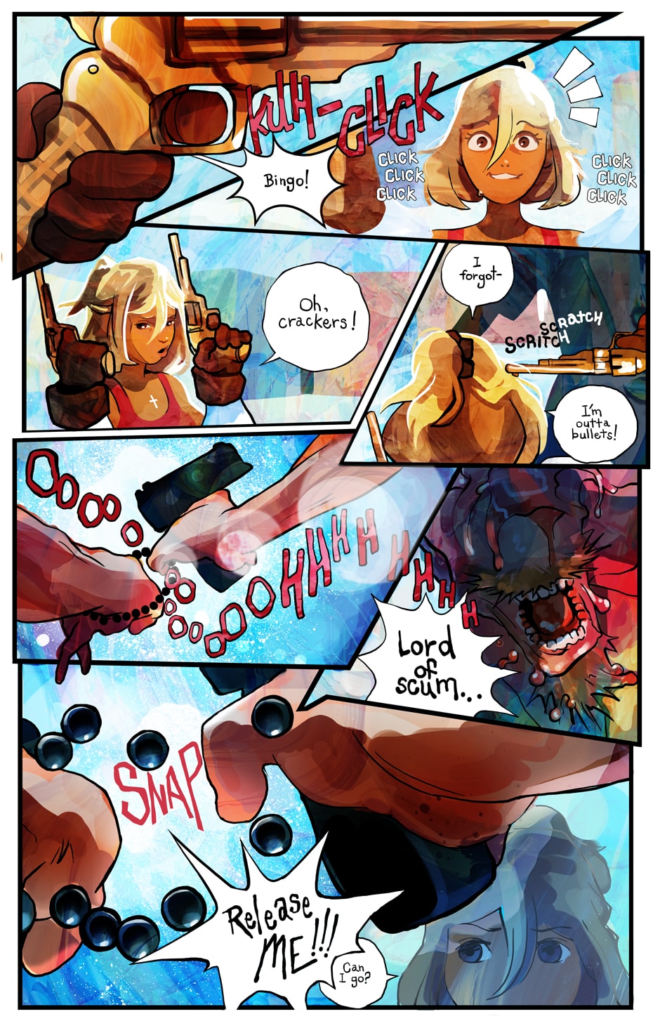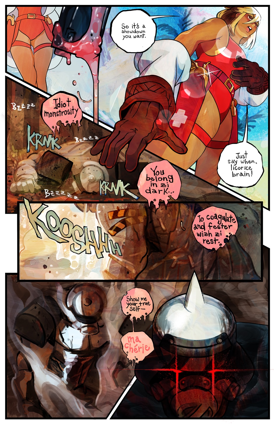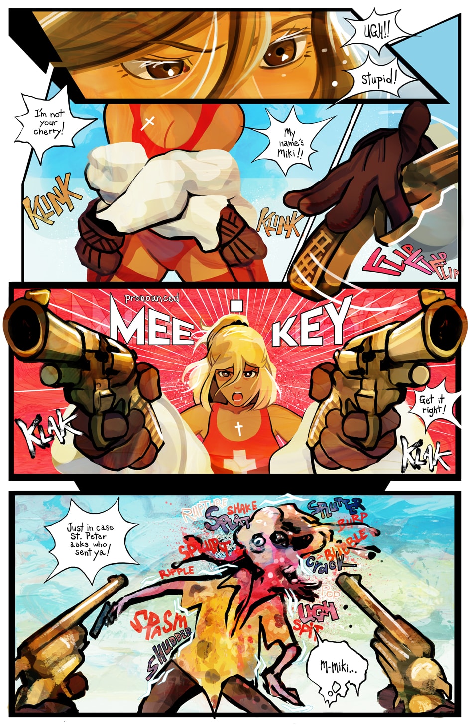 A ditzy lifeguard and an armored killing machine take on swarms of undead in this colorful twist on a zombie beachpocalypse. Can Bone the super soldier escort his doe-eyed, haphazard partner to safety in one piece, or will opposing forces, both living and dead, try to take everything from them?