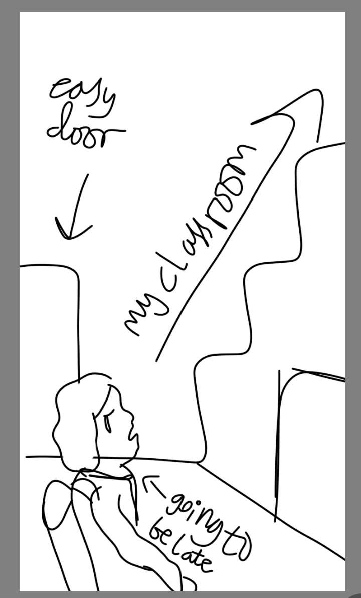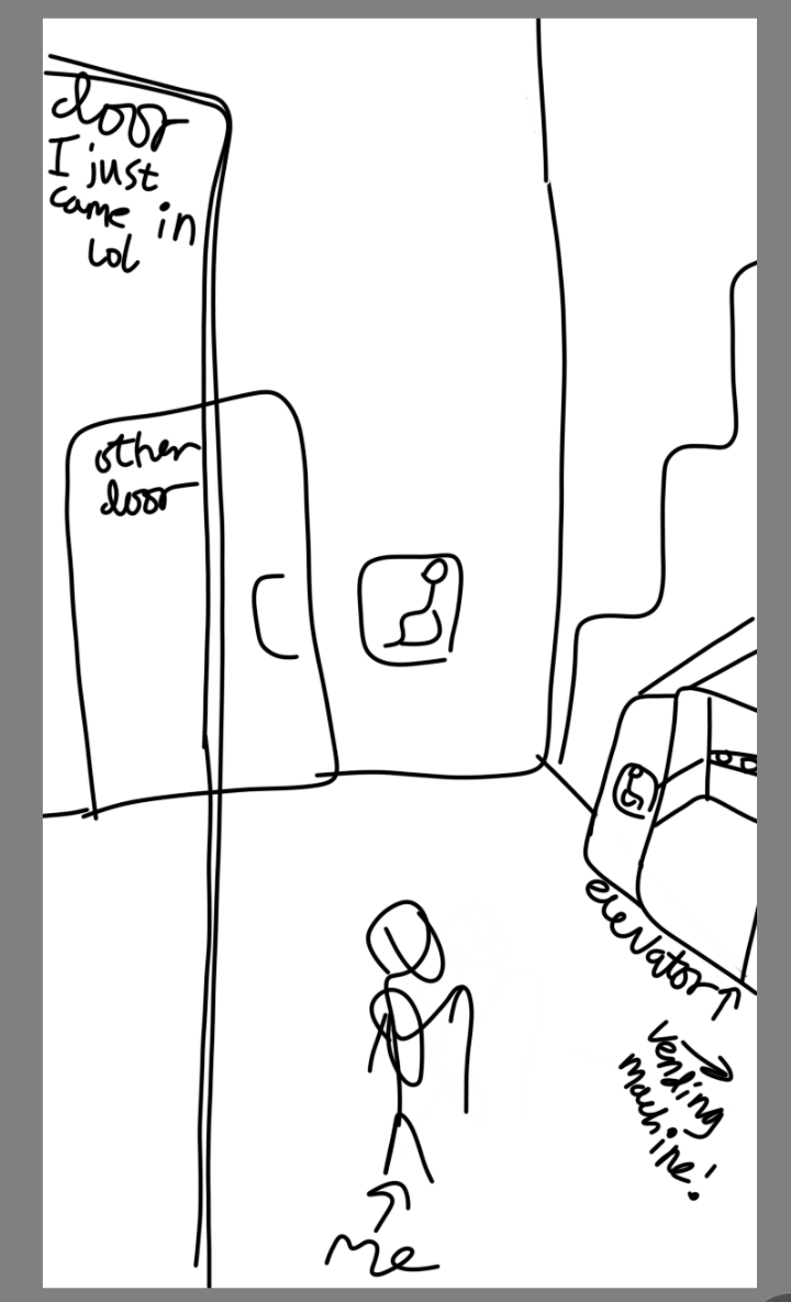 Insomnia elevator - bonk. Happened a couple days ago lol. I do feel really lucky to be going to a school with elevators, so I can actually get up to my classes without losing whatever tiny smidgens of energy I had left.