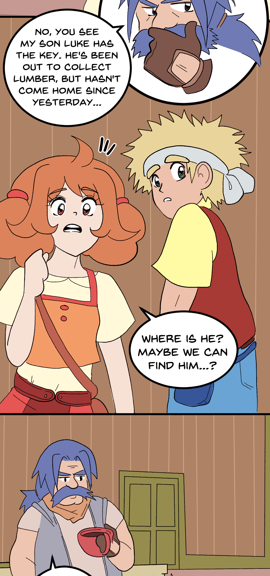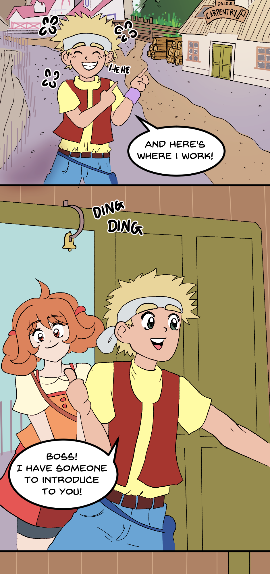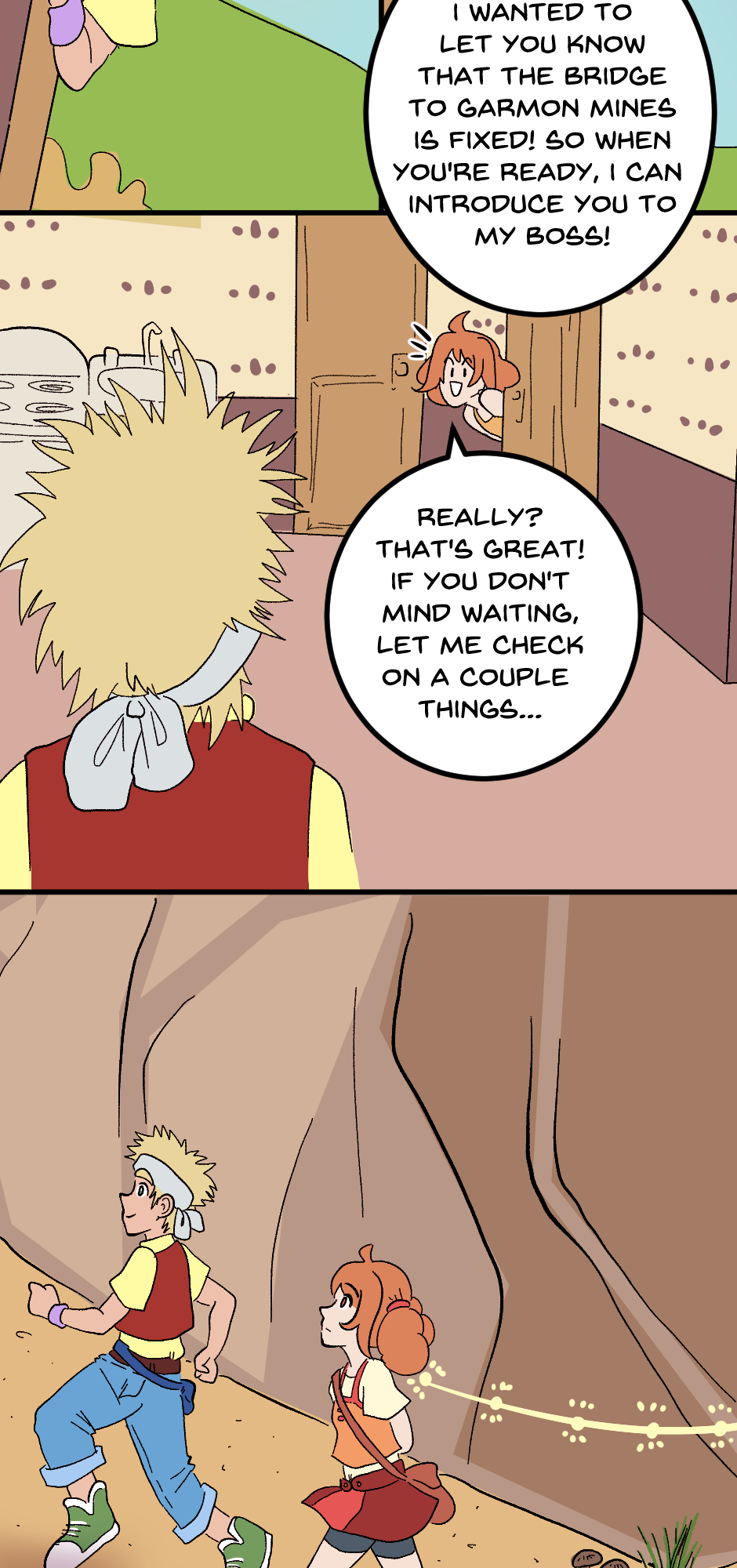 We're on the home stretch now! Bo introduces us to Dale, the town's carpenter, and sends Molly to Fugue Forest. The Garmon Mines might be the hardest for me to draw so far. Spoiler alert: Chapter 2 takes place here, so pray for me LOL.