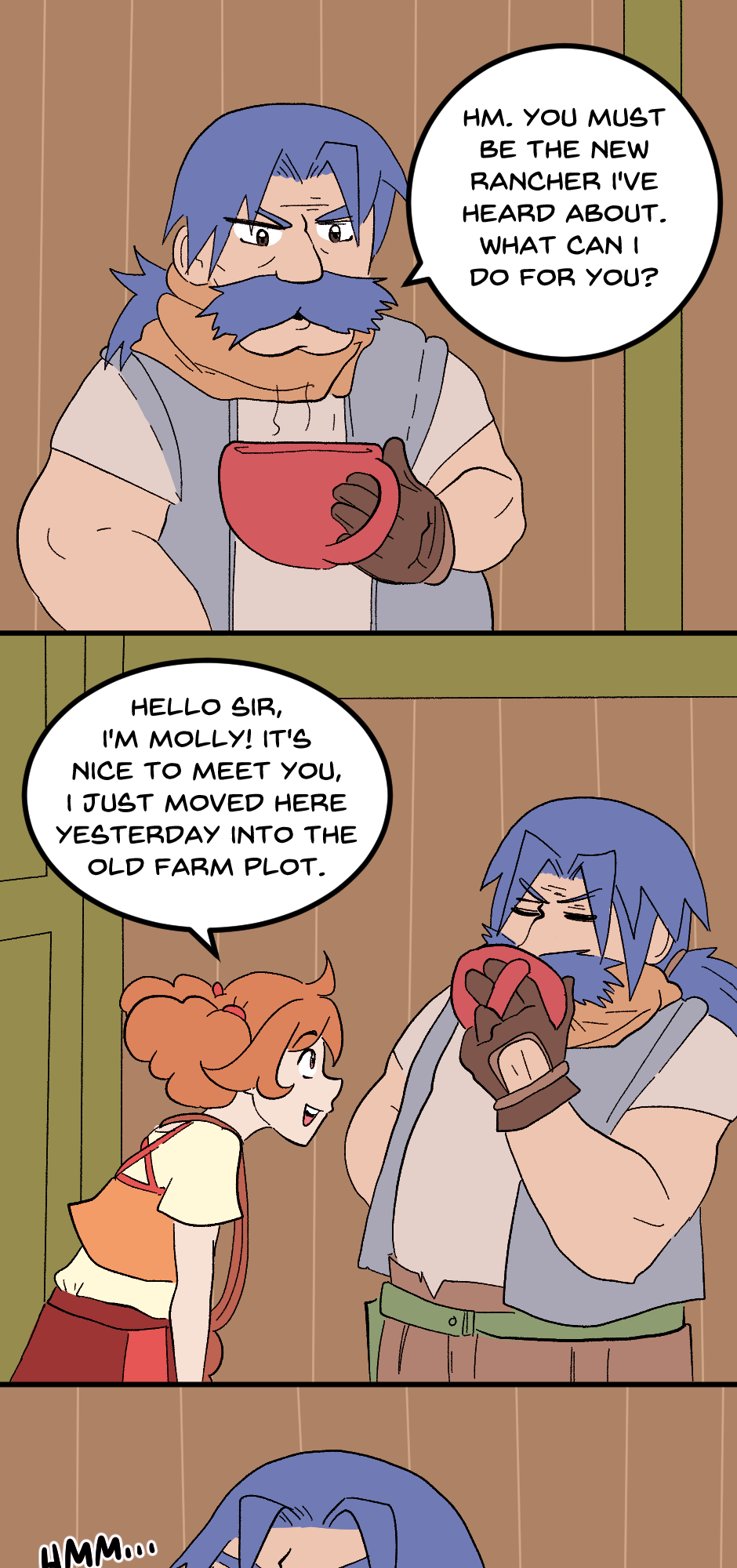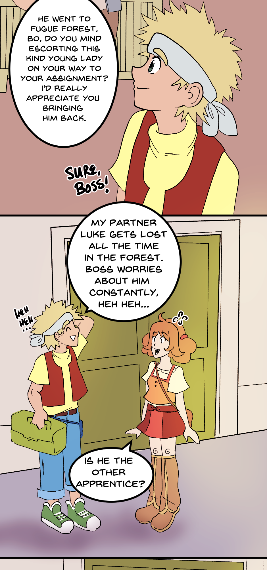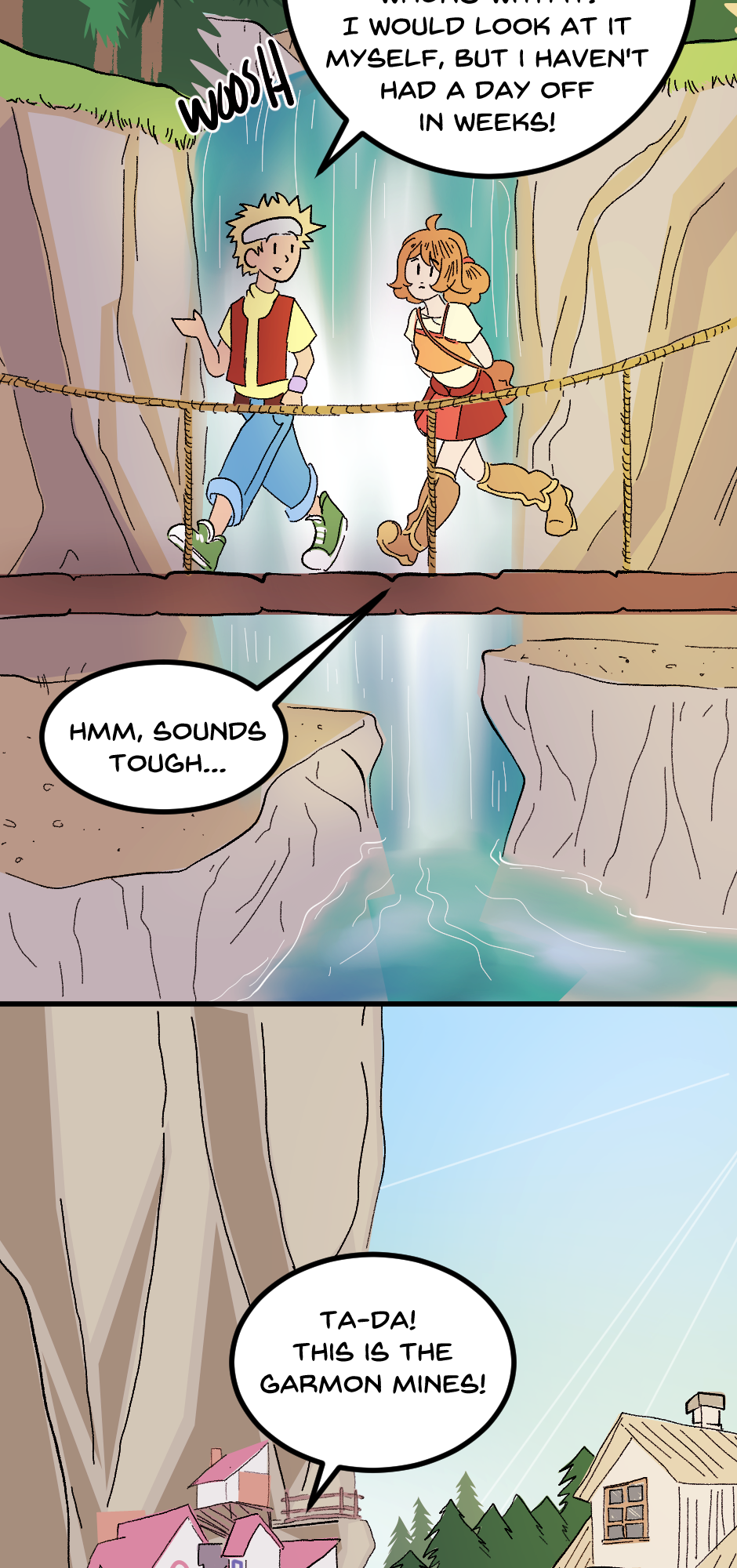 We're on the home stretch now! Bo introduces us to Dale, the town's carpenter, and sends Molly to Fugue Forest. The Garmon Mines might be the hardest for me to draw so far. Spoiler alert: Chapter 2 takes place here, so pray for me LOL.