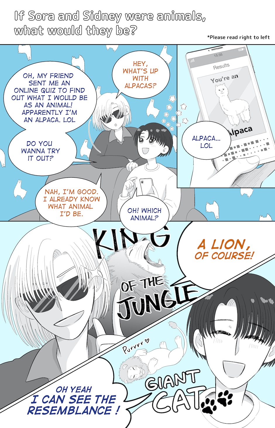 Not me actually taking an online quiz to figure out Sora's animal. lol On the other hand, Sidney's answer came up in an instant.